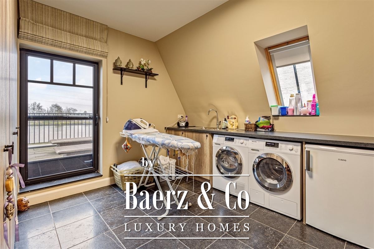 This duplex apartment Schilde stands quietly just outside the town center, situated in Zandhoven yet easily accessible from Schilde, and offers sweeping, uninterrupted vistas over the Albertkanaal. The property blends understated design with tailored comforts across its 364m² living area. On arrival, a landscaped front garden leads you to multiple parking options, including a garage with automated entry, carport, and a extended basement of 182m². The private entrance hall, accessible via lift or stairs, introduces a thoughtfully arranged interior highlighted by oak and natural stone finishes.