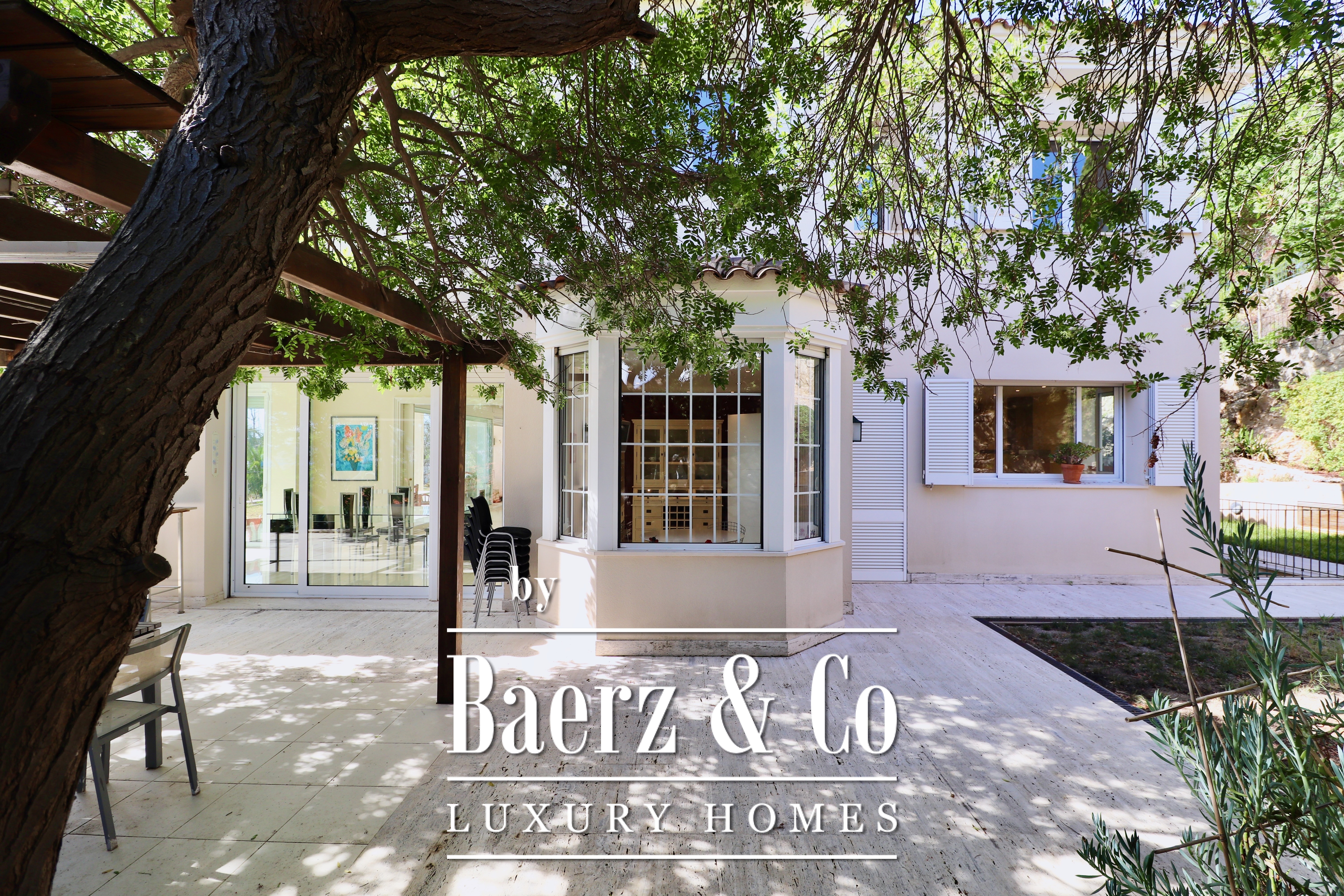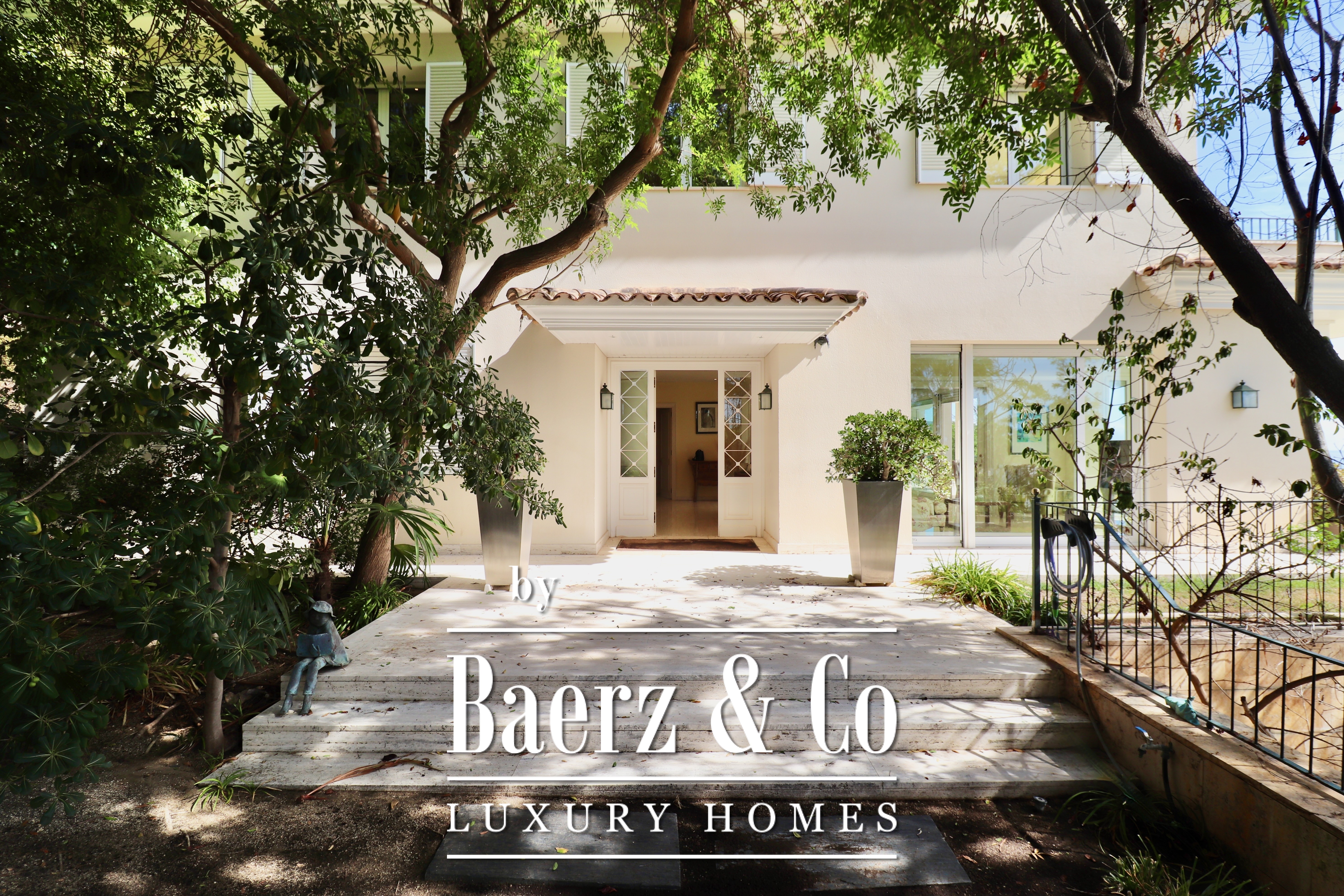 Designed for discretion and comfort, the villa unfolds across three levels, connected by a private lift. The main level opens with a refined entrance hall leading to a fluid living space, including living and dining rooms, a media zone, and a fully equipped kitchen with an adjoining service area and dedicated office. Five bedrooms and eight bathrooms allow for both family intimacy and entertaining on a generous scale.