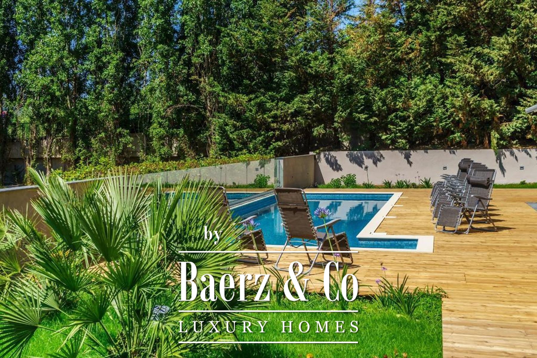Amenities include a reception, a dedicated restaurant and kitchen, Finnish sauna, jacuzzi, gym, and thoughtful storage and laundry facilities. There are 3 guest and staff toilets, 6 outdoor parking spaces, and 4 garage spaces. The outdoor pool and landscaped garden cover a combined 494 m², creating a tranquil haven for relaxation.