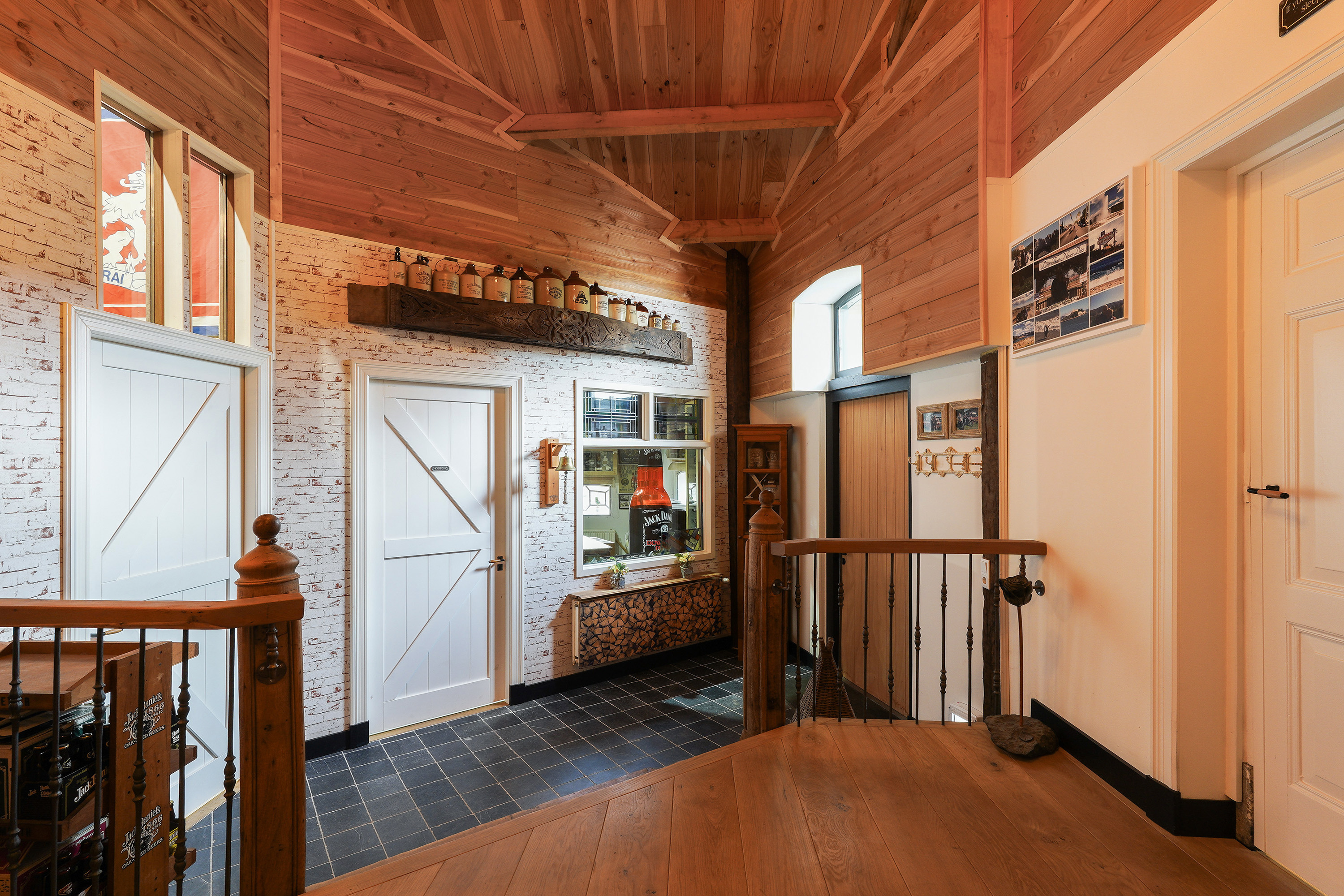 De sfeervolle keuken vormt één geheel met de gezellige woonkamer en is voorzien van een kookeiland met aangrenzend een houten eettafel, veel bergruimte en uiteraard alle luxe inbouwapparatuur. En dan... bereikbaar via de bijkeuken, de garage of de veranda aan de achterzijde… de bar. Compleet uitgevoerd met koelingen, een eigen toiletruimte met toilet en urinoir en een indrukwekkende vide tot in de nok. Zelfs vanaf de zolderverdieping kijk je via die vide weer de bar in. Dit is een ruimte die je moet ervaren.