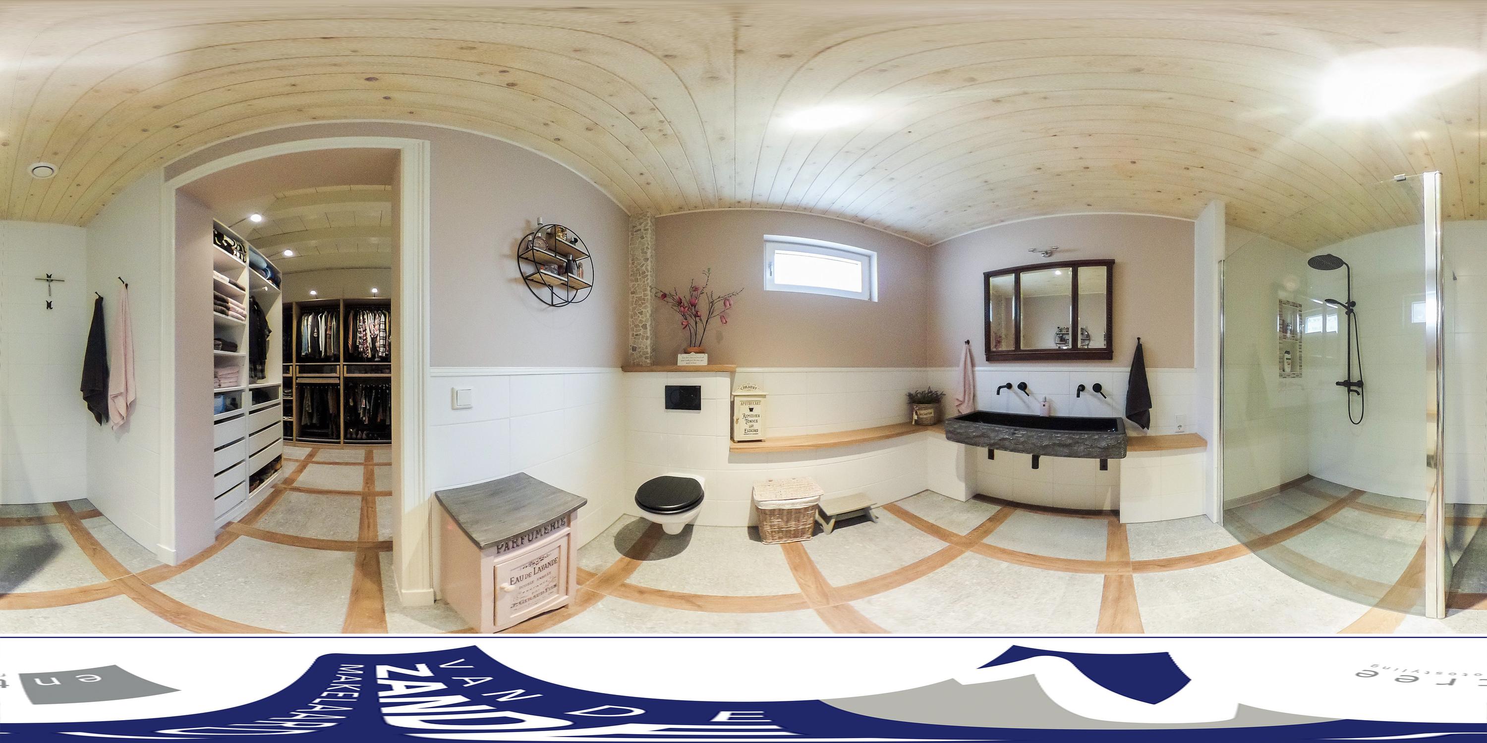 Despite its impressive dimensions, the home feels logical and comfortable. It is fully life-cycle proof. On the ground floor you will find, in addition to the spacious living room, a very generous bedroom, a large walk-in closet and a spacious bathroom. There is also a complete laundry room with ample storage and a sink.