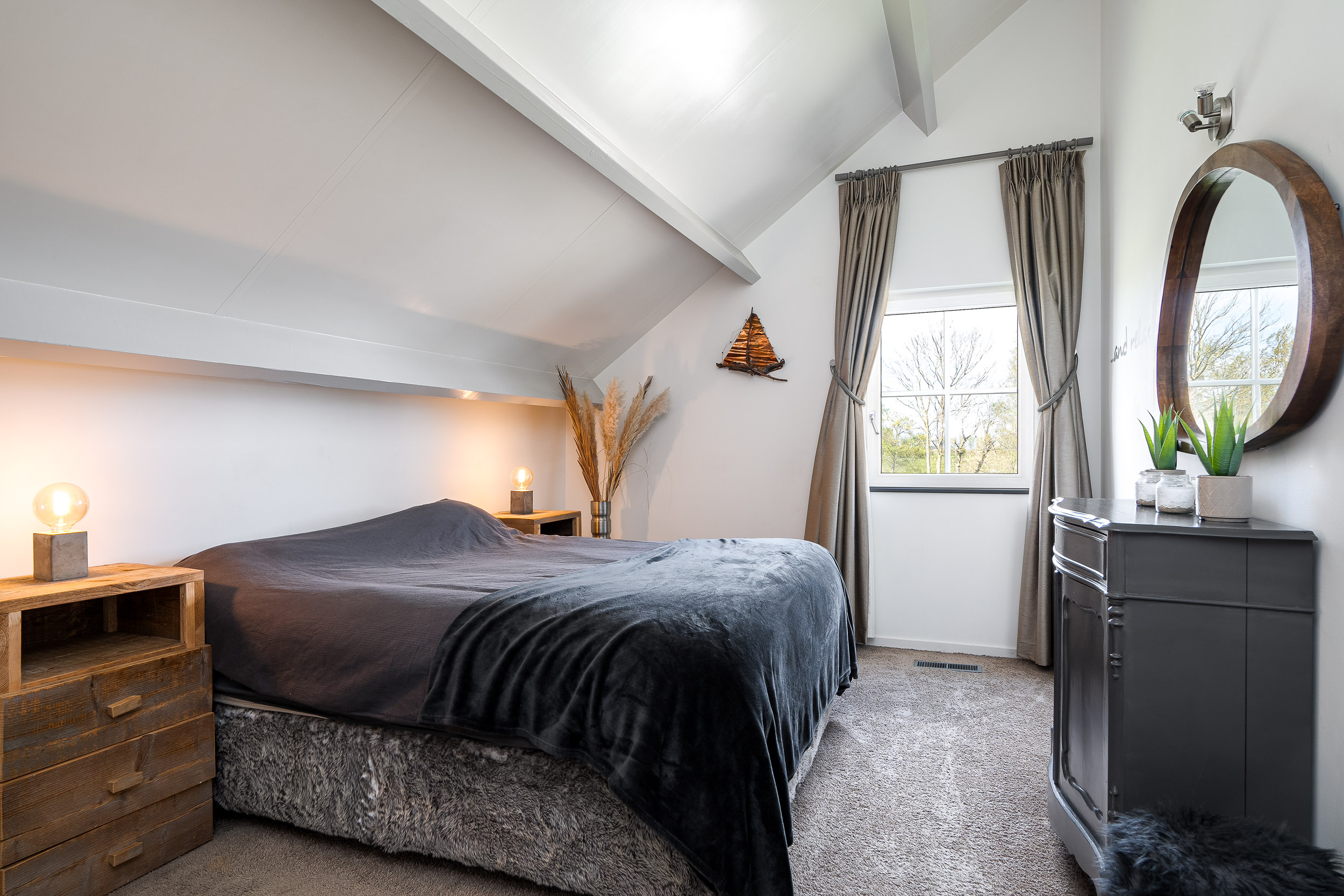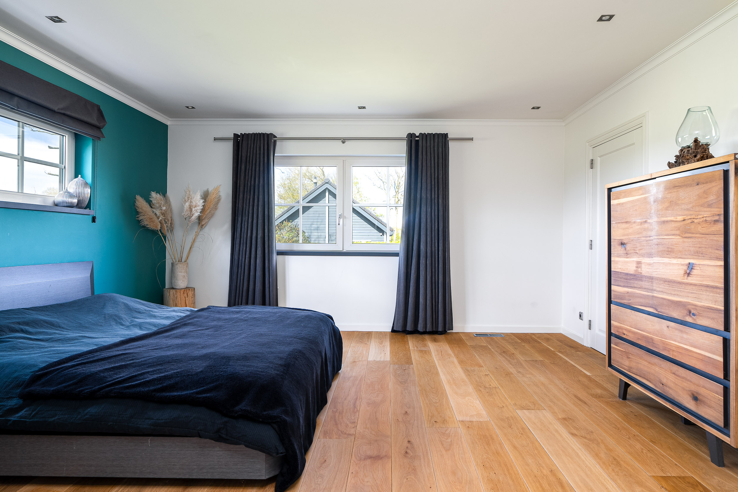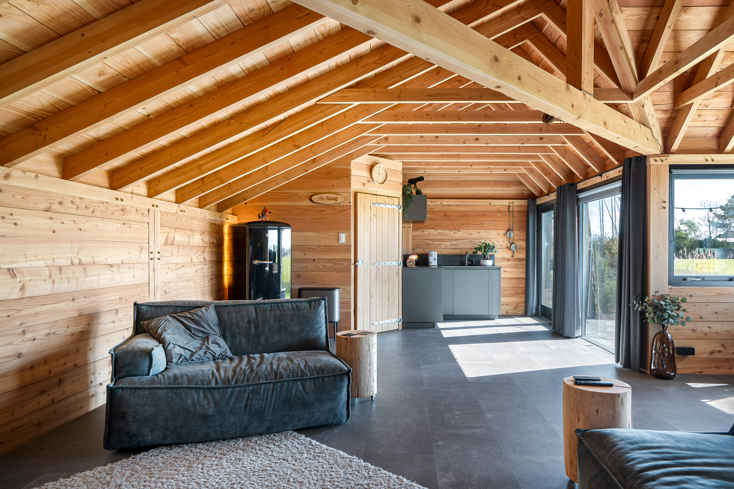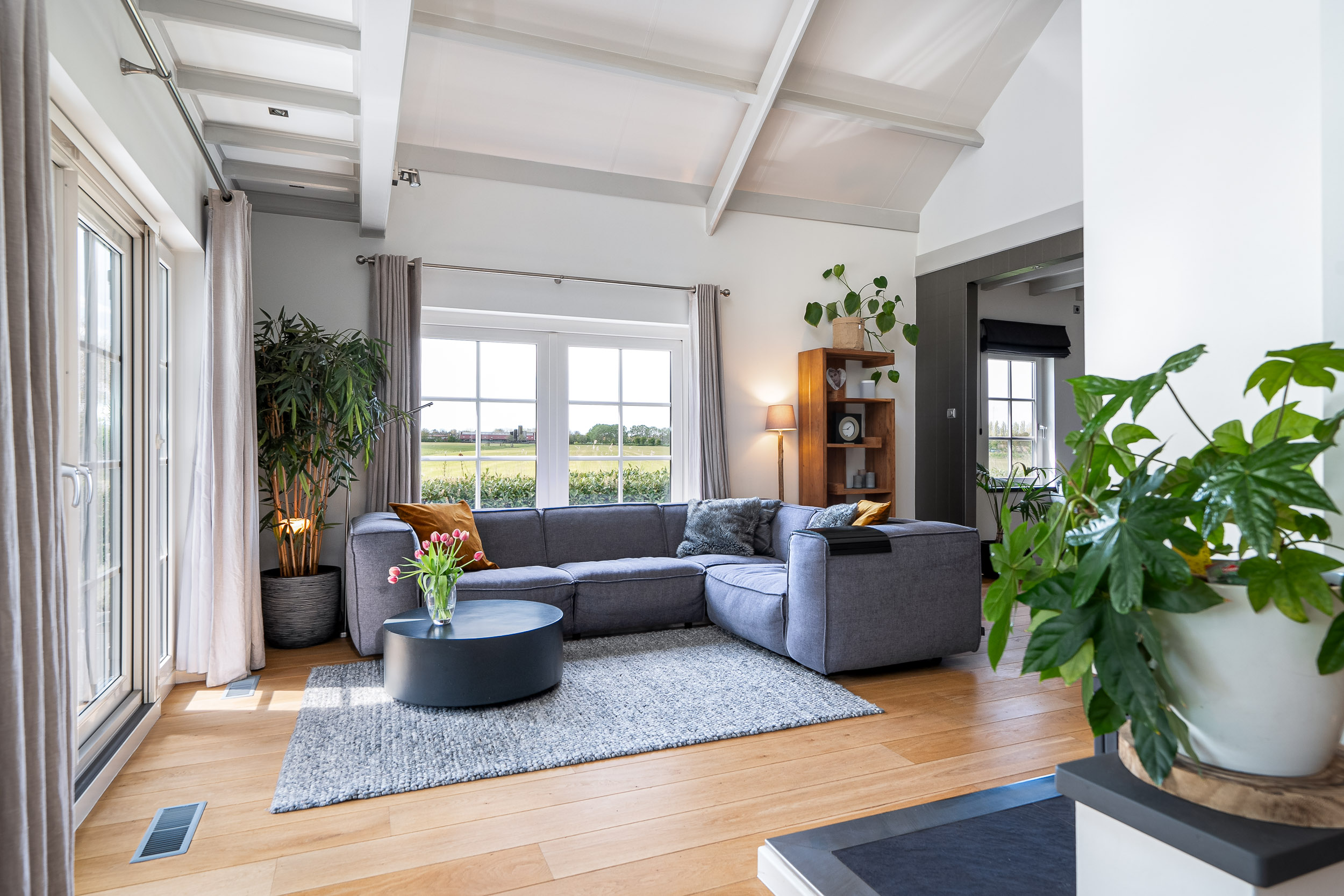 A recently built fully insulated guesthouse, studio, or home office is located in the garden. It includes a kitchenette and bathroom, making it suitable for multiple uses. The large southwest-facing windows offer inspiring panoramic views of nature toward the IJsselmeer, with its ever-changing Frisian skies.