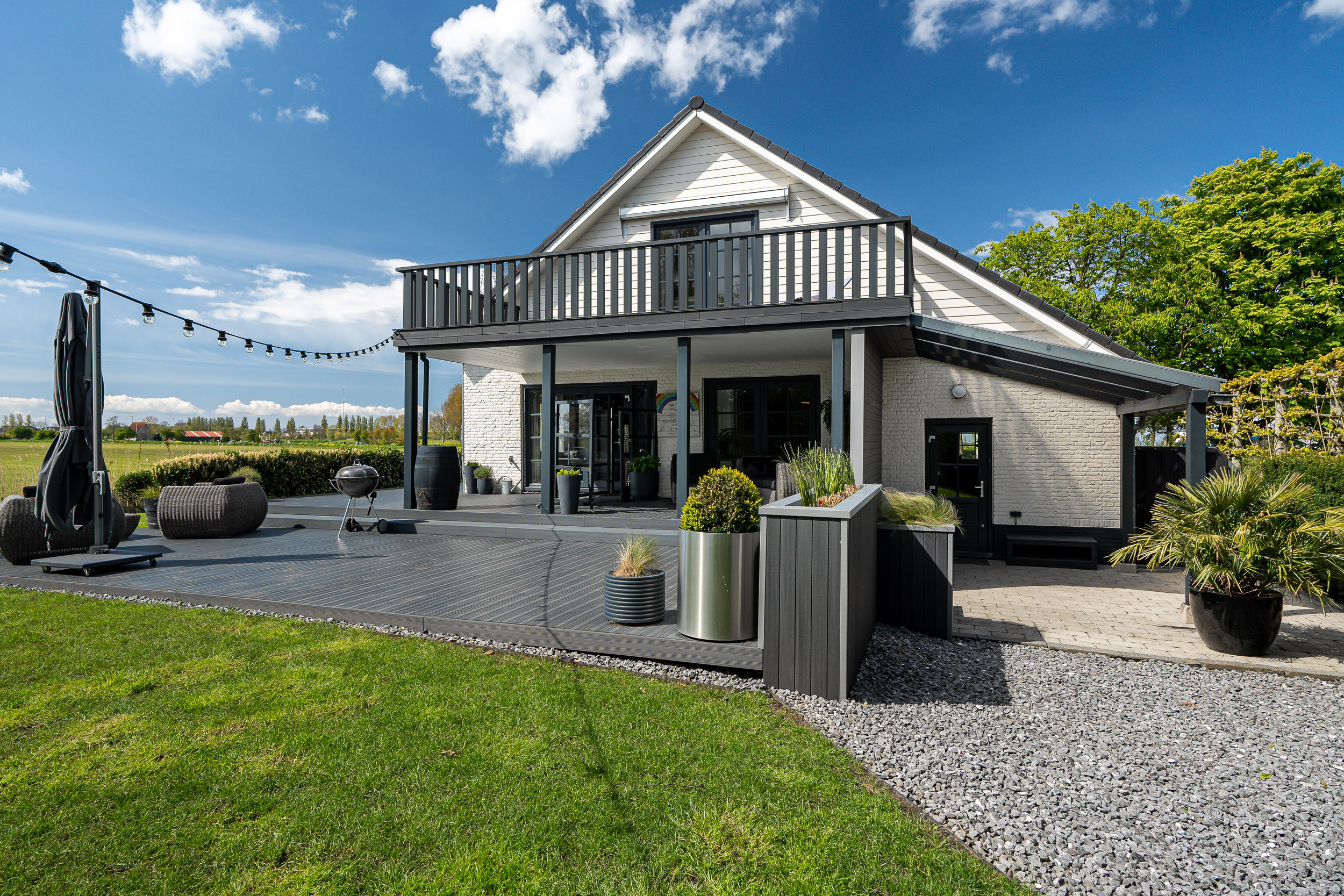 Both the main house and the guesthouse have sun-facing terraces, allowing residents to enjoy stunning views of the Frisian landscape and witness spectacular sunsets well into the evening.