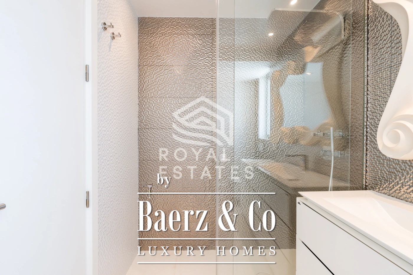 This exceptional duplex penthouse is located in the exclusive Es Pouet residential complex, one of the most prestigious and secure communities on Ibiza. Set in the beautiful bay of Talamanca, just minutes from Marina Botafoch and Ibiza Town, this property represents the ultimate expression of modern island living. With breathtaking panoramic views over the Mediterranean Sea and the historic silhouette of Dalt Vila, it offers a unique combination of luxury, privacy, and convenience. Occupying a total built area of approximately 428 m2, with 347 m2 of usable interior space, this residence has been thoughtfully designed to maximize natural light and create a seamless flow between indoor and outdoor living. The main floor features a spacious open-plan living and dining area with floor-to-ceiling windows that open onto a large terrace overlooking the bay. The contemporary kitchen is fully equipped with high-end appliances and an elegant kitchen-office layout that blends functionality with style. The property includes four generous bedrooms, three with its own en-suite bathroom, ensuring complete privacy and comfort for residents and guests alike. The master suite is particularly impressive, with direct terrace access and stunning sea views. Additionally, there is a guest toilet and a separate laundry room for added convenience. The interiors are defined by clean lines, natural tones, and premium materials that reflect understated elegance and quality craftsmanship. An architectural highlight of this penthouse is its spectacular