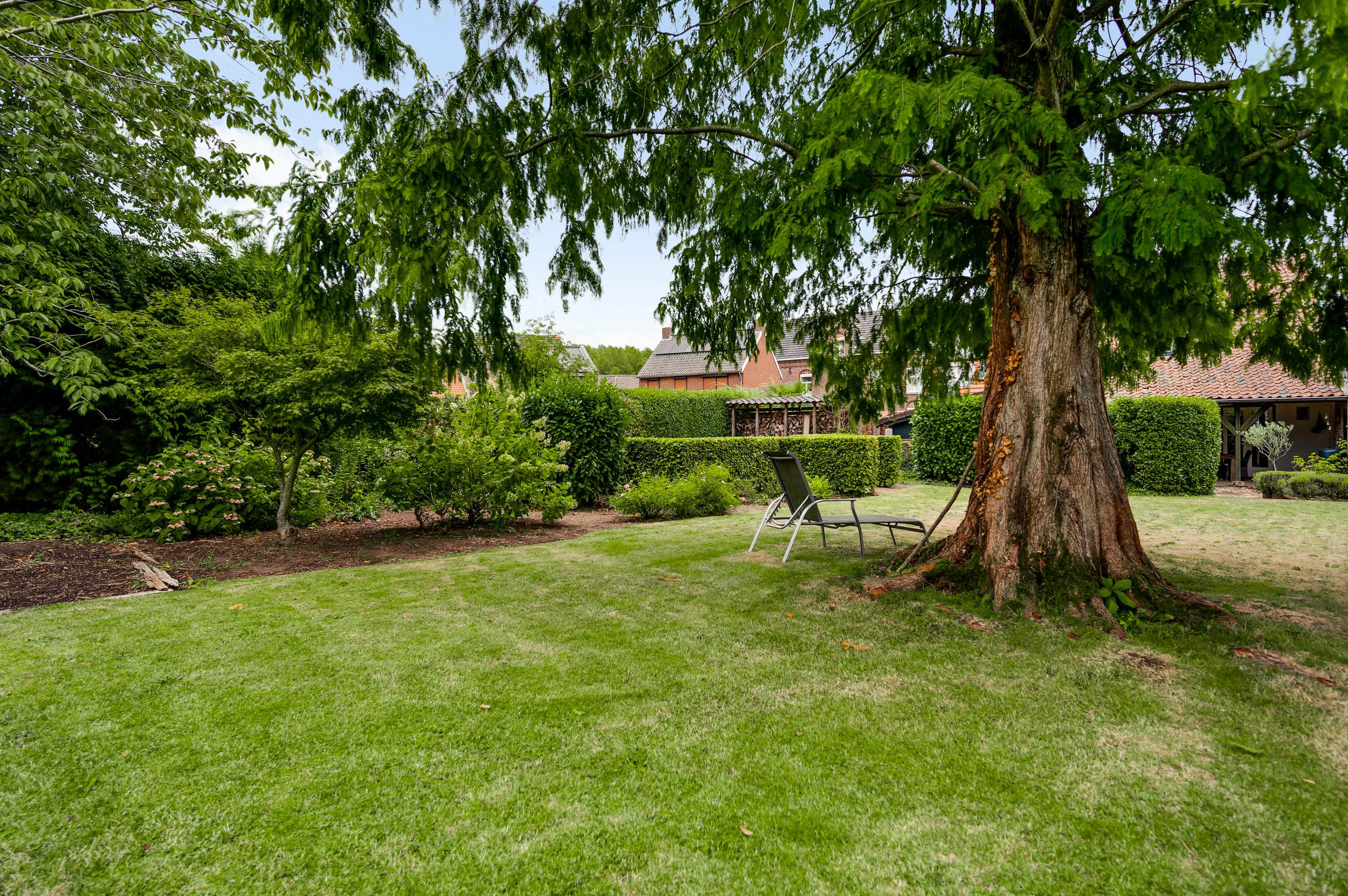 The garden seamlessly blends in with the house and offers plenty of privacy, despite its central location in the historic town center. The back garden is accessible via a private rear entrance and features several patios – one of which is covered – a lawn, and attractive flower beds.