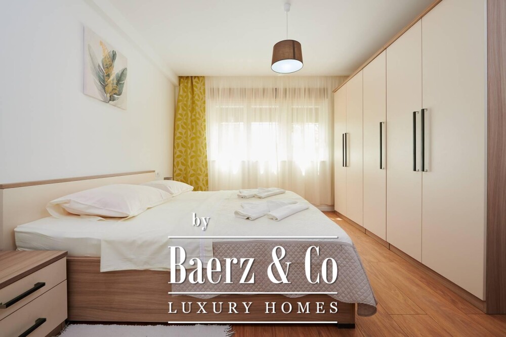 The ground floor features two apartments, each with separate entrances. The first, renovated in 2021, covers 80 m² and includes one bedroom, a kitchen, dining area, living room, and two bathrooms. Its modern finish is complemented by underfloor heating and air conditioning, opening to a covered terrace that connects seamlessly to the outdoors. The second ground-floor apartment, at 55 m², offers two bedrooms and is well-suited for both short or long-term stays.