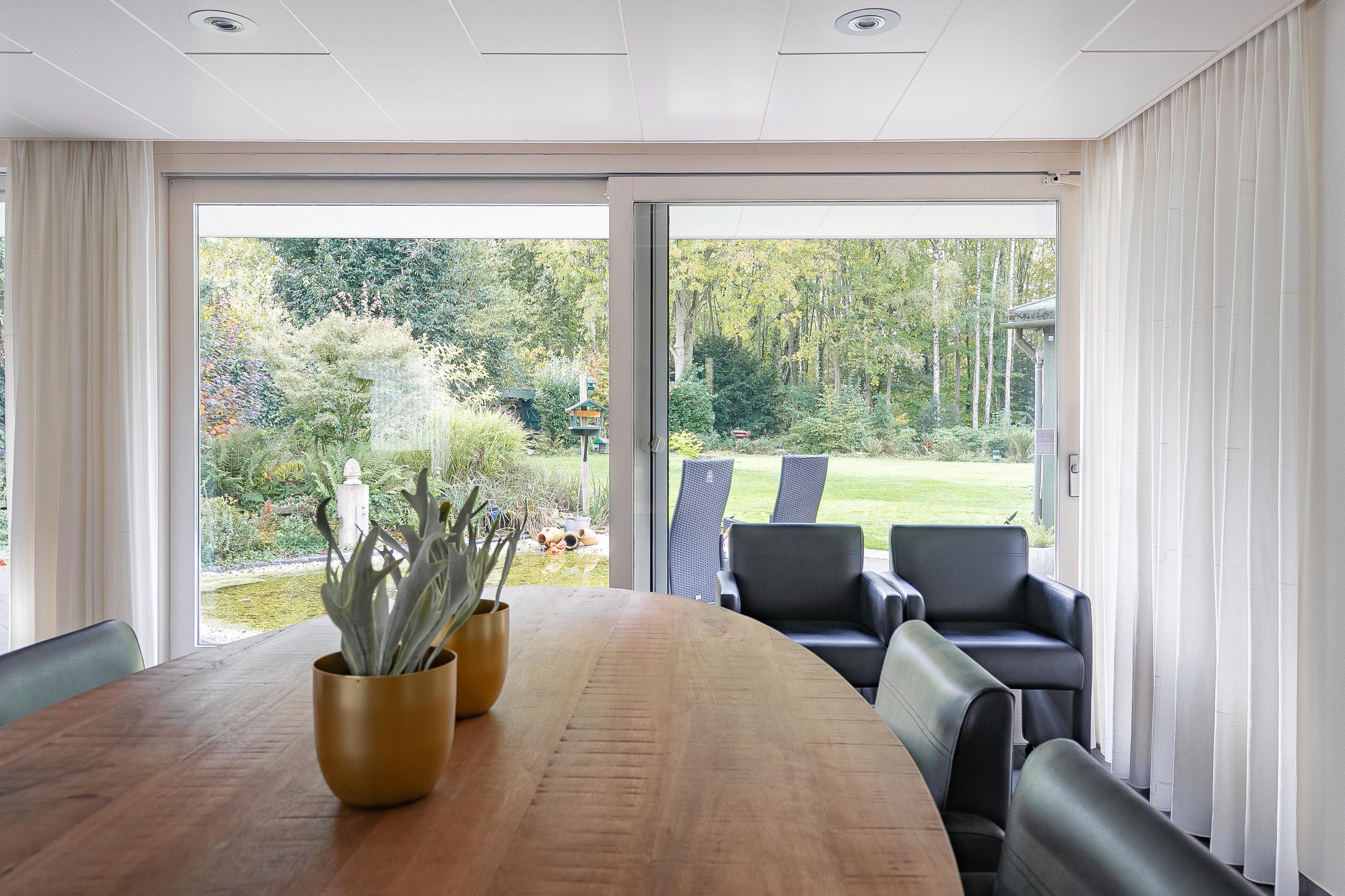 - Het terras aan de zijkant van de woning is voorzien van een elektrisch zonnescherm;