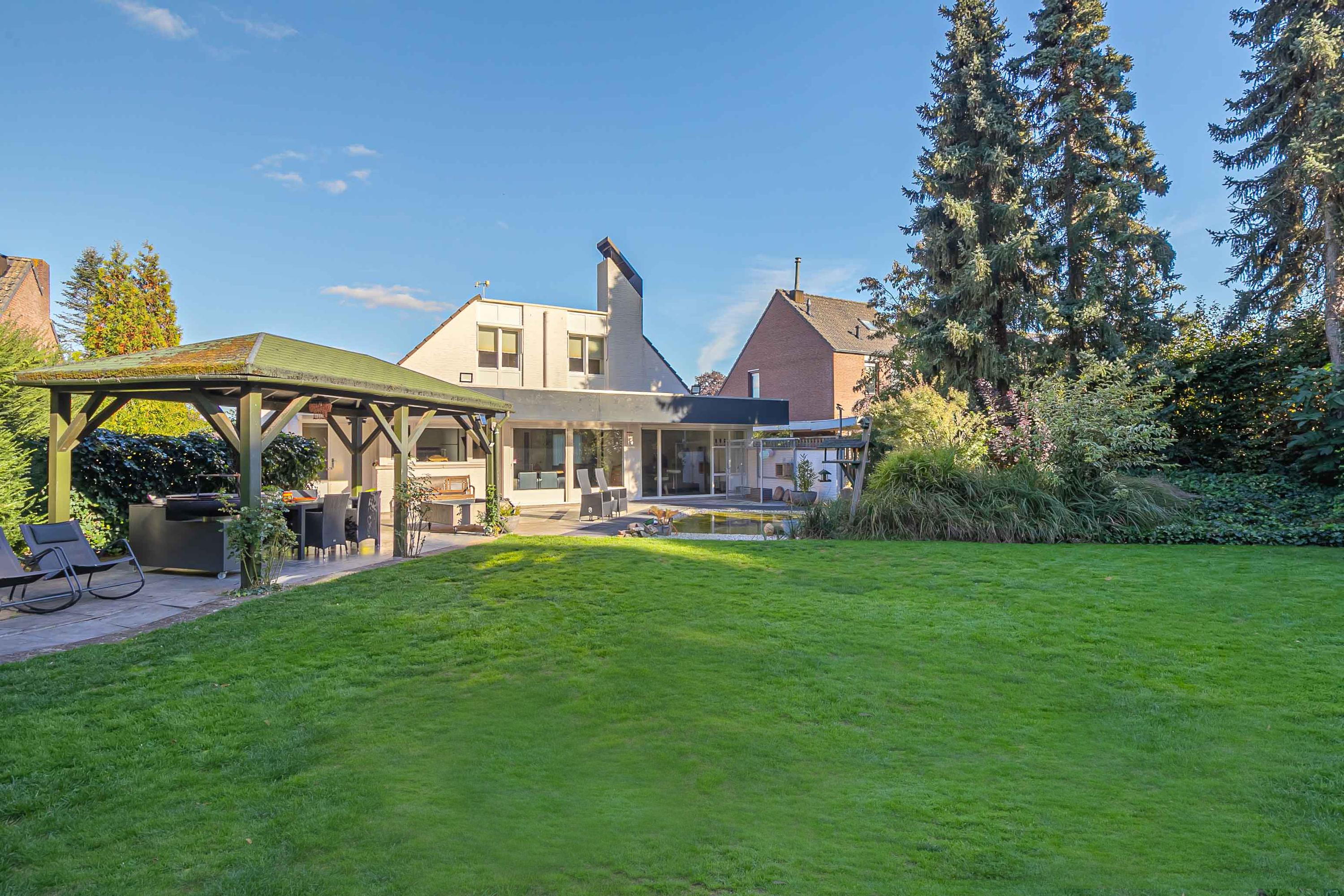 Riante, parkachtige tuin waar men in alle rust kan genieten van optimale privacy. Er zijn diverse zitgedeeltes gecreëerd, waarvan één met overkapping (ca. 14m²). Ook is er een vijver aangelegd in de tuin. Achter de tuin ligt een prachtig bos van ca. 9858m².