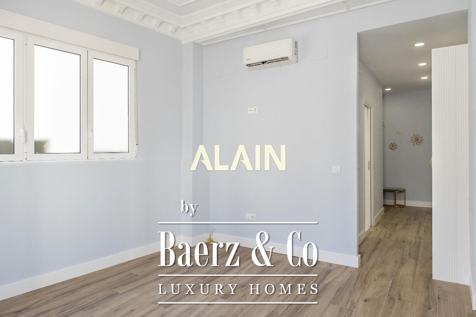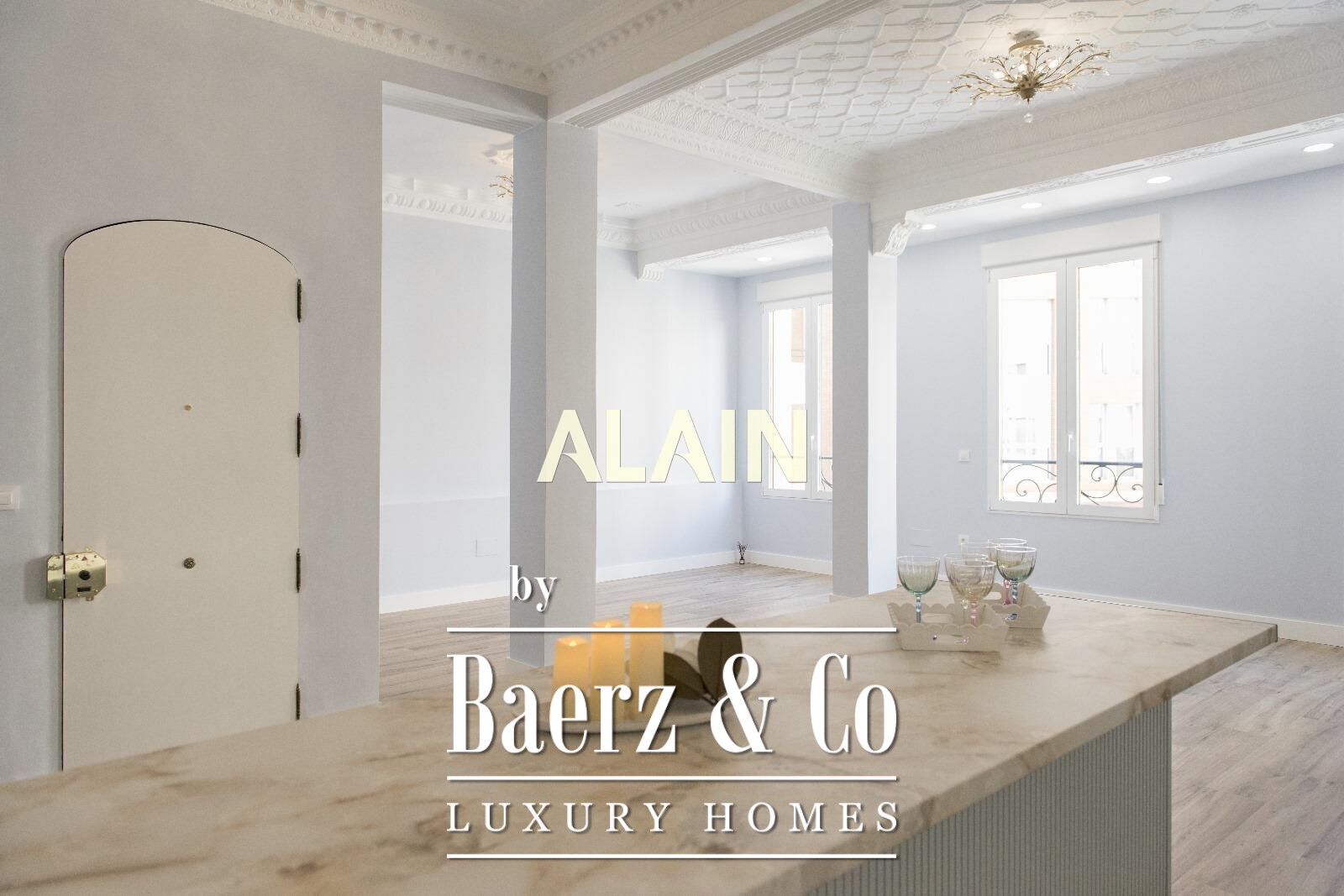 Apartment Valencia is offered within the lively Ruzafa quarter, occupying 140 m² on the second floor of a distinguished building. The stately entrance and generous ceiling heights, complemented by intricate original moldings, frame spaces defined by both heritage and contemporary clarity.