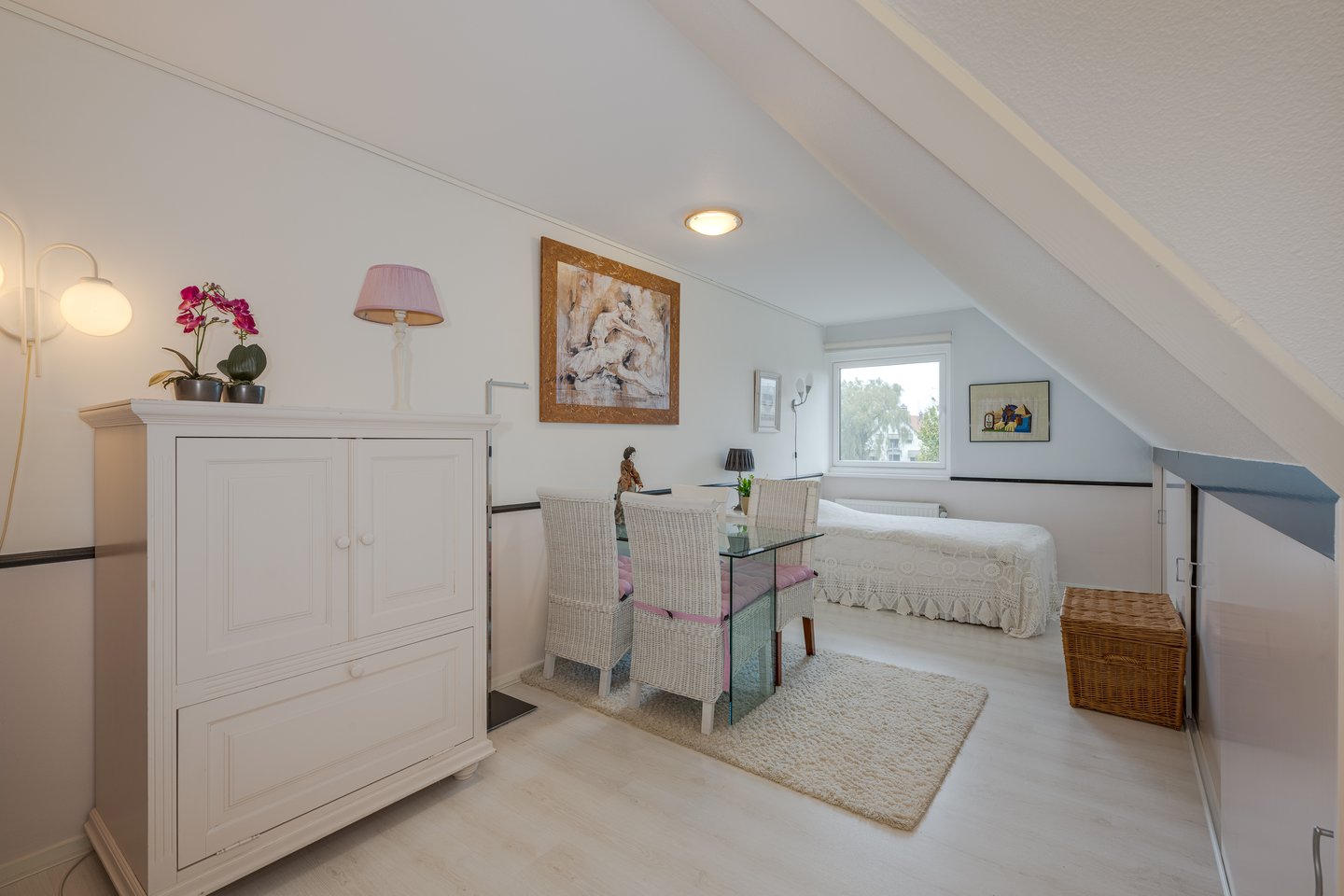 Here you will find three spacious bedrooms, two with dormer windows. The luxurious bathroom (2022) is a real eye-catcher, equipped with underfloor heating, walk-in shower and double sink with cabinet. The floor also features a practical walk-in closet.