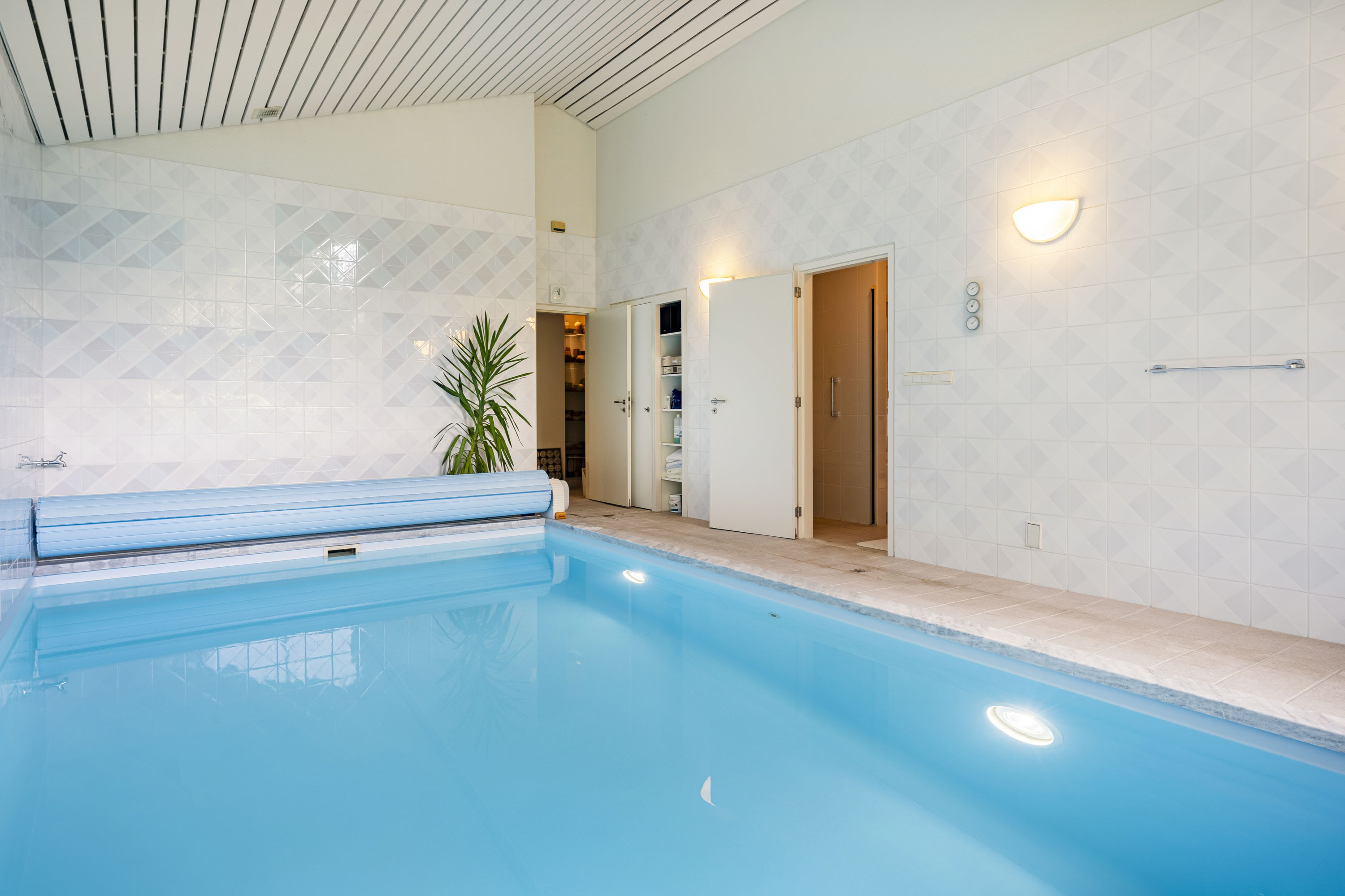 From the entrance, a spacious hallway provides access to all rooms on this floor. There are four bedrooms, two bathrooms, and an indoor swimming pool. The pool features sliding doors that open directly to the garden, allowing you to fully enjoy the natural surroundings.