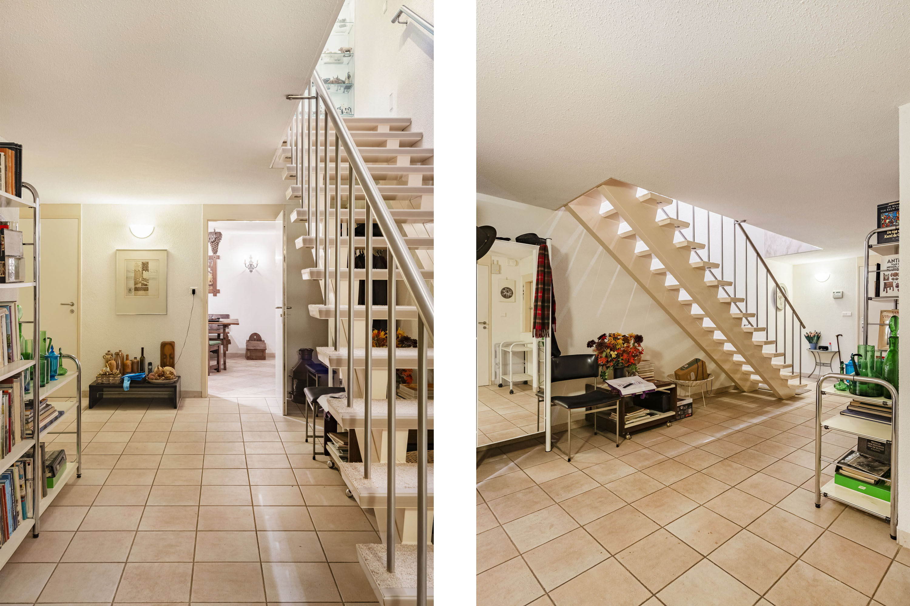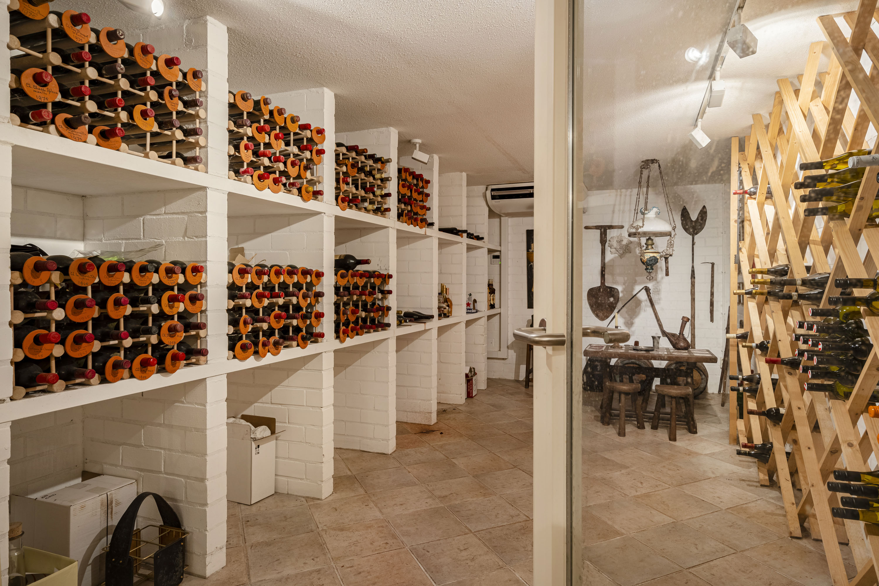 This spacious basement includes a large garage with space for two cars, an electric door, and a charging station for an electric vehicle. There is also a beautiful wine cellar, several storage rooms, a technical room housing the heat pumps for both the house and the indoor pool with jet stream. Residents can access the house directly from the basement.