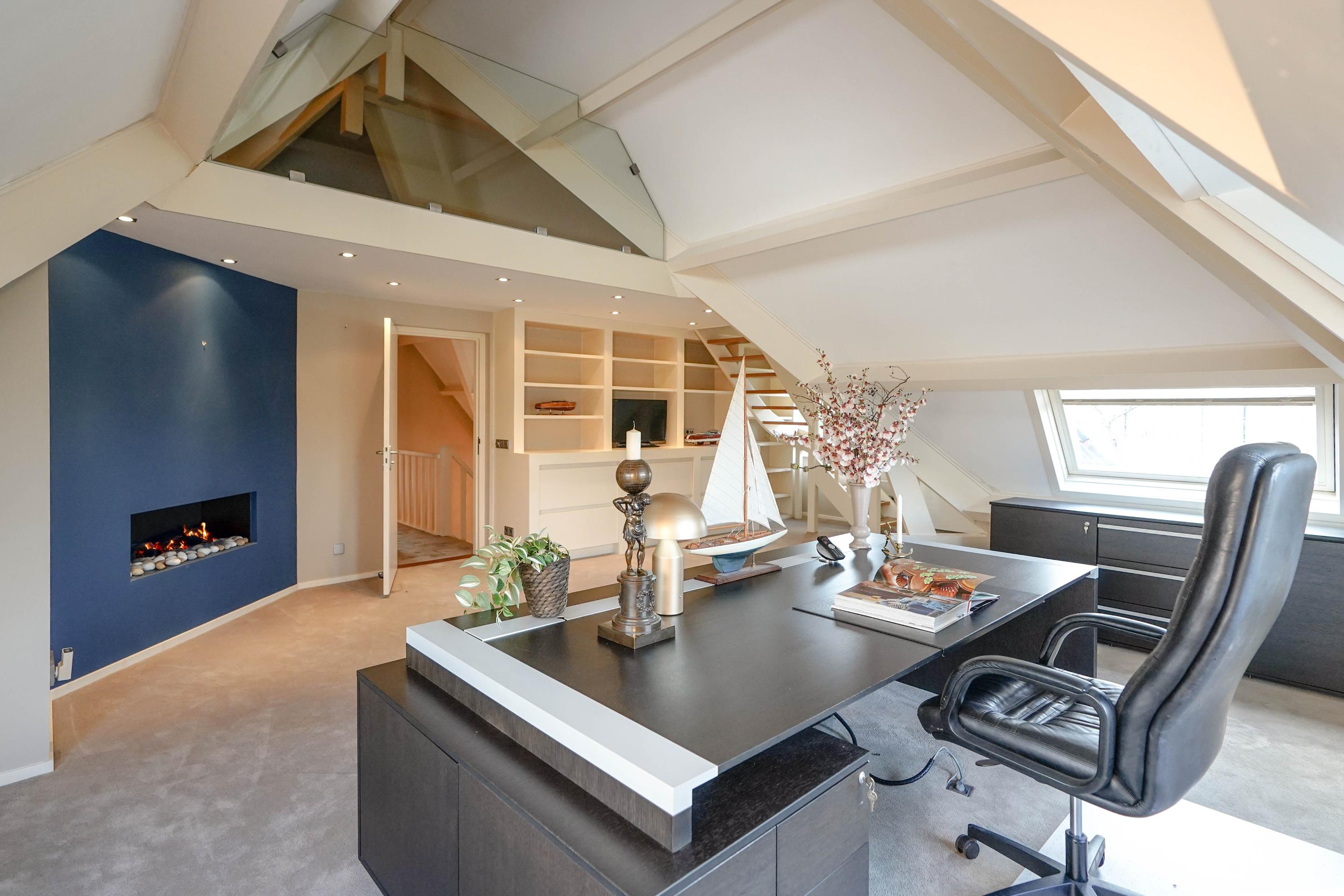 Upstairs, the master suite stands apart with a private bathroom, underfloor heated, and access to a roof terrace. Children’s bedrooms offer sleeping lofts, and a dedicated study with water views and custom cabinetry completes the first floor. Throughout, insulation and double glazing create quiet comfort. Communal gardens and the inner harbour are professionally maintained, while mooring for a boat is included.