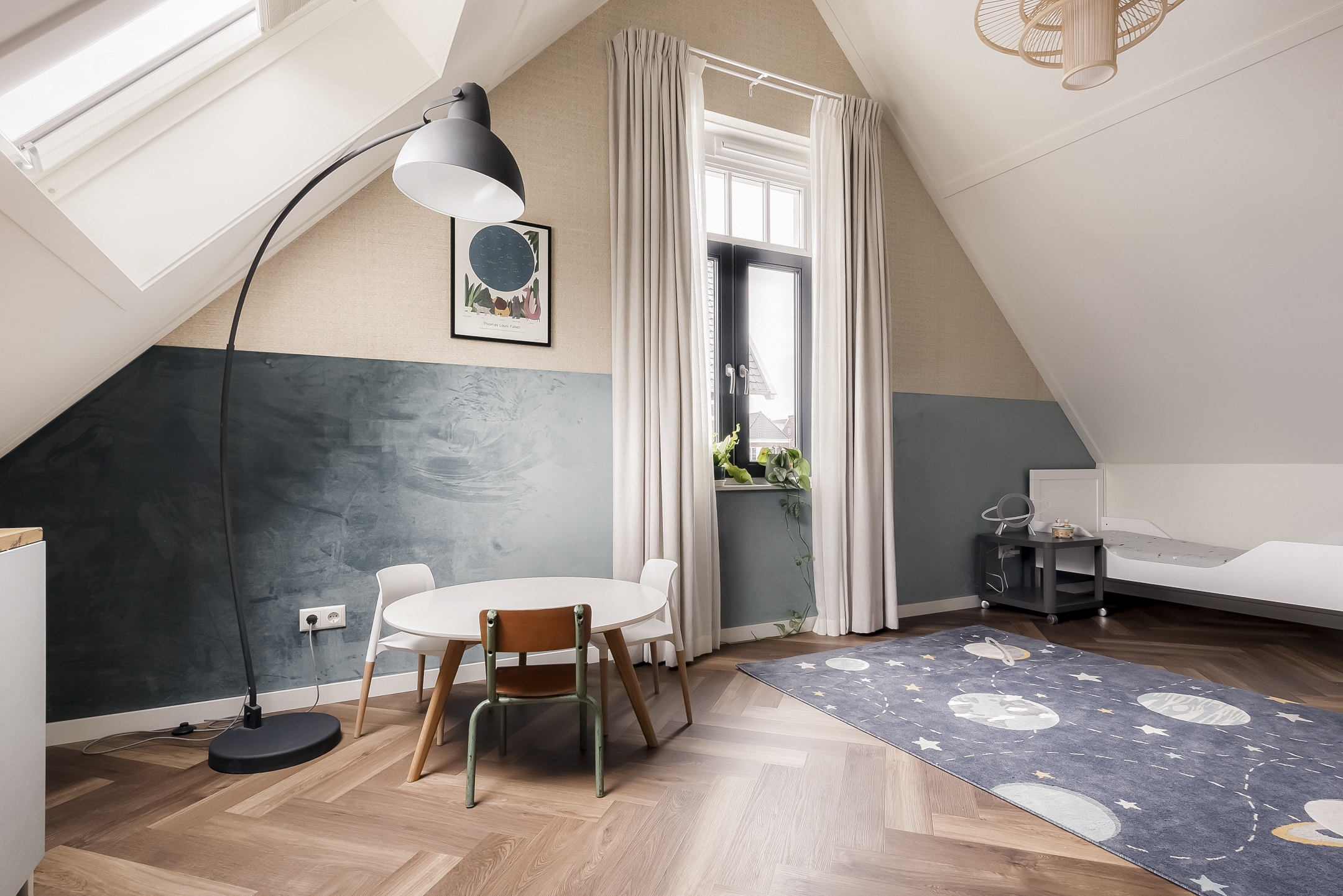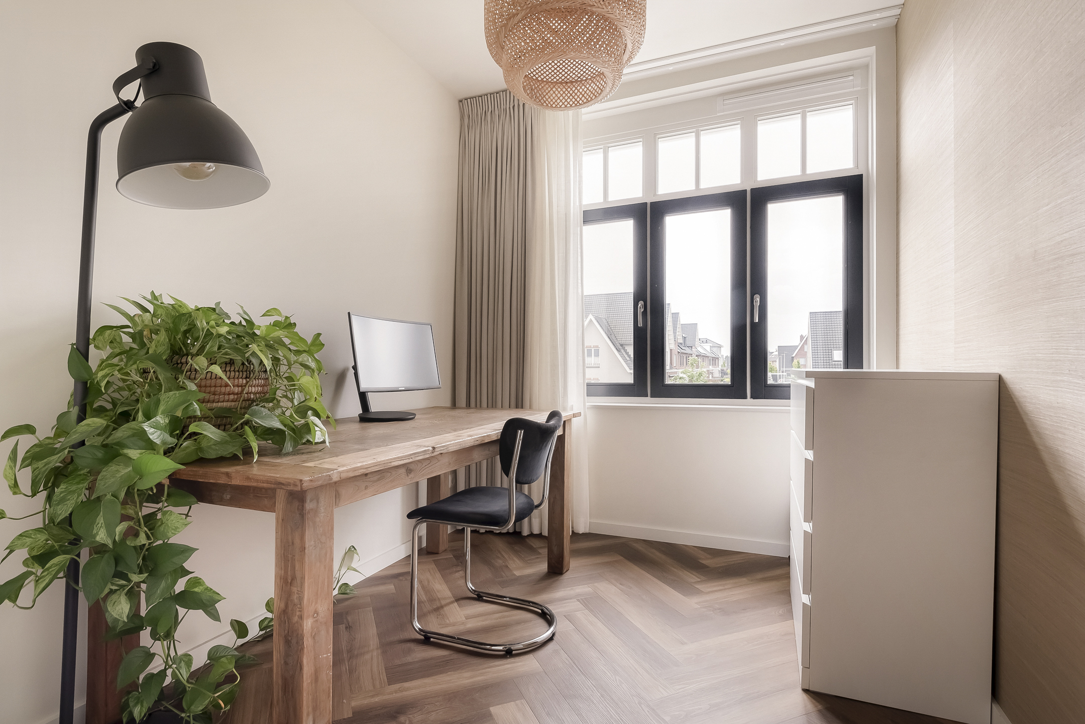 Upon arrival, the spacious front garden immediately stands out, featuring a private driveway with parking for two cars. The heated and insulated storage room, accessible through double doors, offers numerous possibilities such as storage or the creation of a home office or hobby space. From this storage room—where the heat pump and hot water boiler are also located—there is direct access to both the house and the back garden. This space can potentially be extended.