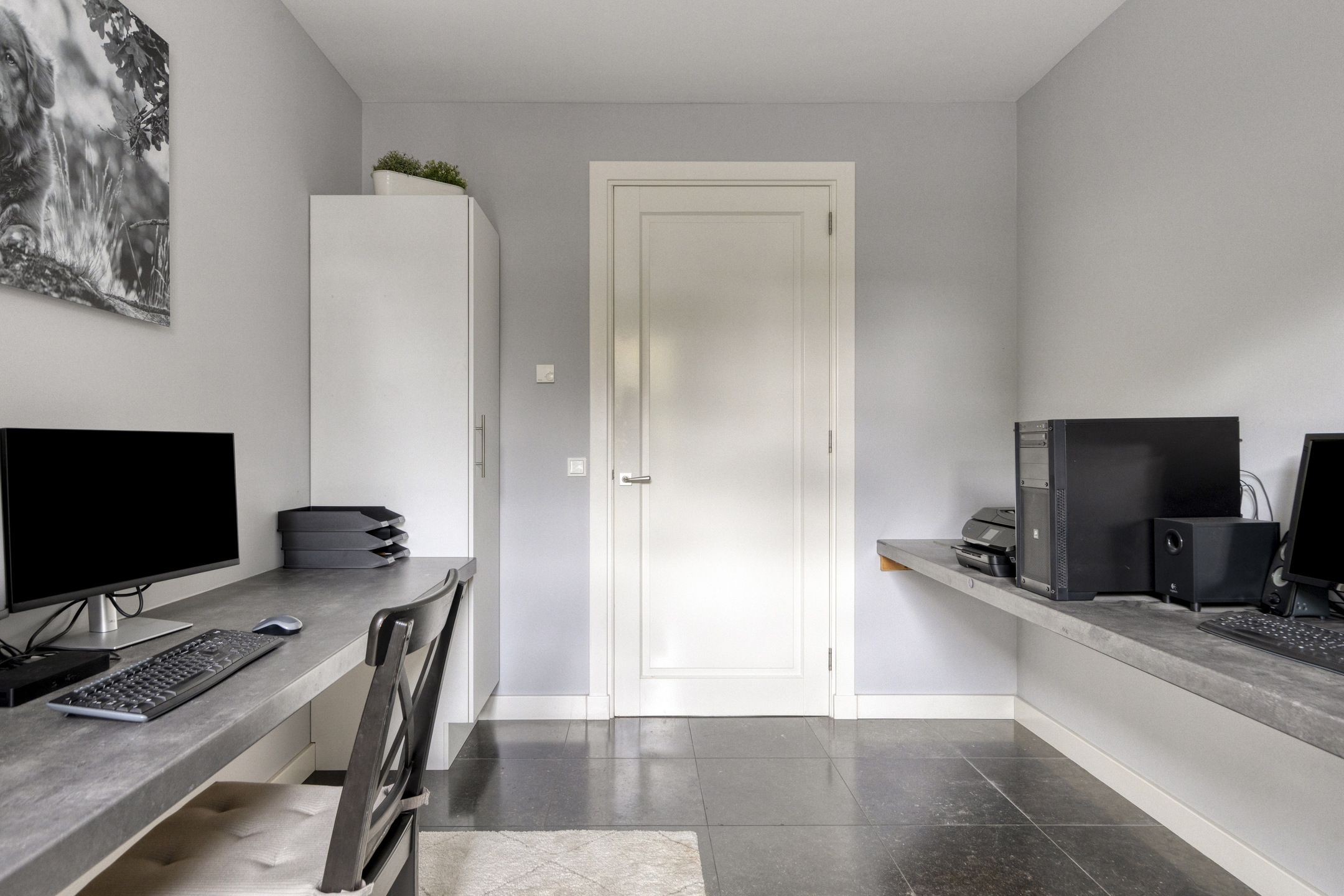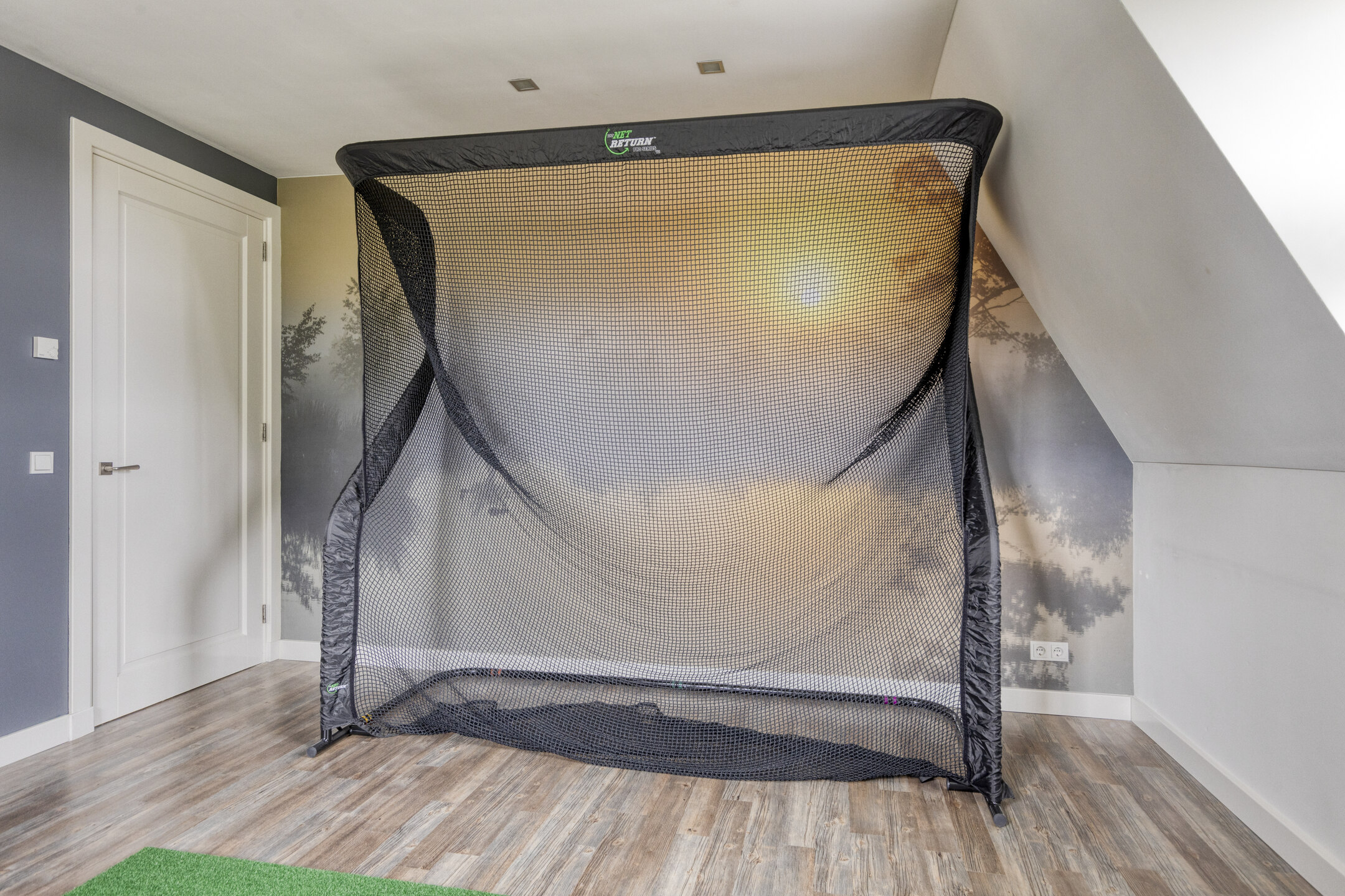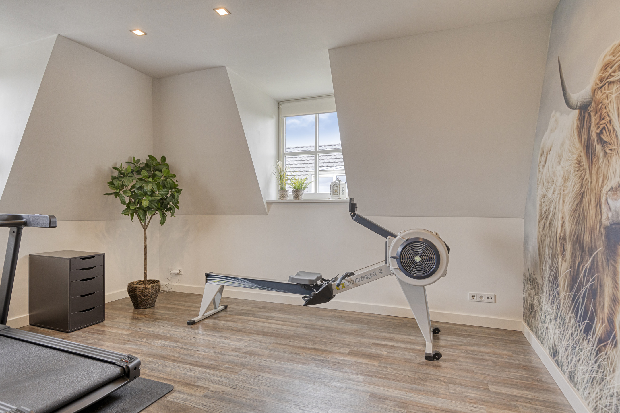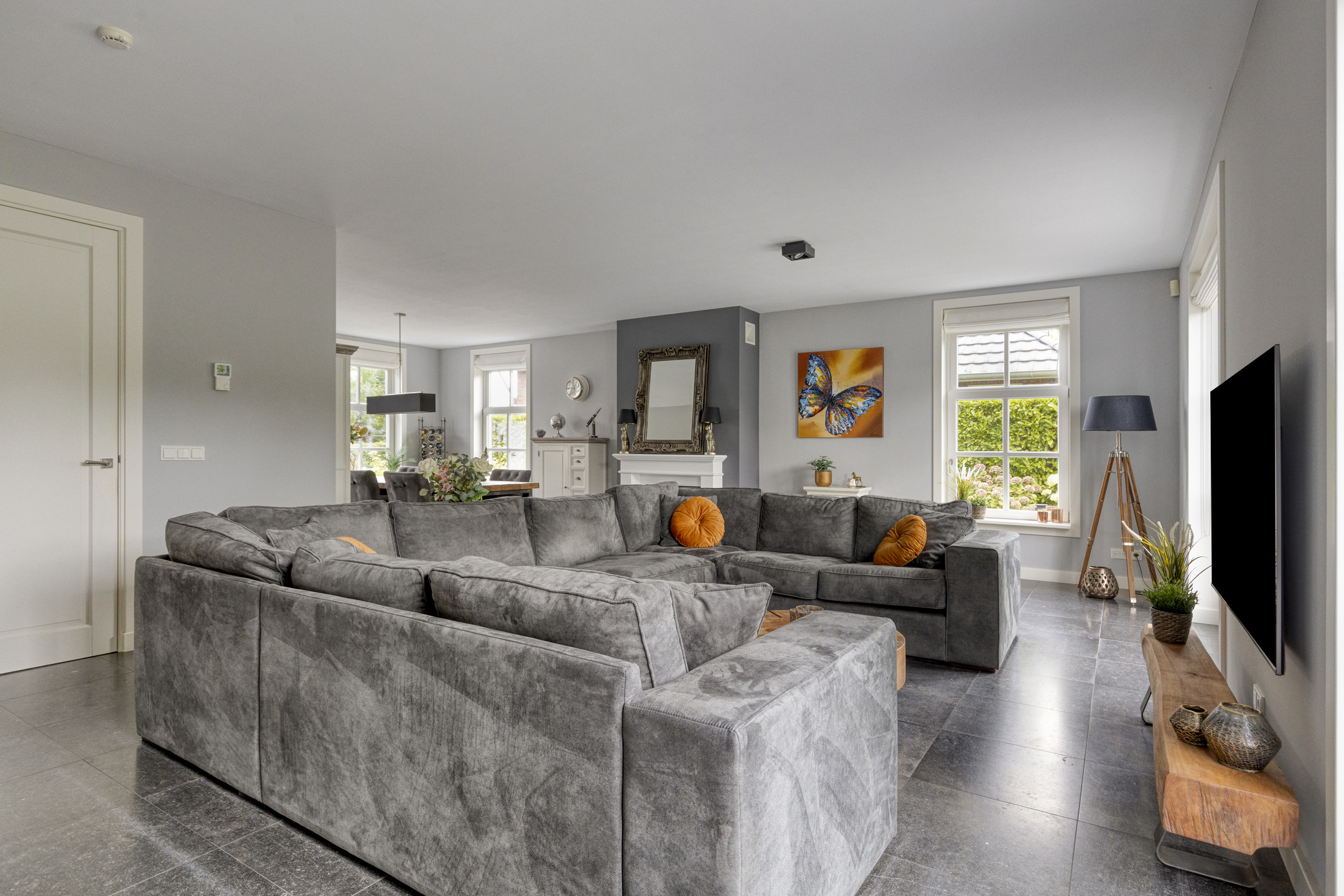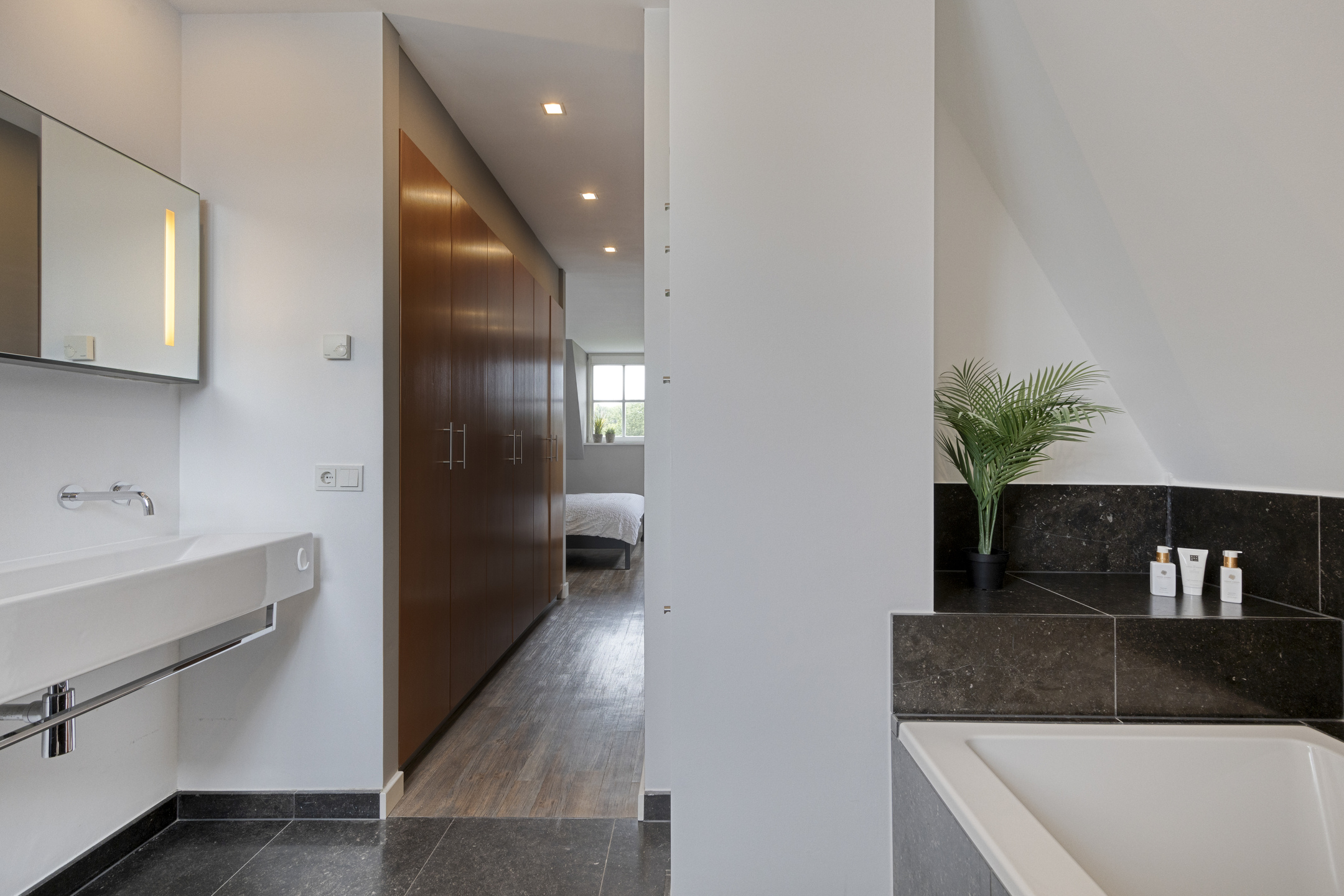 Outdoor living has been carefully designed. The garden is beautifully landscaped and excellently maintained, featuring natural stone terraces, lush greenery and an automatic irrigation system. The sunny orientation, the double garage with polished and coated concrete floor, and the generous driveway – accessed via a two-part electric gate that radiates class and quality – all contribute to the premium character of this property. The views of the surrounding fields and the Wouw windmill are stunning.