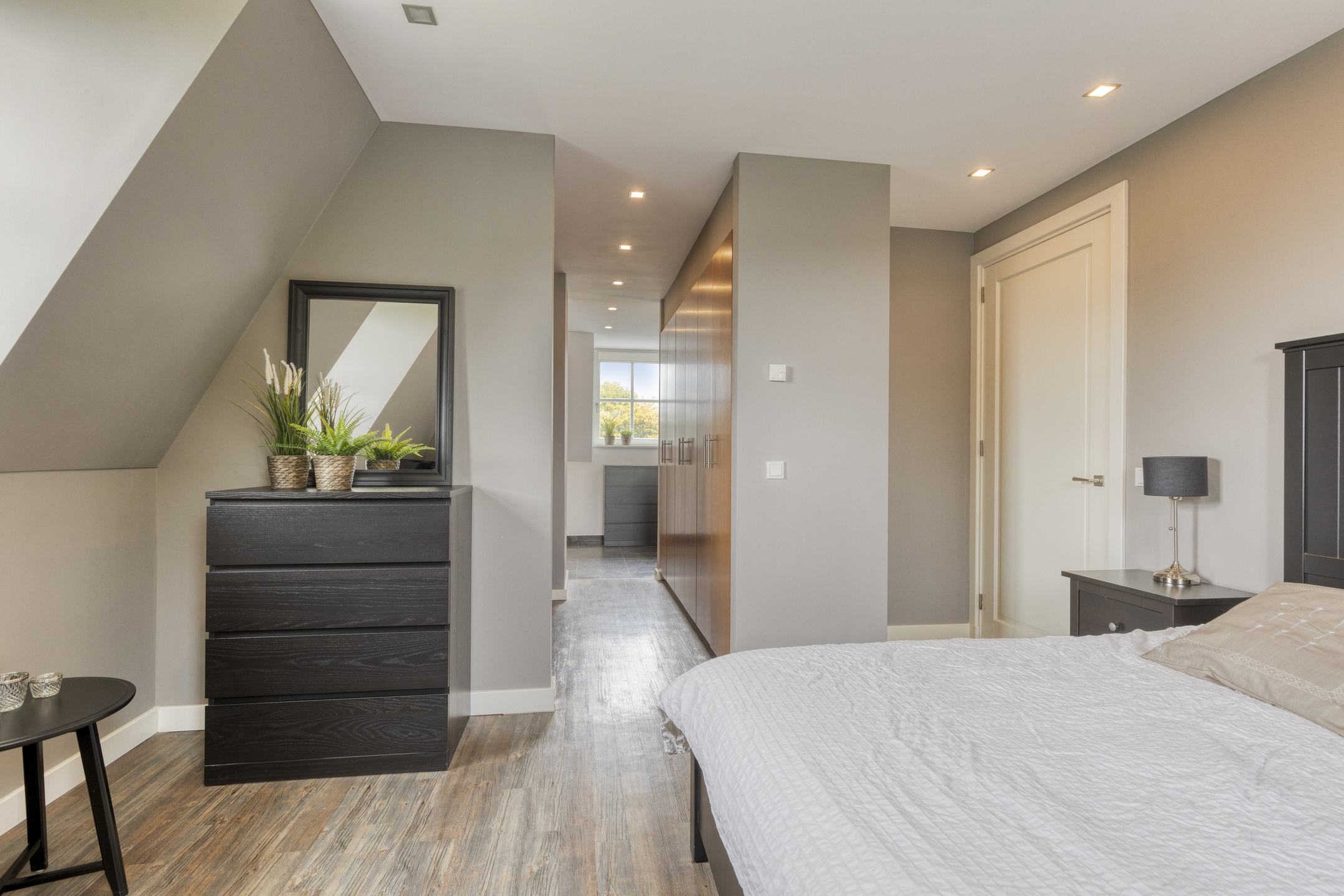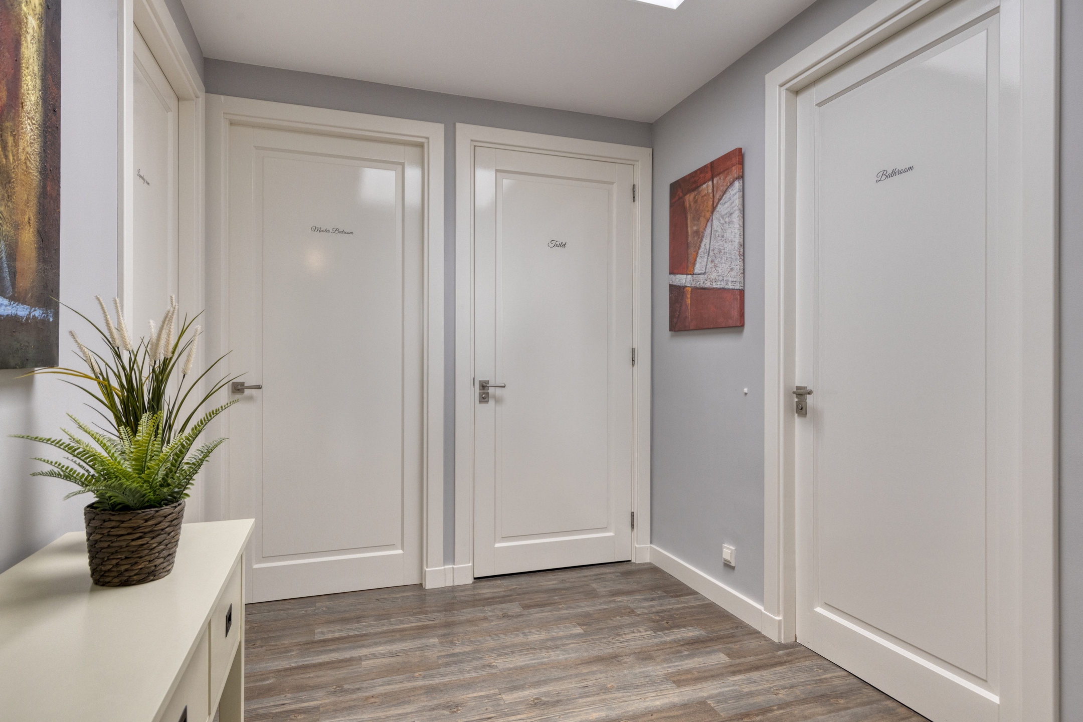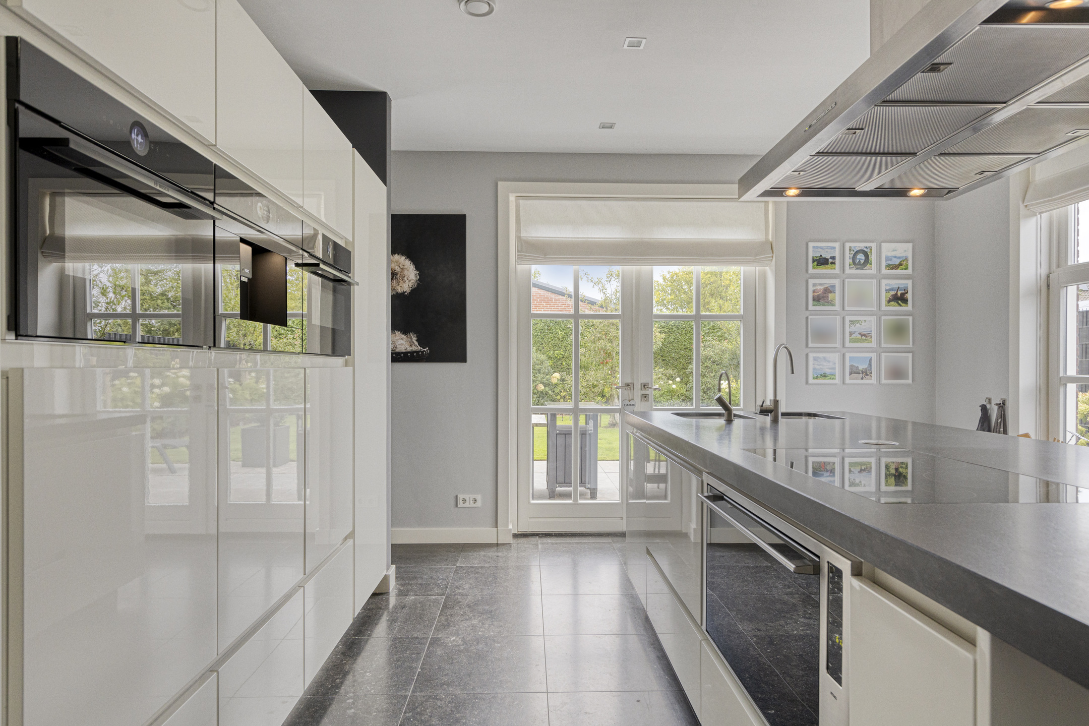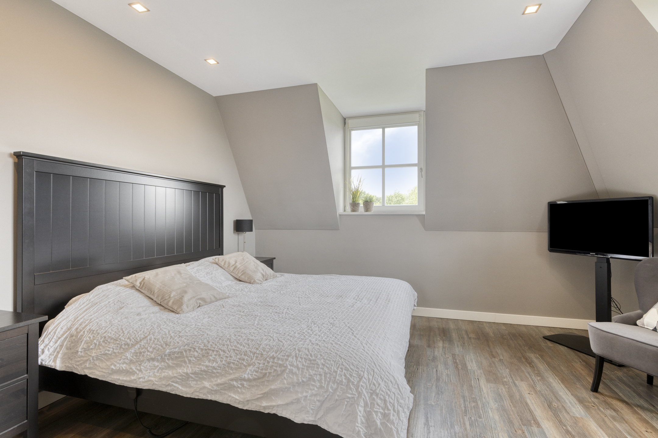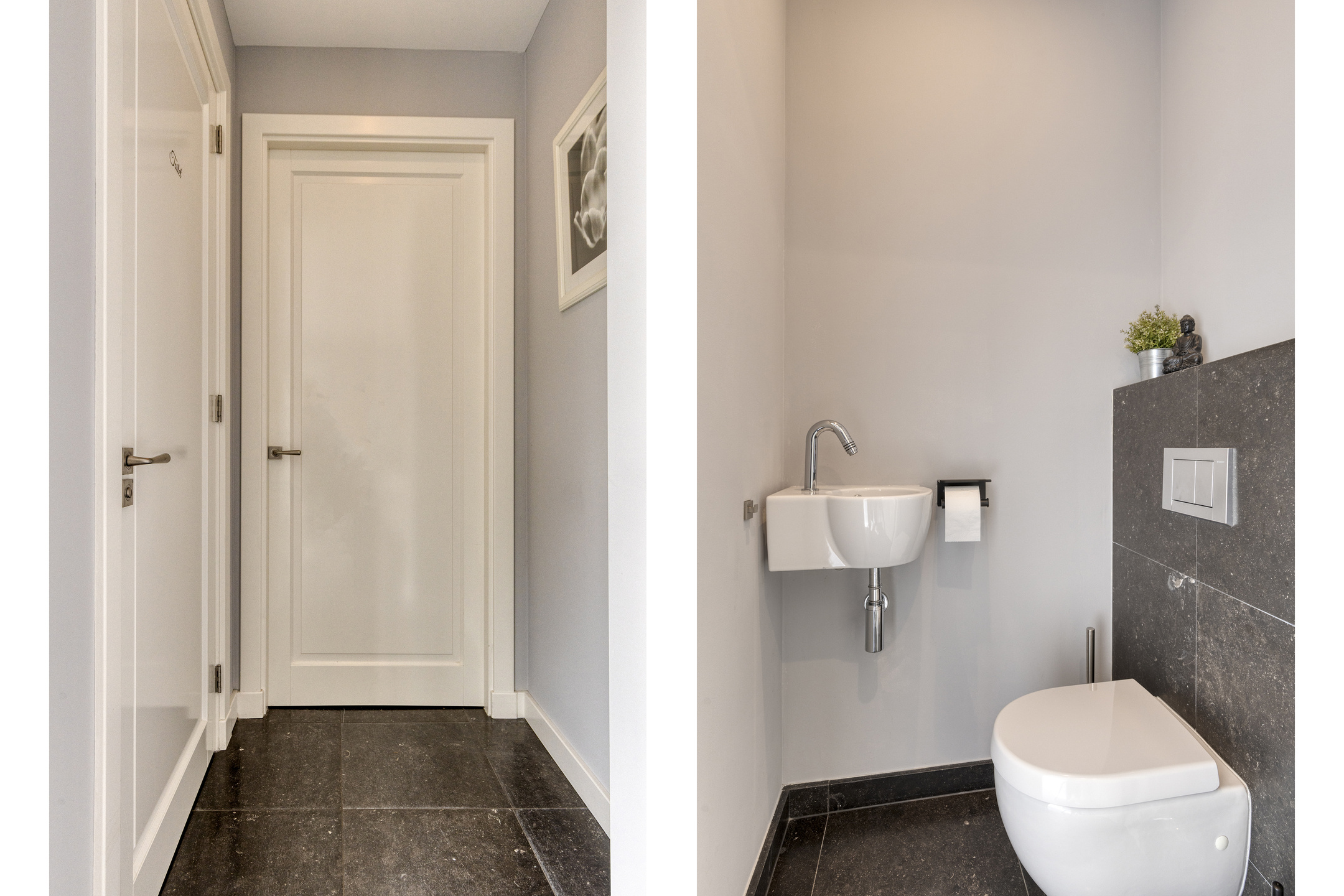 Outdoor living has been carefully designed. The garden is beautifully landscaped and excellently maintained, featuring natural stone terraces, lush greenery and an automatic irrigation system. The sunny orientation, the double garage with polished and coated concrete floor, and the generous driveway – accessed via a two-part electric gate that radiates class and quality – all contribute to the premium character of this property. The views of the surrounding fields and the Wouw windmill are stunning.