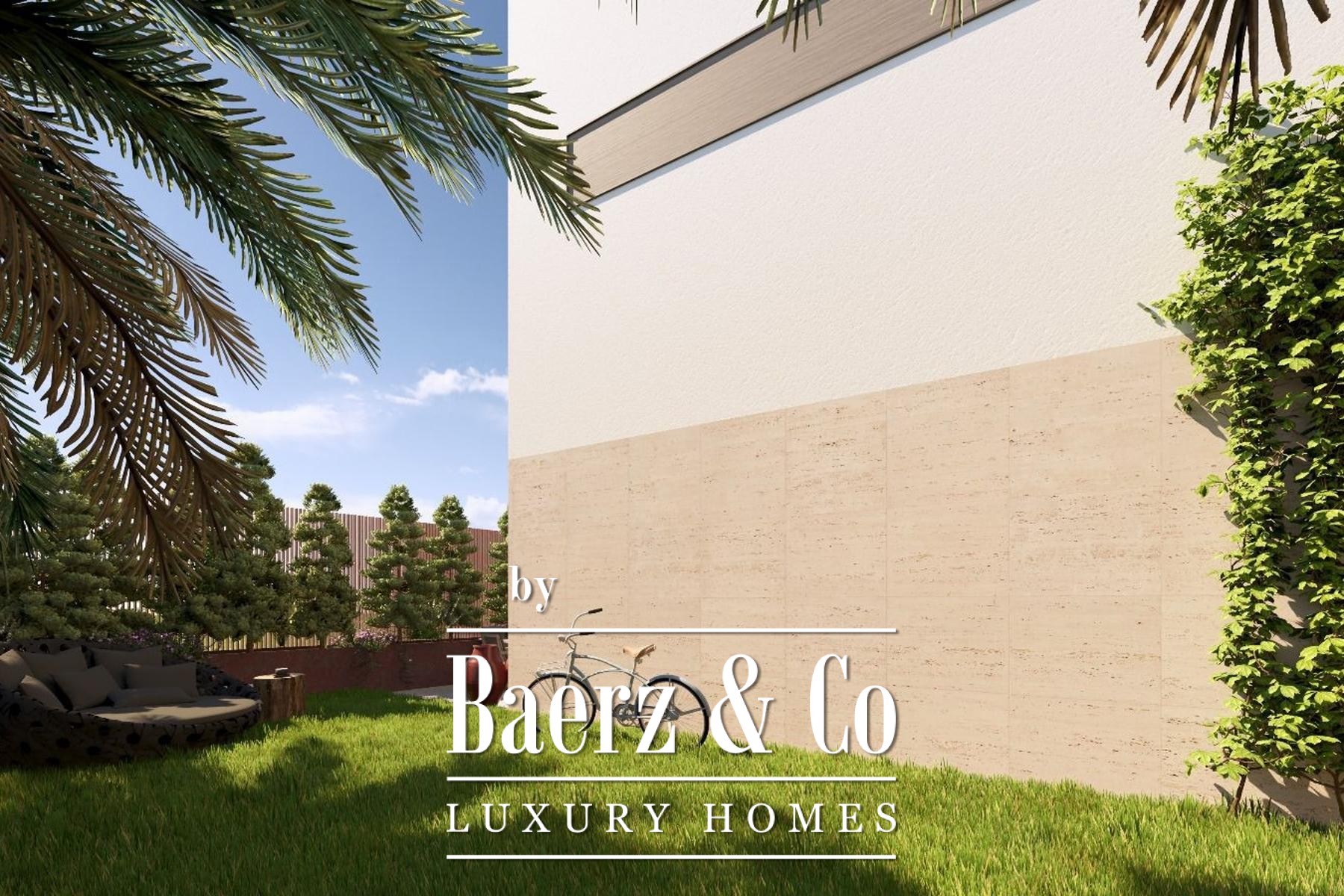 The ground floor welcomes with an entrance hall, living space, kitchen and dining area, leading by internal stair to the private quarters above. The first floor is composed of a master bedroom, two children’s rooms and two bathrooms, ensuring both privacy and flow for family life. The second floor extends outward, offering a covered and uncovered terrace, a swimming pool and technical spaces. Frameless glass walls, chevron oak parquet and Corten steel railings reflect a restrained sense of quality throughout.