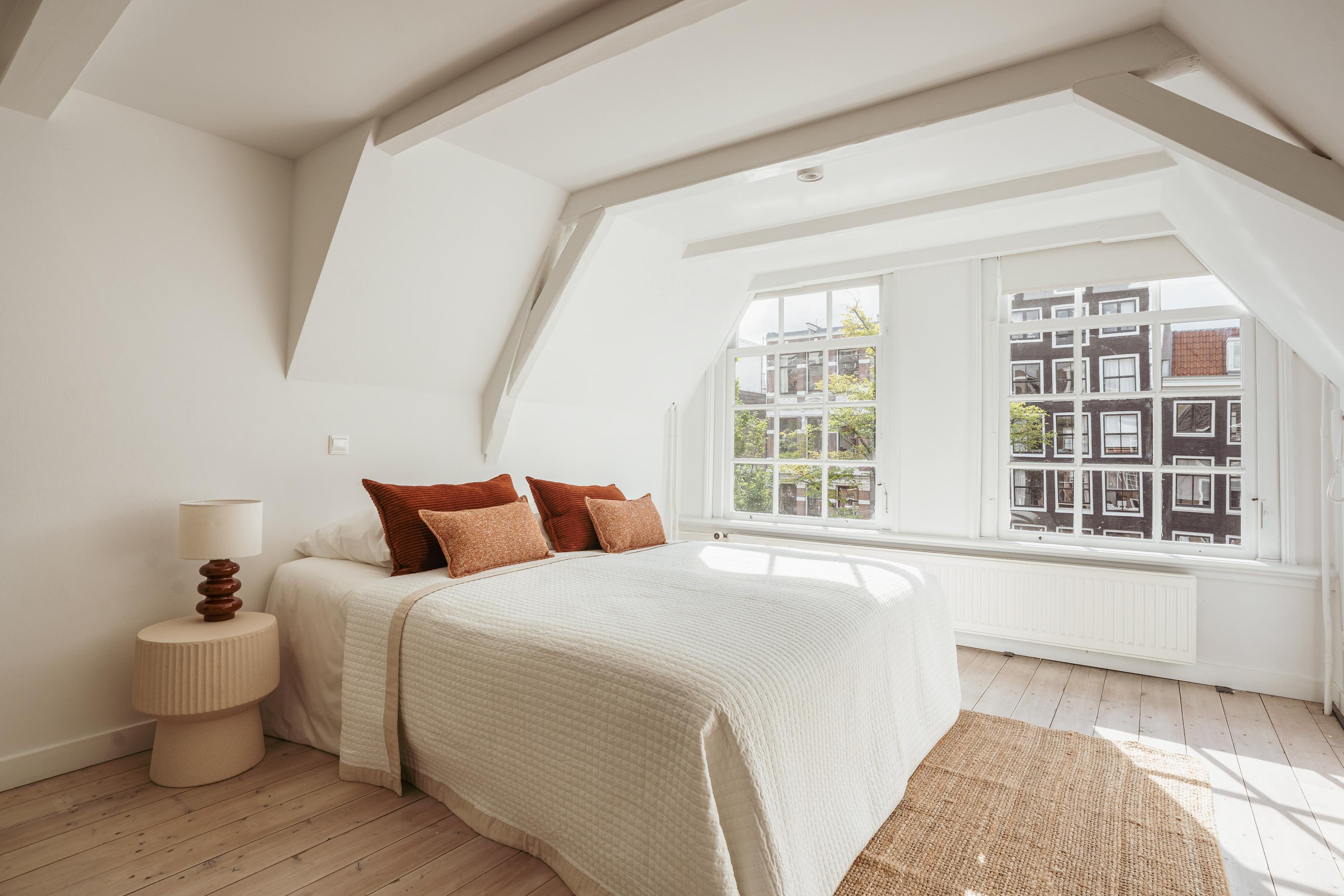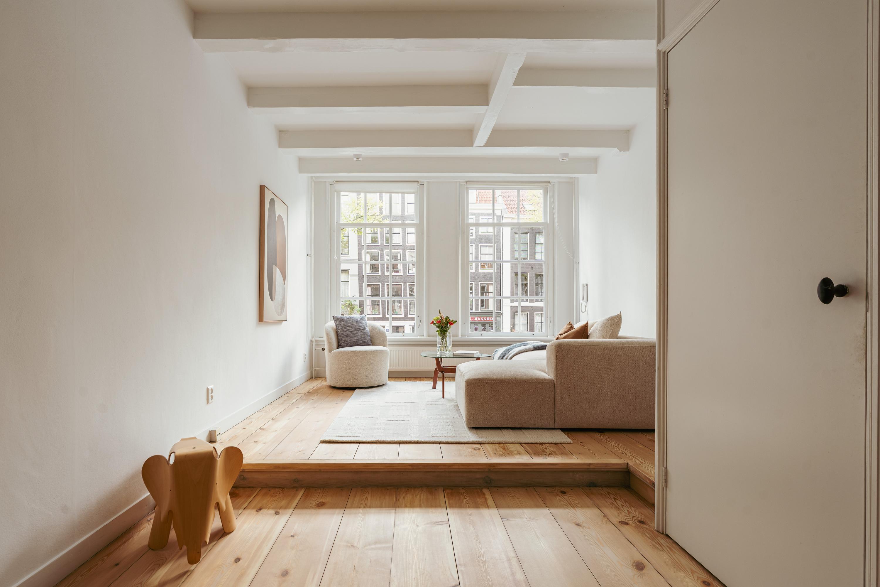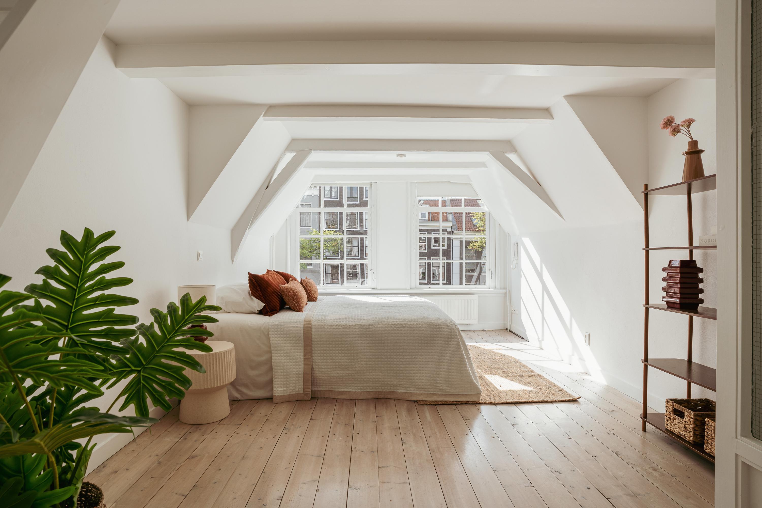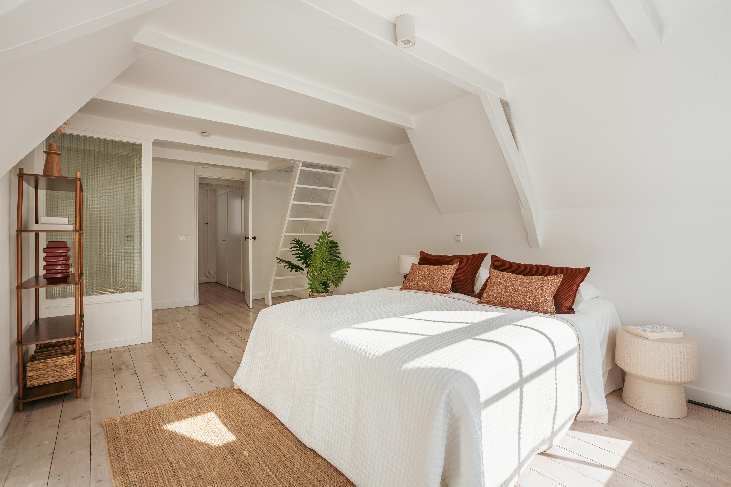 Una sala de estar de diseño elegante en dos alturas ocupa la primera planta, con ventanales que enmarcan las vistas al Bloemgracht e invitan a disfrutar del paisaje urbano con serenidad. En la segunda planta se encuentra un dormitorio con vistas al canal y un baño con ducha, mientras que la tercera planta aloja un espacioso segundo dormitorio con baño en suite, armarios empotrados y generosas dimensiones. Los espacios de almacenamiento y técnicos se sitúan discretamente bajo el tejado, con acceso a una terraza privada que brinda tranquilidad sobre la ciudad.