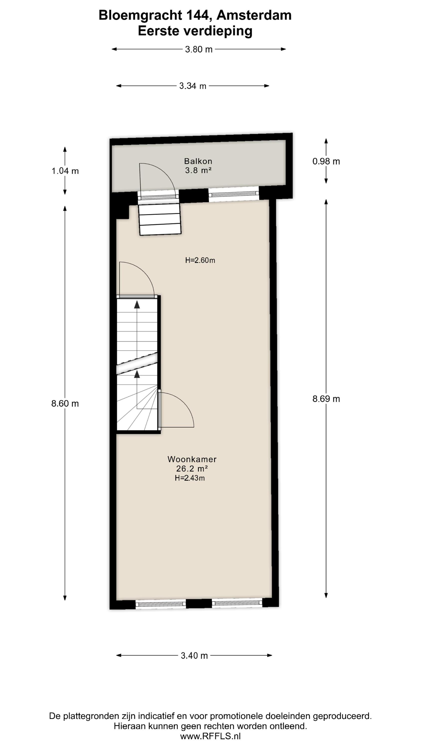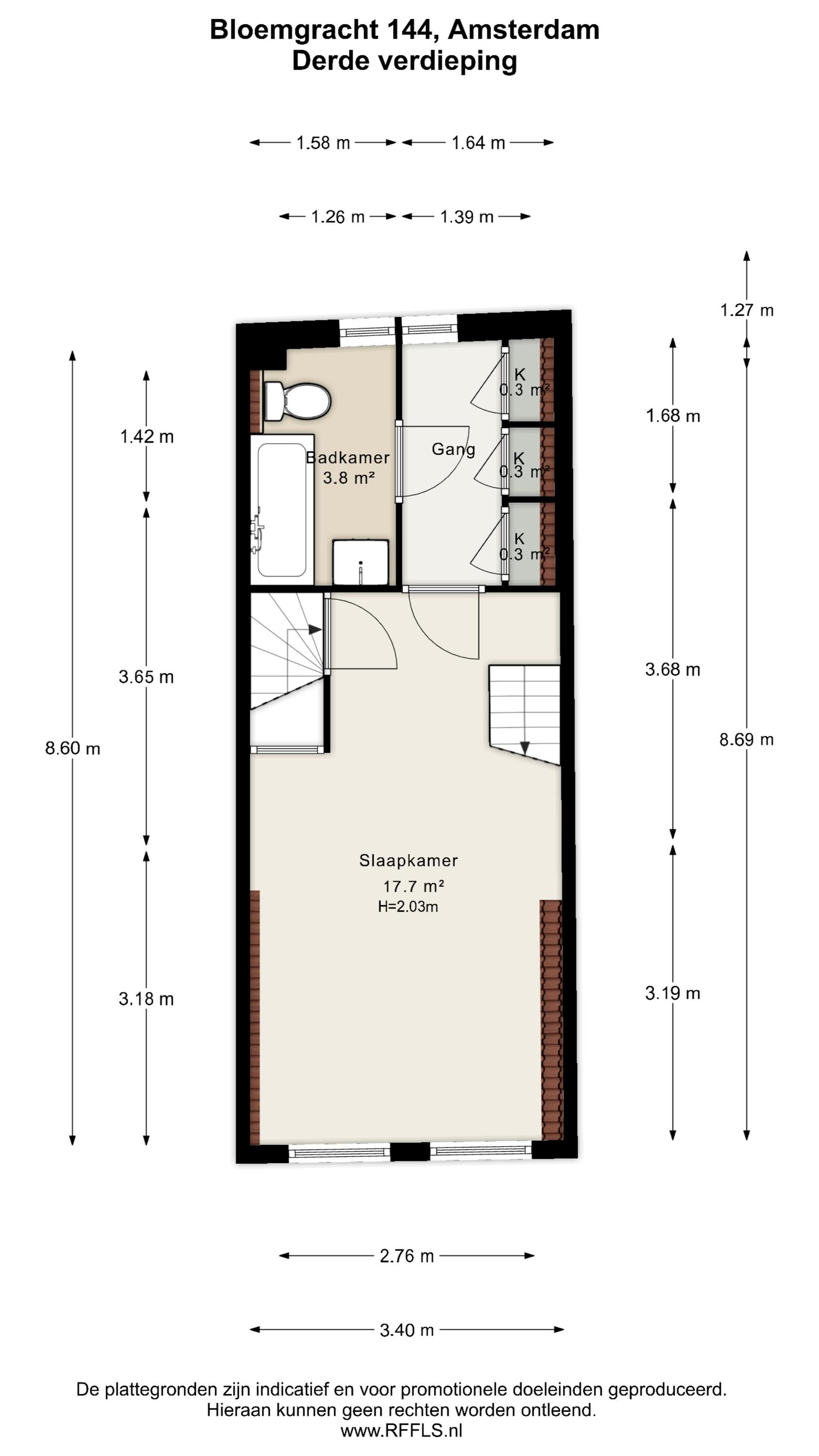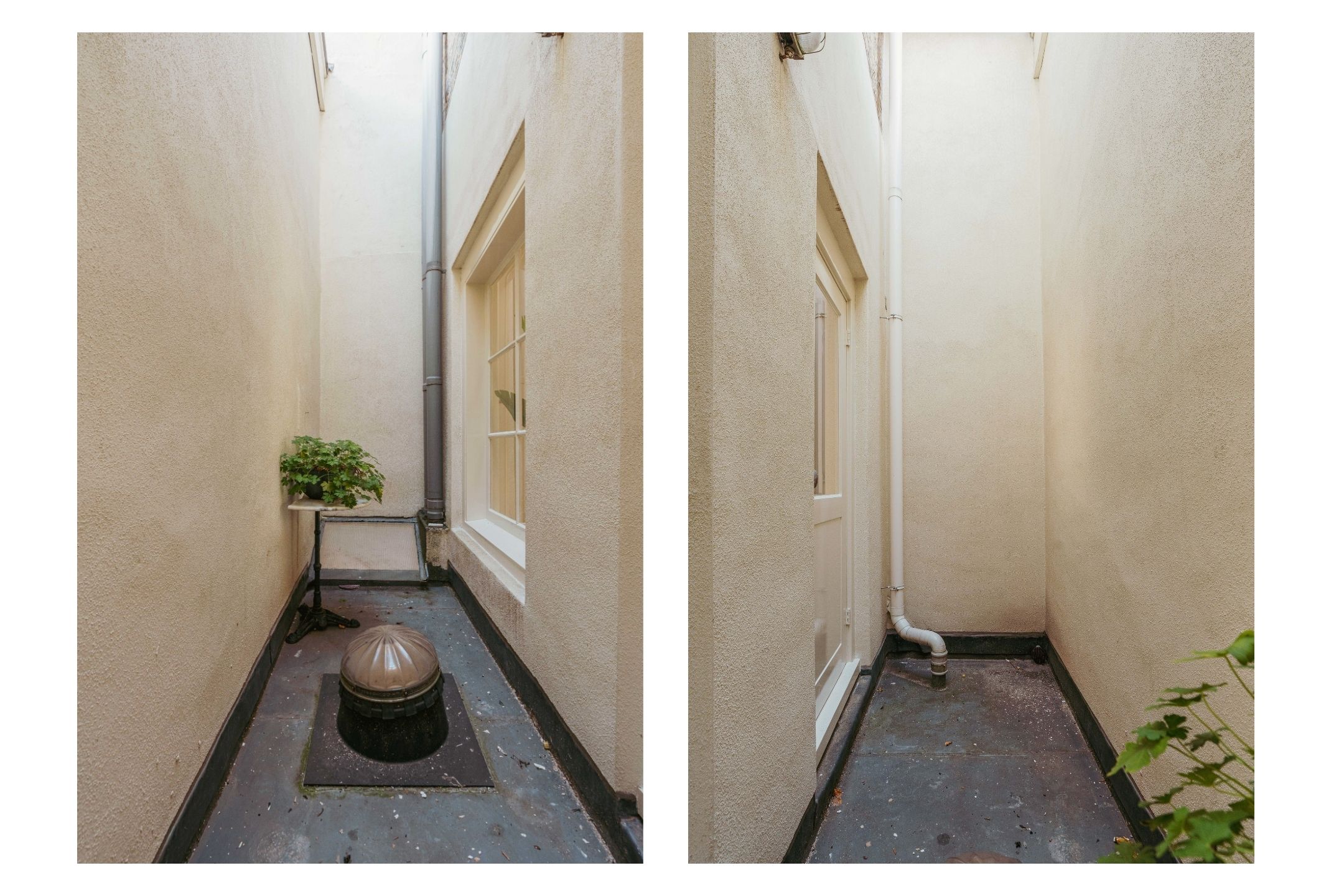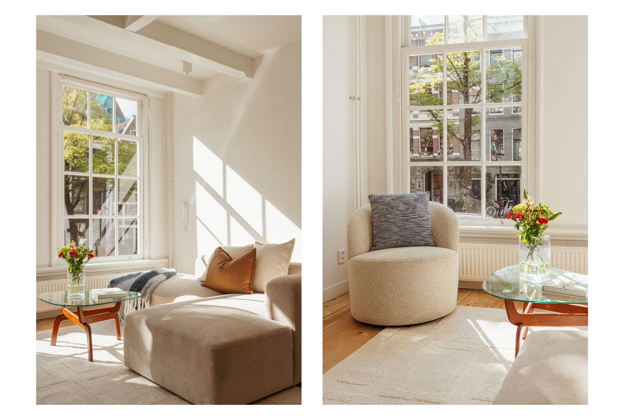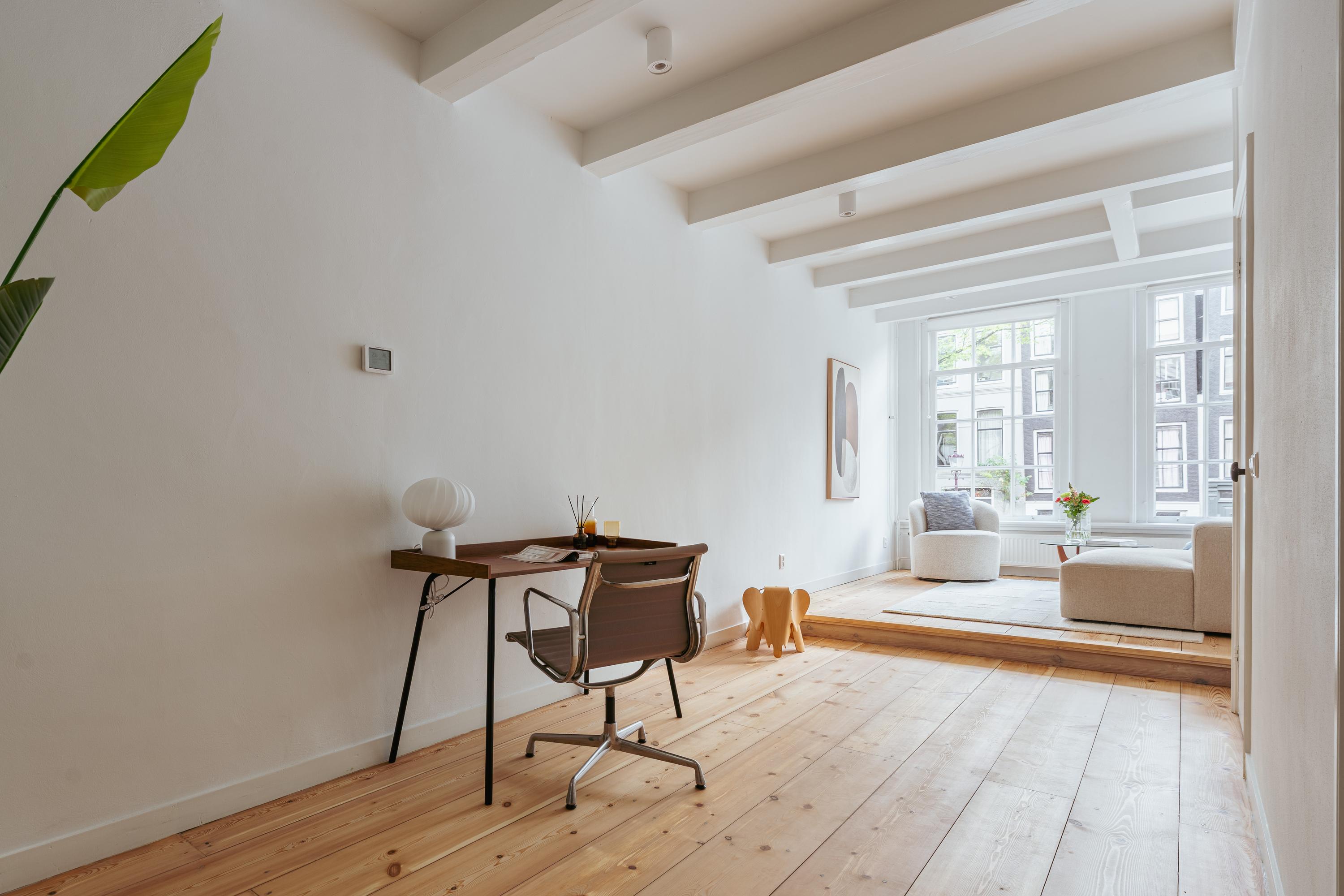 Una sala de estar de diseño elegante en dos alturas ocupa la primera planta, con ventanales que enmarcan las vistas al Bloemgracht e invitan a disfrutar del paisaje urbano con serenidad. En la segunda planta se encuentra un dormitorio con vistas al canal y un baño con ducha, mientras que la tercera planta aloja un espacioso segundo dormitorio con baño en suite, armarios empotrados y generosas dimensiones. Los espacios de almacenamiento y técnicos se sitúan discretamente bajo el tejado, con acceso a una terraza privada que brinda tranquilidad sobre la ciudad.