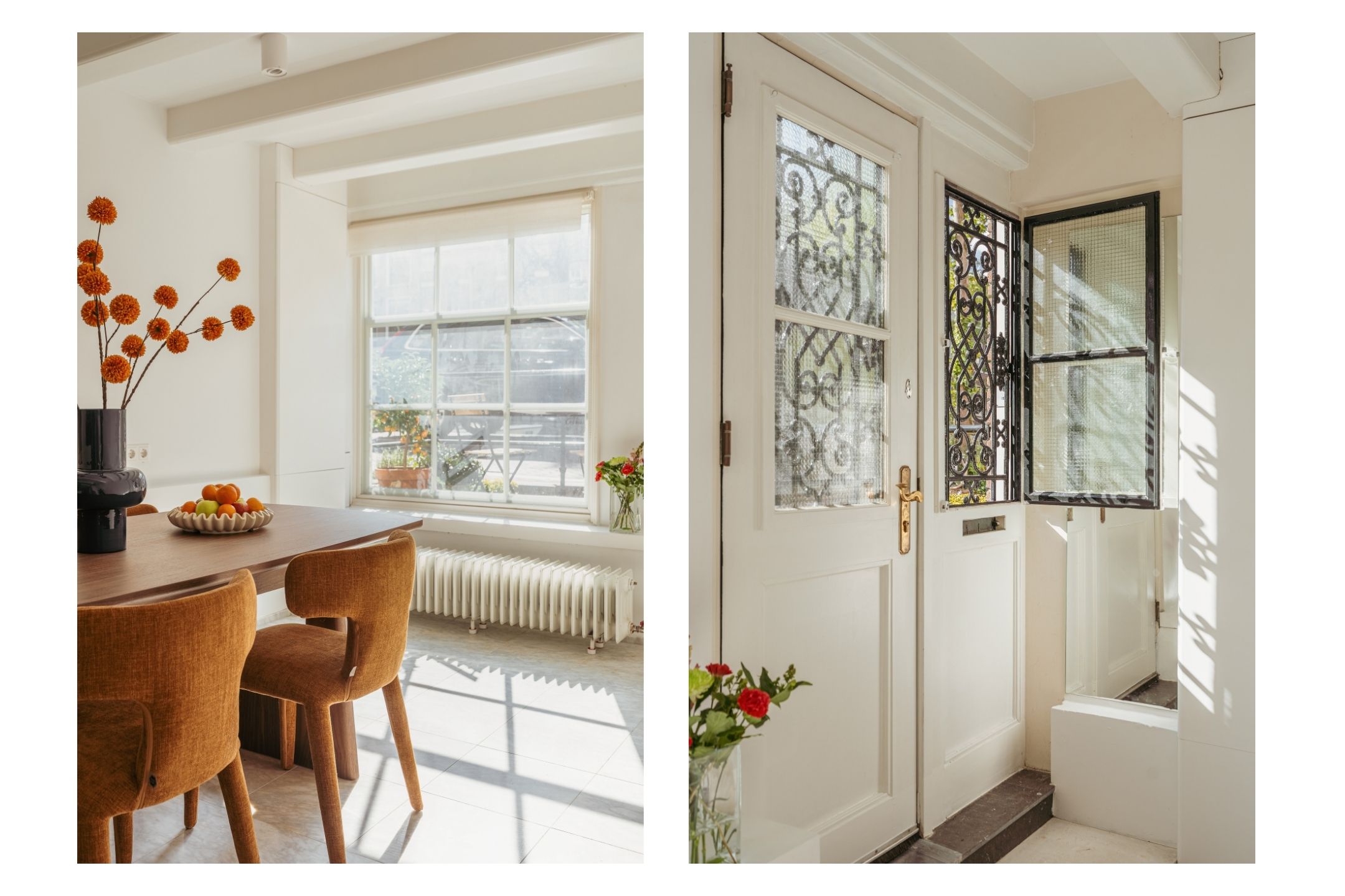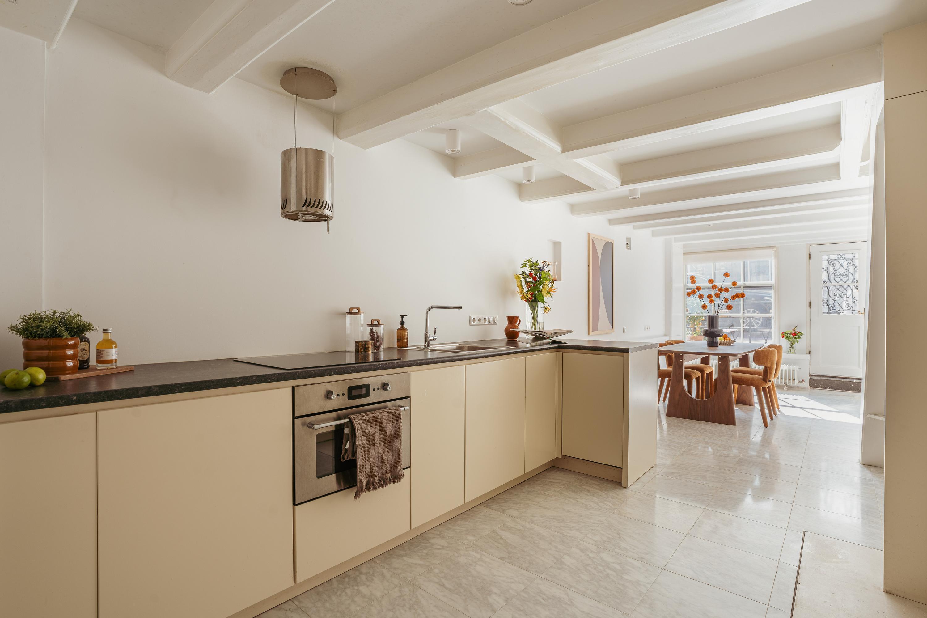 Esta casa a orillas del canal en Ámsterdam ofrece una atmósfera de bienvenida discreta. Ubicada en el tranquilo Bloemgracht, en el corazón del Jordaan, esta propiedad catalogada ocupa 118 m² distribuidos en cuatro niveles residenciales y presenta una interacción fluida de luz, texturas y vistas al agua, una combinación poco habitual en la ciudad. La vivienda se presenta con una entrada privada que conduce a una cocina-comedor donde destacan elementos originales y abundante espacio de almacenamiento, además de una acogedora área de estar al frente que captura el dinamismo del canal y la luz natural durante todo el día.