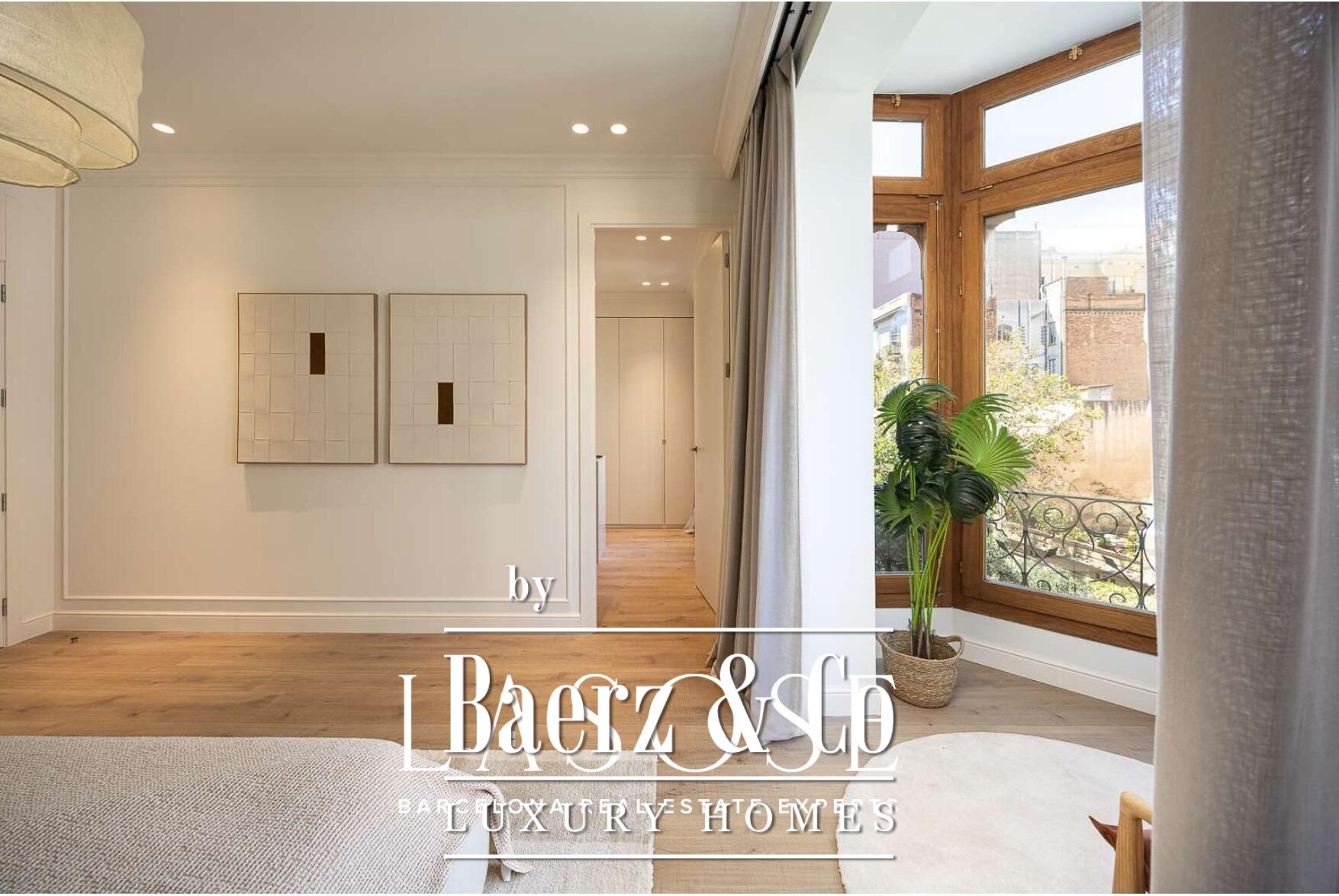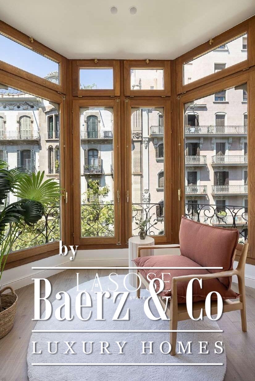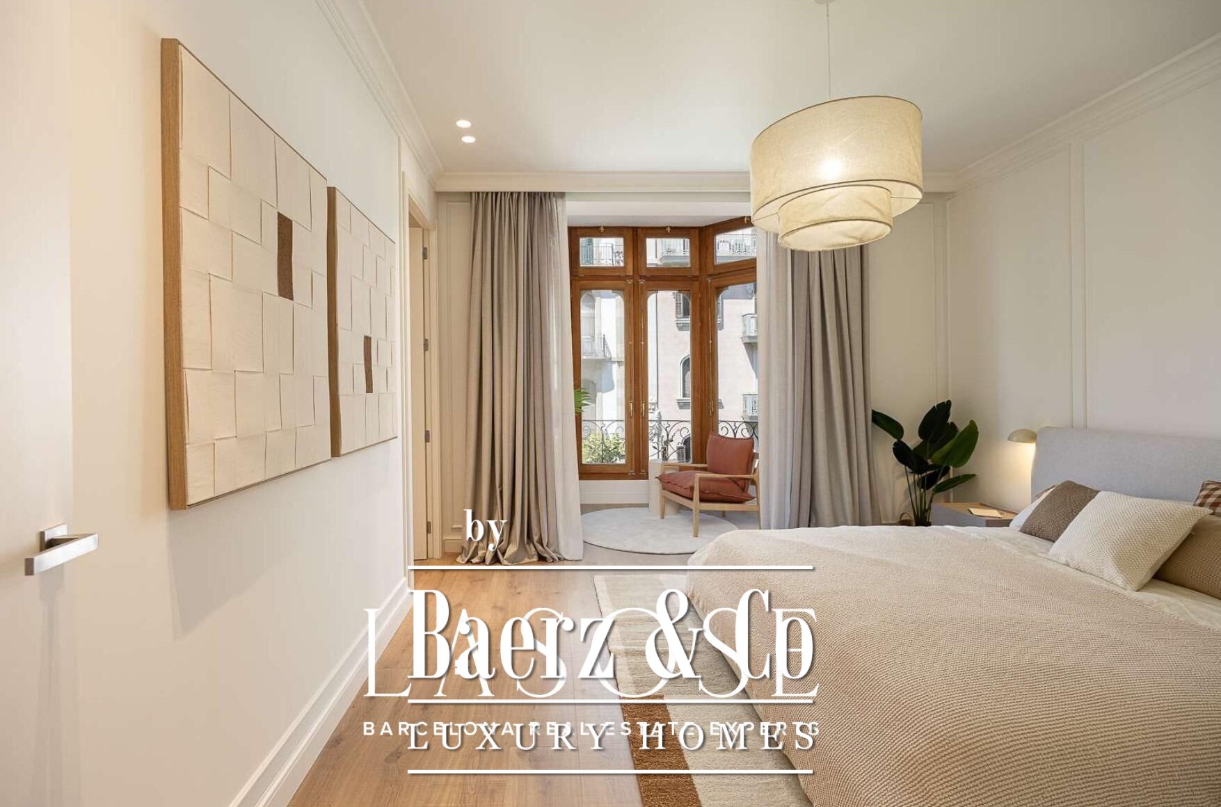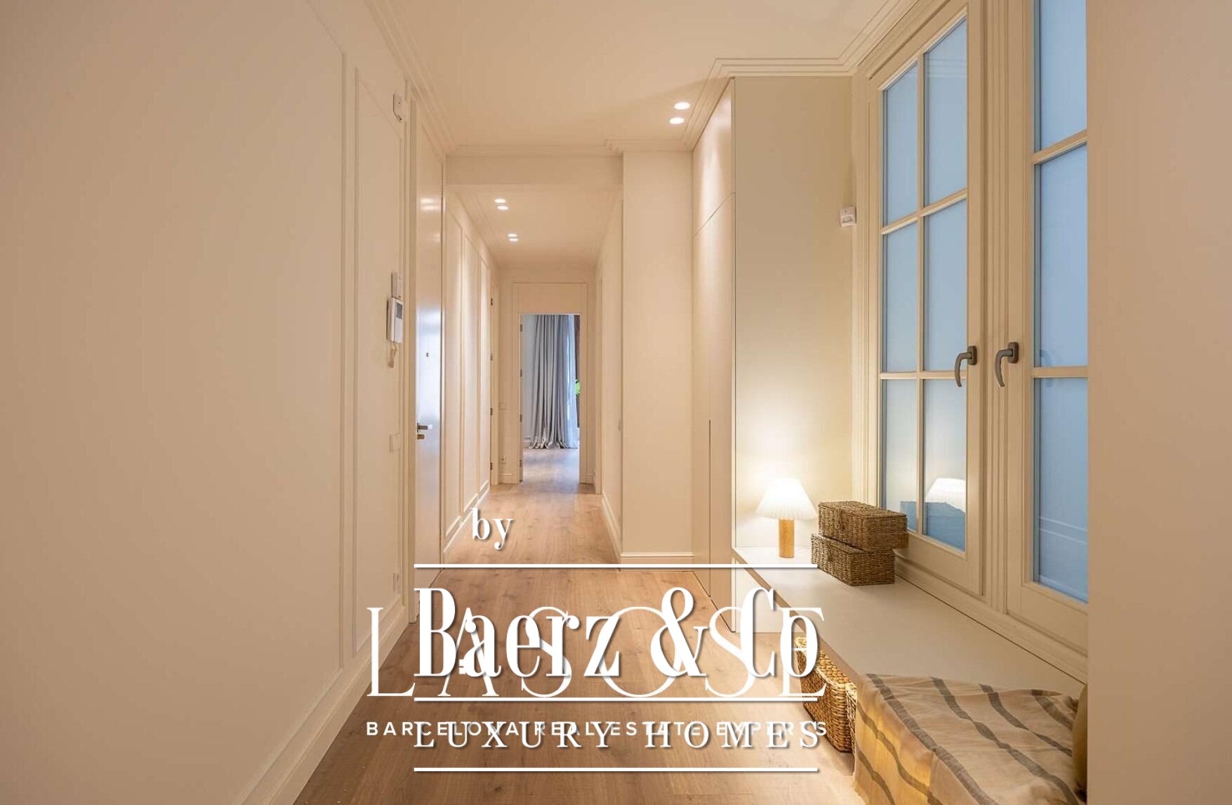 Ubicada en la tercera planta con acceso por ascensor, esta vivienda modernista Barcelona Quadrat d'Or está bañada de luz natural en todos sus amplios espacios. La galería orientada al suroeste y los techos abovedados catalanes originales aportan un ambiente de privacidad y sofisticación. Cada elemento de la reciente y exclusiva reforma respeta la arquitectura histórica e integra las más avanzadas comodidades contemporáneas. Suelos de parquet tono roble Parador AC 5, armarios a medida de ARMONY, electrodomésticos MIELE, climatización inteligente y una suite principal con vestidor elevan la experiencia cotidiana.