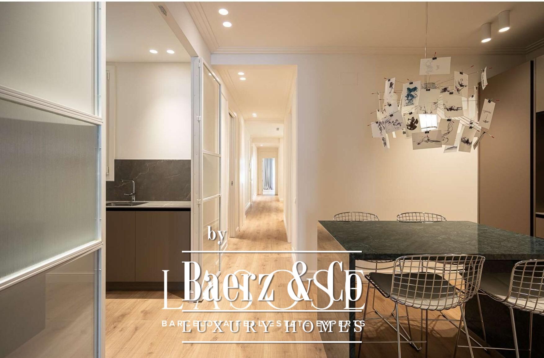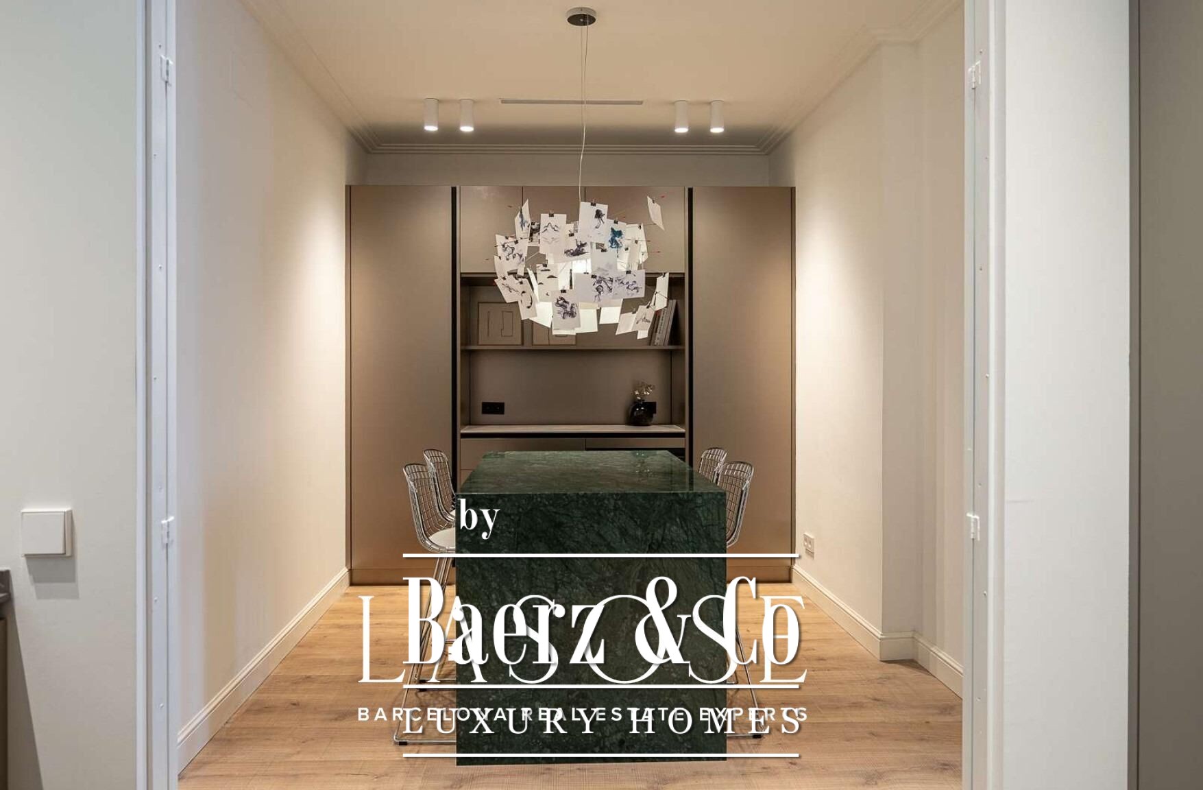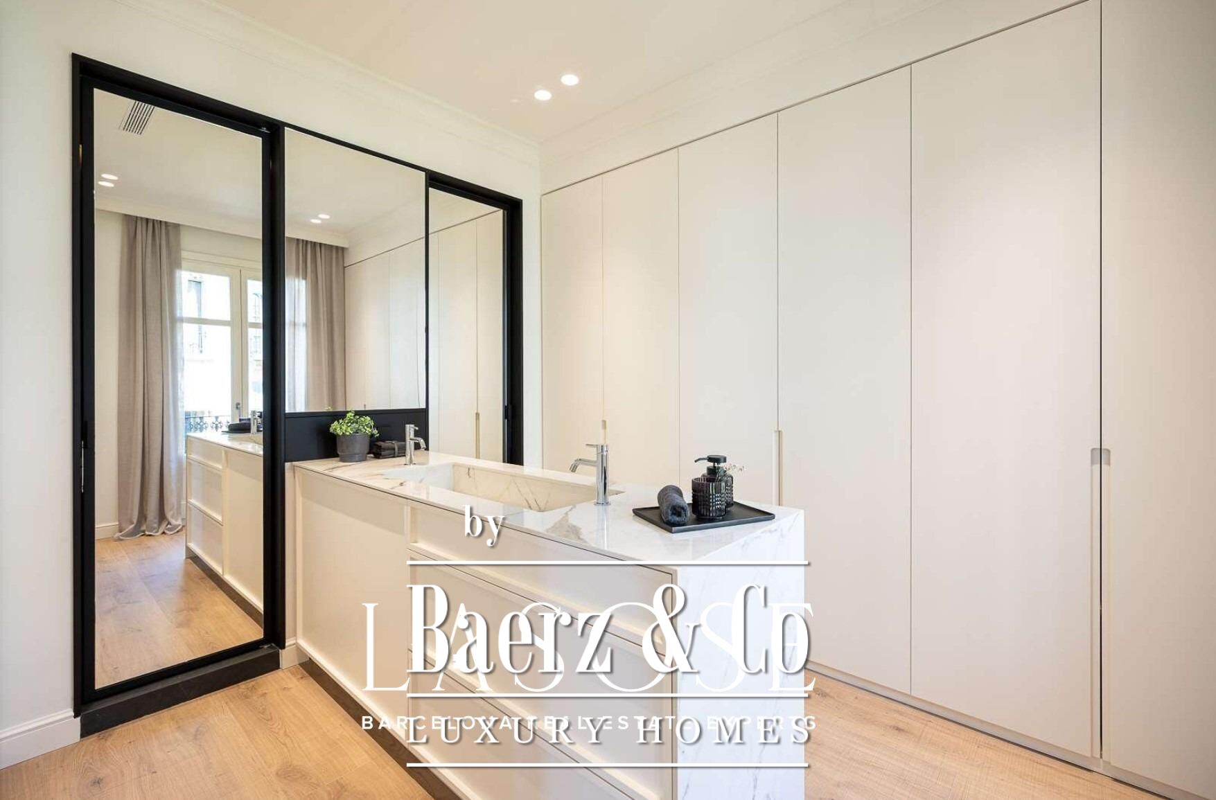 Ubicada en la tercera planta con acceso por ascensor, esta vivienda modernista Barcelona Quadrat d'Or está bañada de luz natural en todos sus amplios espacios. La galería orientada al suroeste y los techos abovedados catalanes originales aportan un ambiente de privacidad y sofisticación. Cada elemento de la reciente y exclusiva reforma respeta la arquitectura histórica e integra las más avanzadas comodidades contemporáneas. Suelos de parquet tono roble Parador AC 5, armarios a medida de ARMONY, electrodomésticos MIELE, climatización inteligente y una suite principal con vestidor elevan la experiencia cotidiana.
