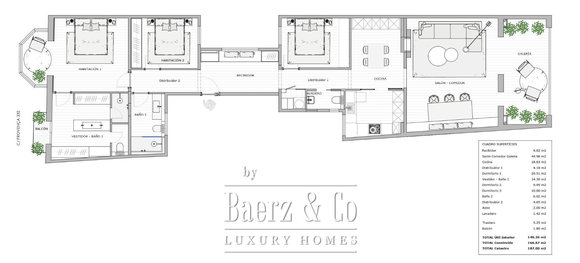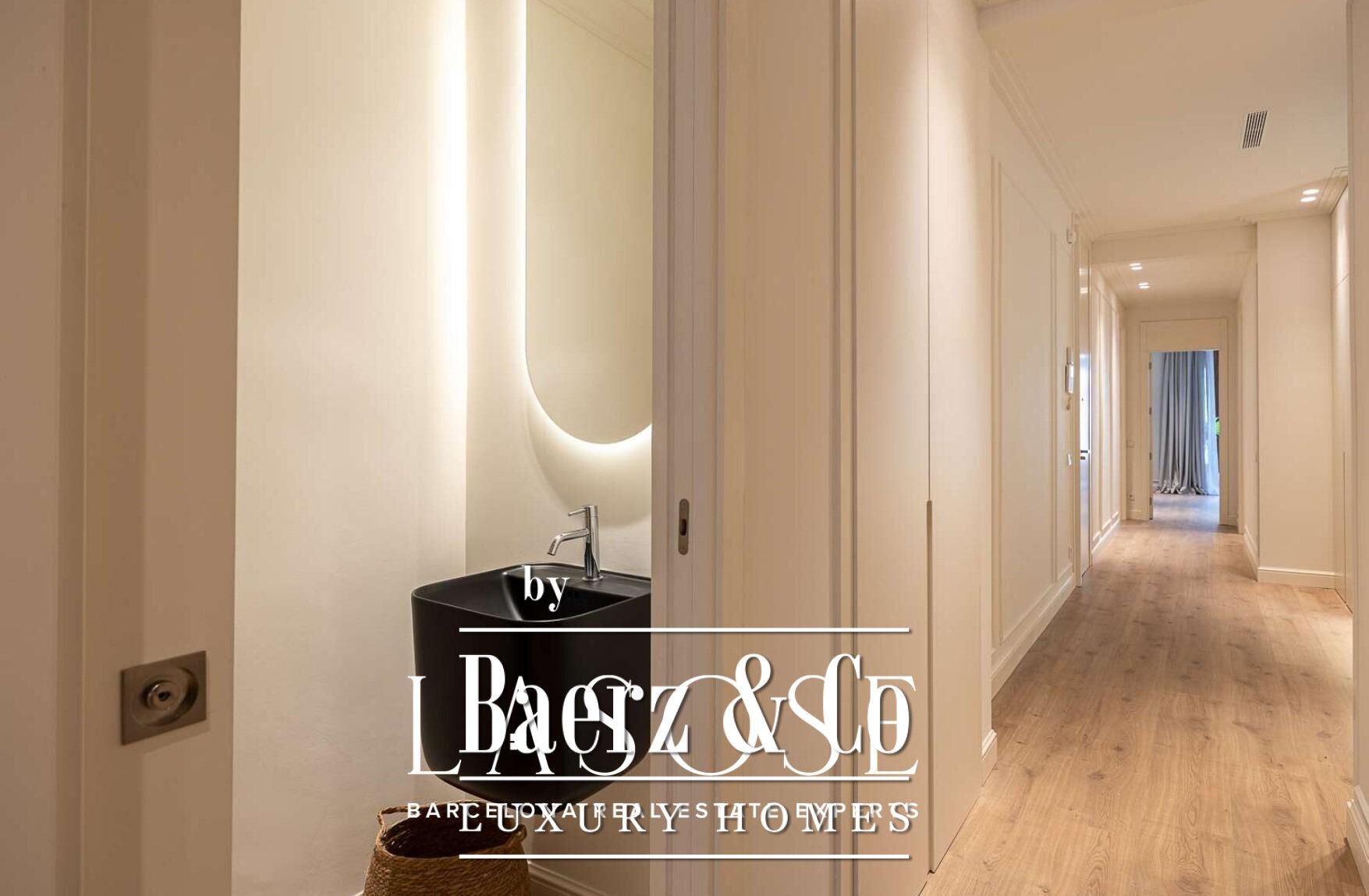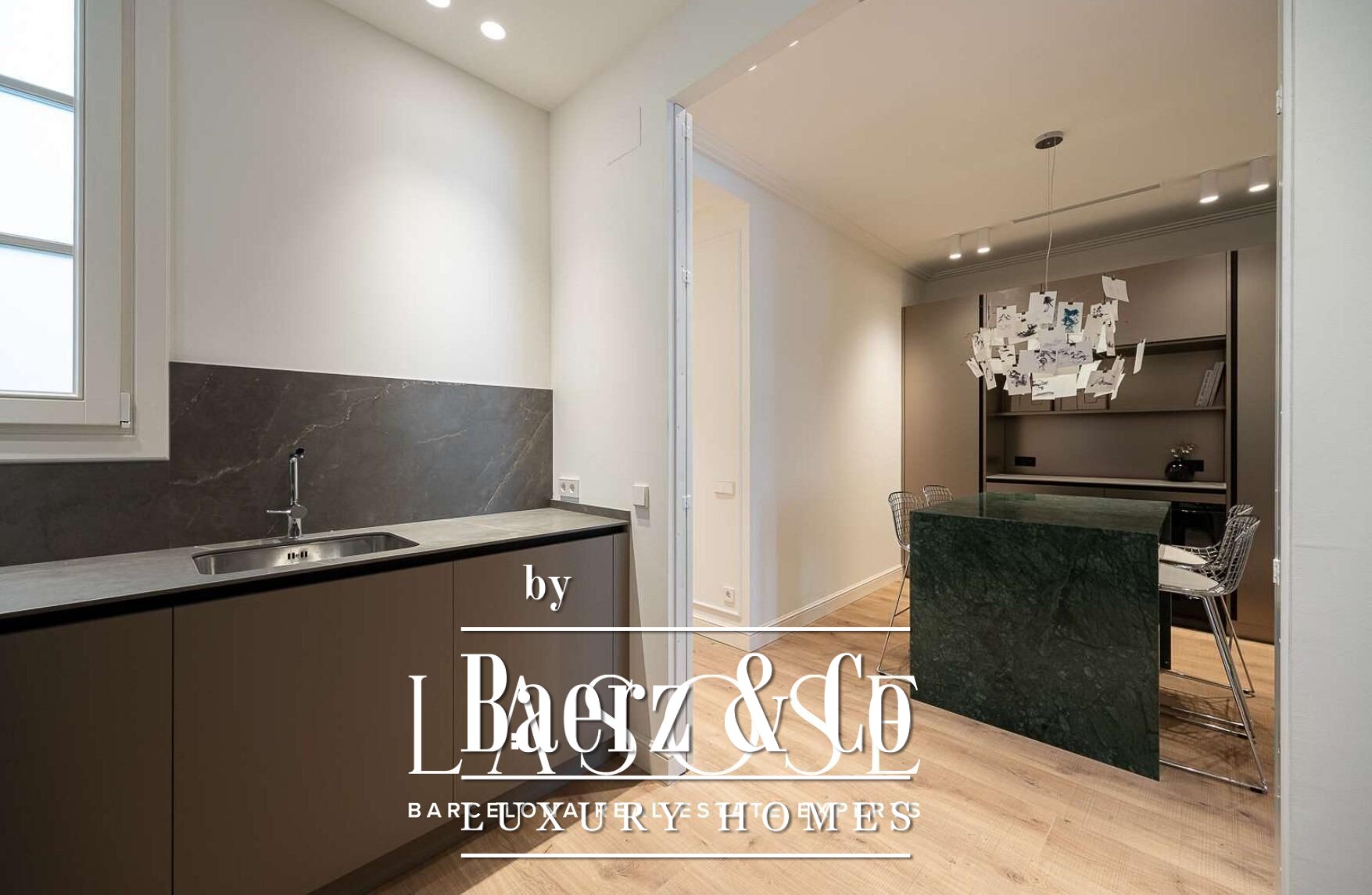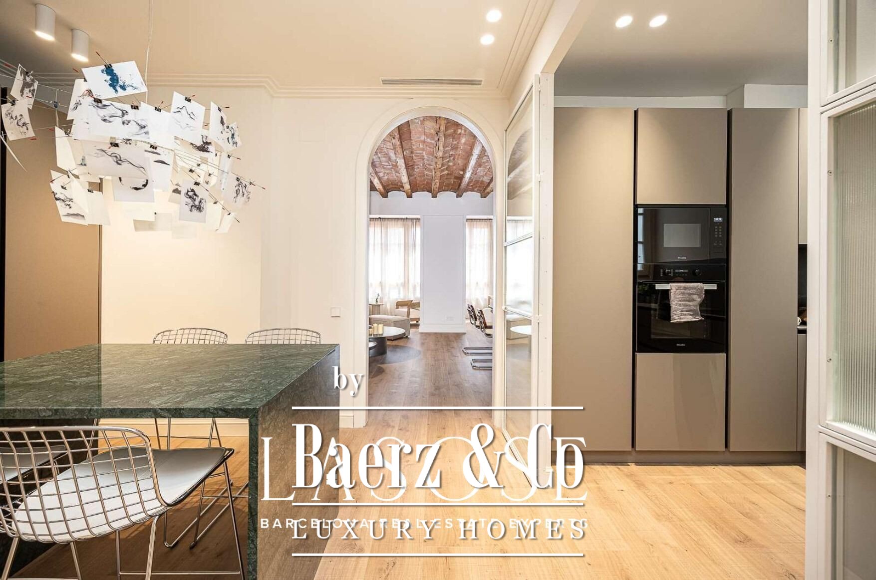 Ubicada en la tercera planta con acceso por ascensor, esta vivienda modernista Barcelona Quadrat d'Or está bañada de luz natural en todos sus amplios espacios. La galería orientada al suroeste y los techos abovedados catalanes originales aportan un ambiente de privacidad y sofisticación. Cada elemento de la reciente y exclusiva reforma respeta la arquitectura histórica e integra las más avanzadas comodidades contemporáneas. Suelos de parquet tono roble Parador AC 5, armarios a medida de ARMONY, electrodomésticos MIELE, climatización inteligente y una suite principal con vestidor elevan la experiencia cotidiana.