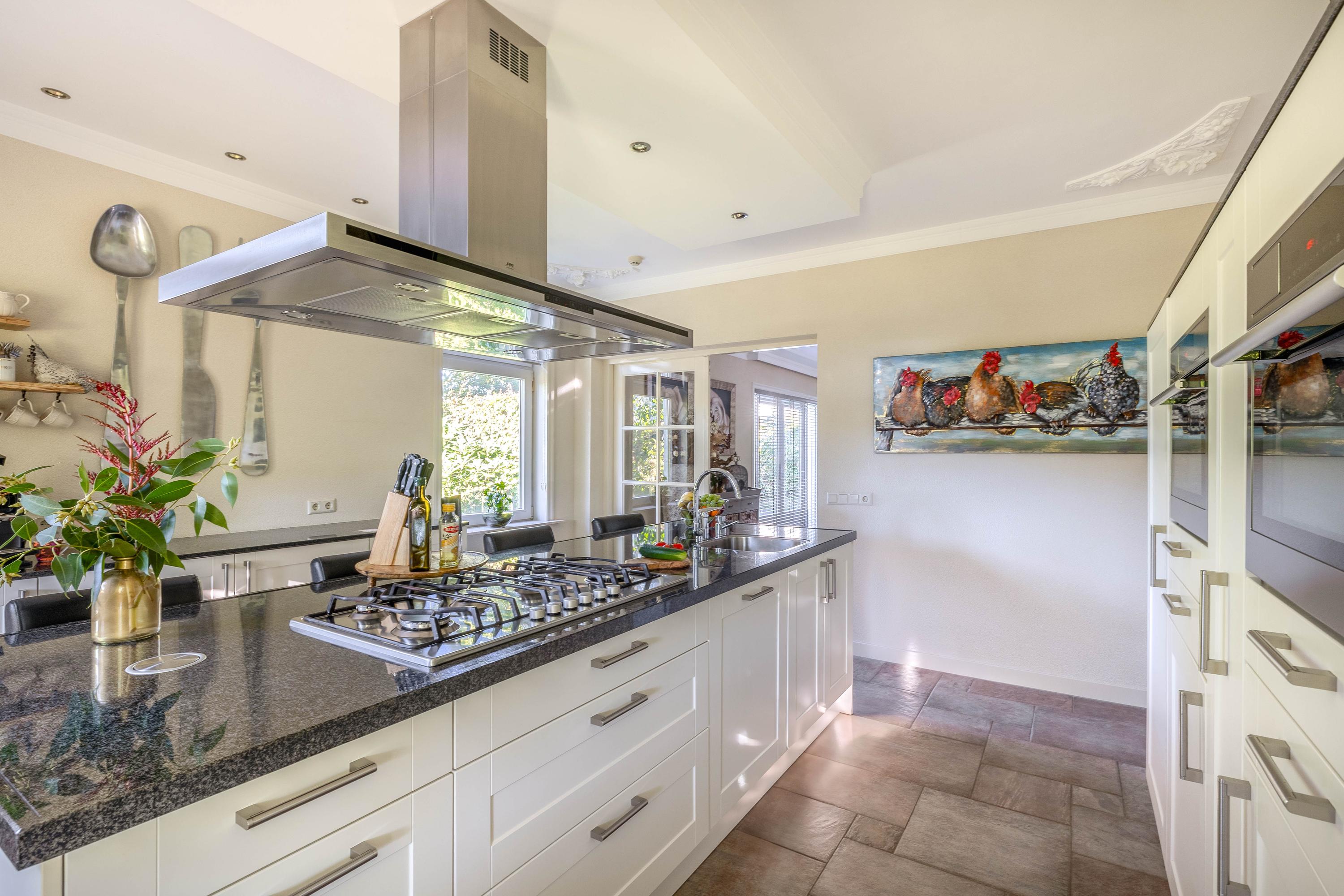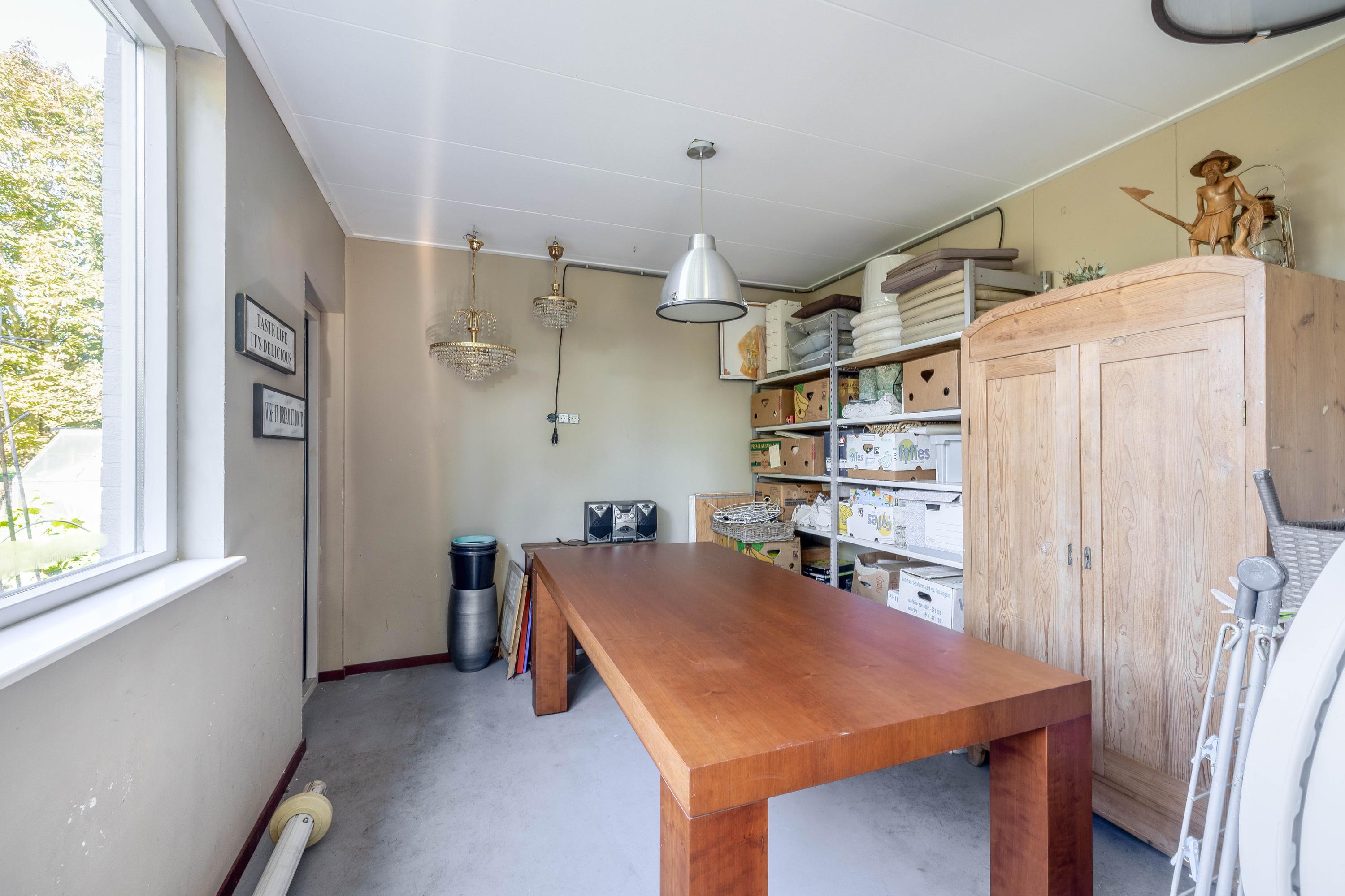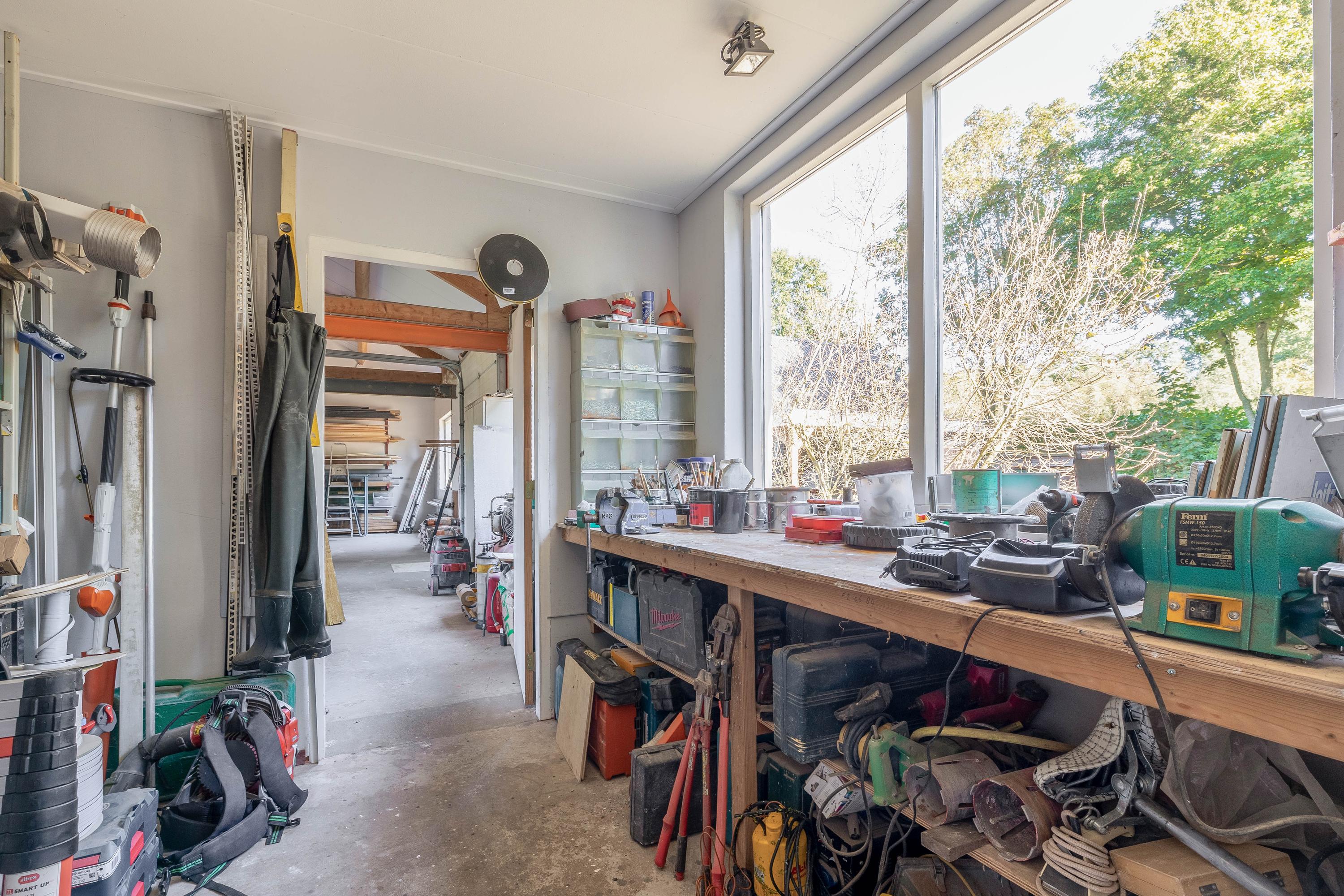 Uno de los puntos destacados de la propiedad es el taller completamente renovado, de más de 115 m² y acceso mediante un amplio camino de entrada. Este espacio es ideal como taller profesional, creativo, para negocio desde casa, aficiones o almacenamiento adicional, y se complementa con un garaje renovado y una cochera finalizados en 2024. El ambiente combina la tranquilidad rural con excelente accesibilidad urbana—supermercados, colegios y clubes deportivos se encuentran a poca distancia, mientras que Haastrecht y Gouda brindan servicios y opciones culturales en las proximidades.