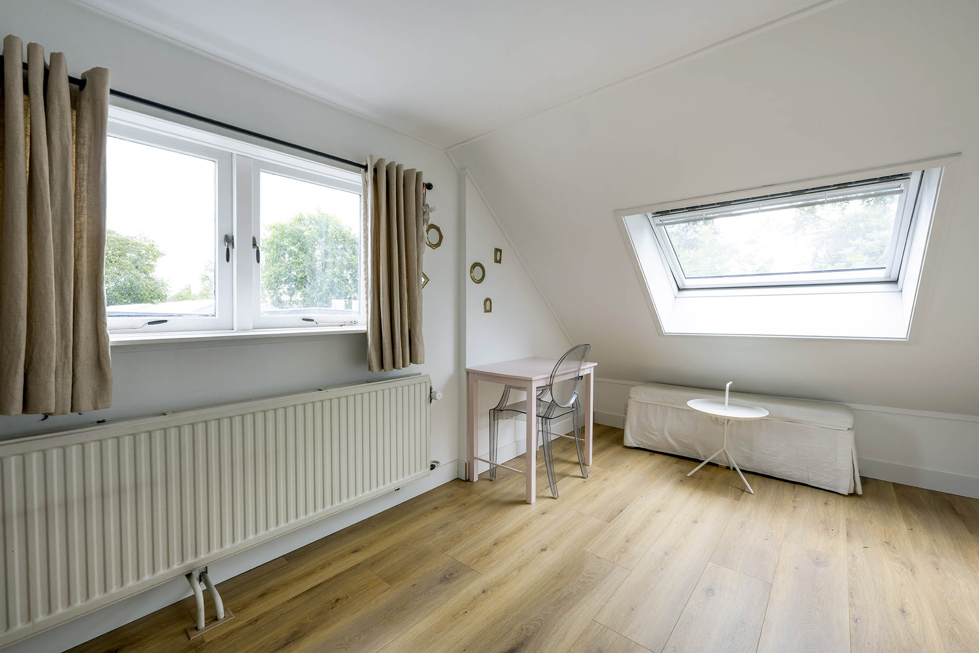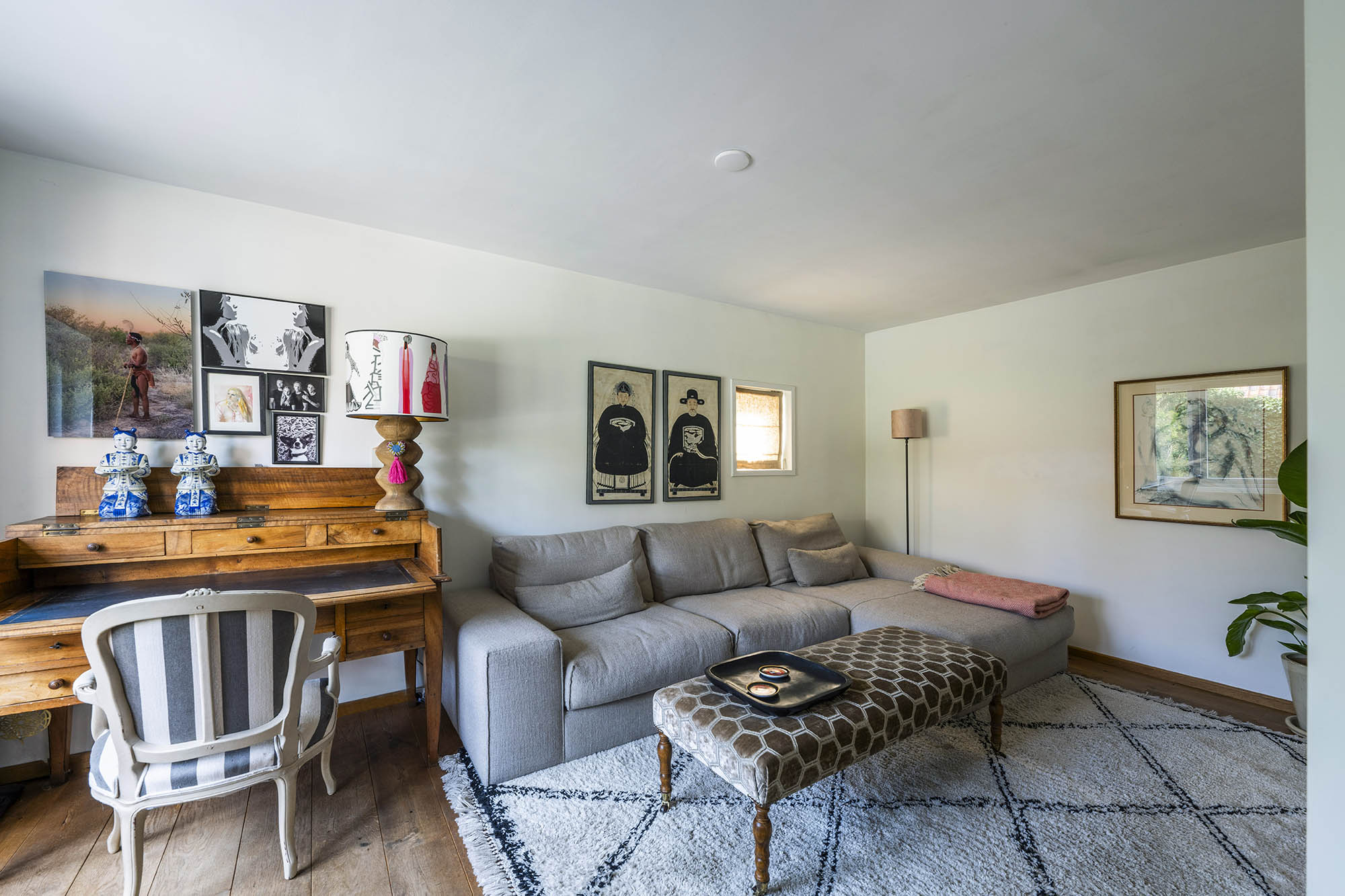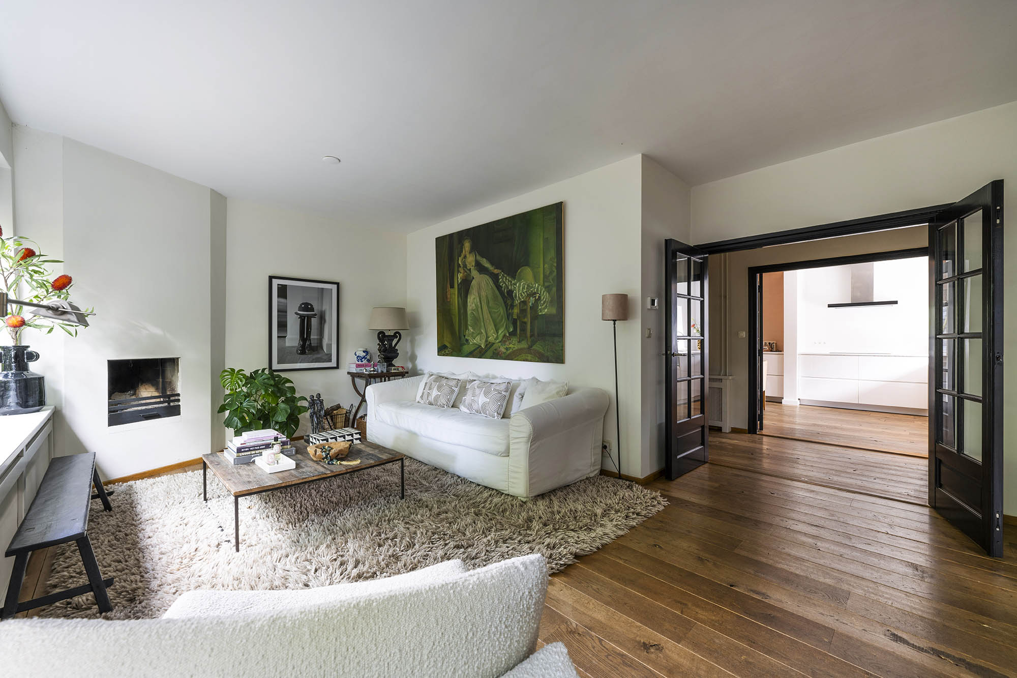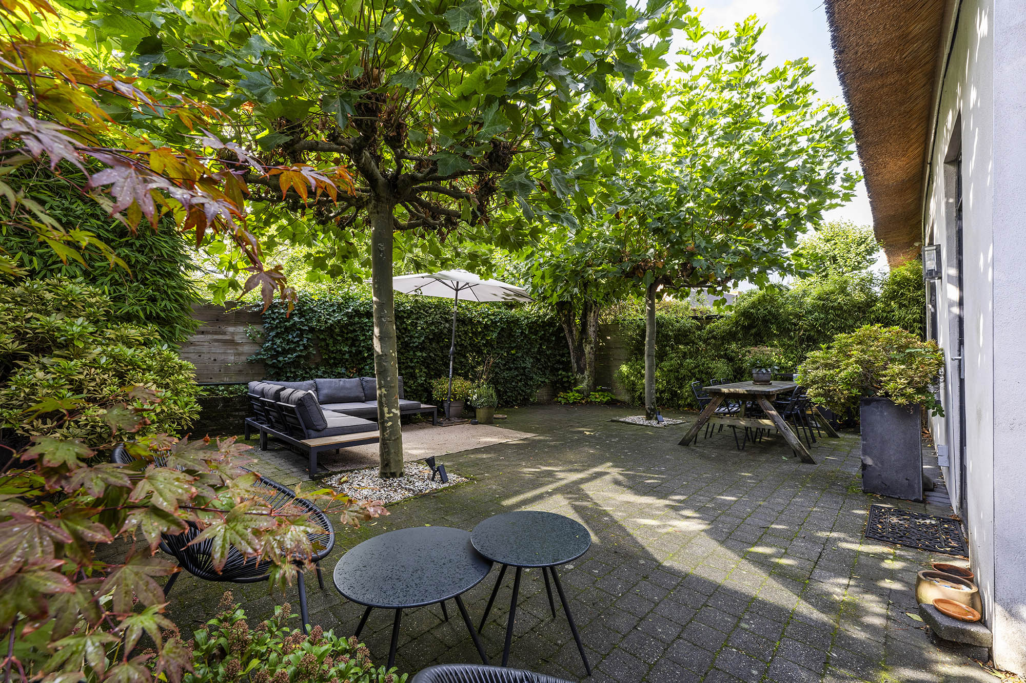 La vivienda familiar en Laren se encuentra discretamente situada detrás de la fachada de una casa de campo con tejado de paja, revelándose solo a través de un modesto sendero de grava. Este entorno apartado ofrece un equilibrio entre privacidad y comodidad, con amplio aparcamiento en la propiedad y acceso inmediato al centro del pueblo. Desde el primer paso al interior, se percibe una sensación de amplitud poco habitual en una ubicación como esta. El salón, que abarca todo el ancho de la casa, se inunda de luz natural gracias a las puertas francesas, generando una conexión armoniosa con el soleado jardín sombreado por plátanos maduros. Una chimenea define el ambiente, mientras que un rincón destinado al trabajo potencia tanto la funcionalidad como la comodidad. La moderna y bien equipada cocina con comedor y la sala de televisión independiente facilitan la vida diaria con total comodidad. En la planta superior, tres dormitorios están cuidadosamente distribuidos, incluyendo una habitación adaptada como lavandería, junto a un baño elegante con bañera, lavabo y aseo. Una escalera fija conduce a la planta superior, donde la suite principal dispone de armarios a medida y baño privado, constituyendo un refugio exclusivo. La flexibilidad es el pilar de esta propiedad: su amplio diseño permite opciones de dormitorio en la planta baja, haciéndola apta para todas las generaciones. La casa cuenta con 157 m² de superficie habitable en una parcela de 310 m², ventilación natural, aislamiento en tejado y suelos, acristalamiento doble parcial y confort con certificación energética clase C. Todas las comodidades del pueblo están a su alcance, mientras que los bosques y el campo abierto están a un corto paseo en bicicleta. Para quienes buscan una residencia versátil y acogedora en el corazón de Laren, este hogar familiar ofrece discreción y lujo sosegado.