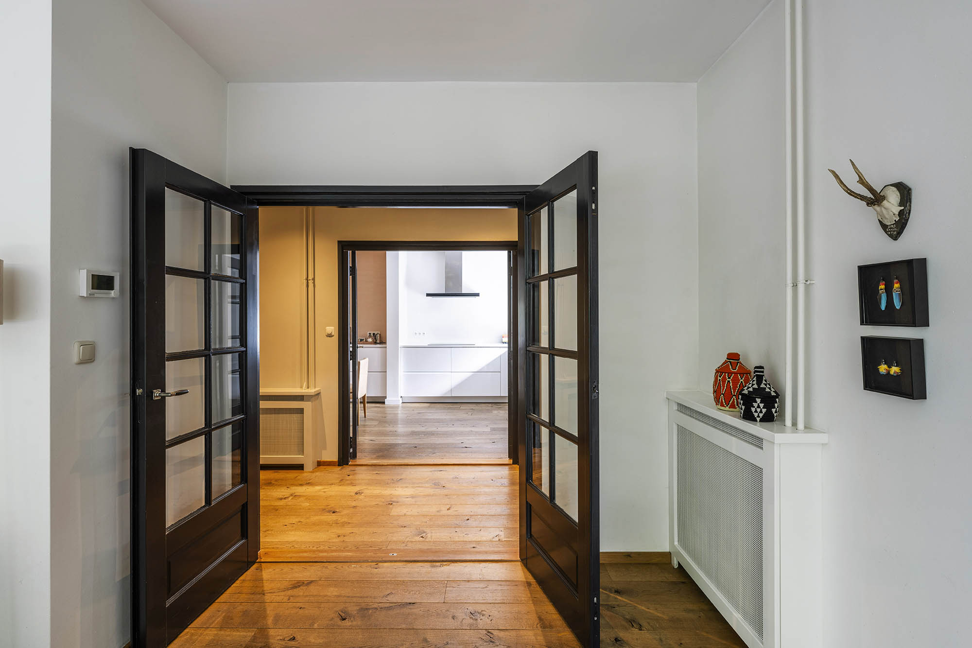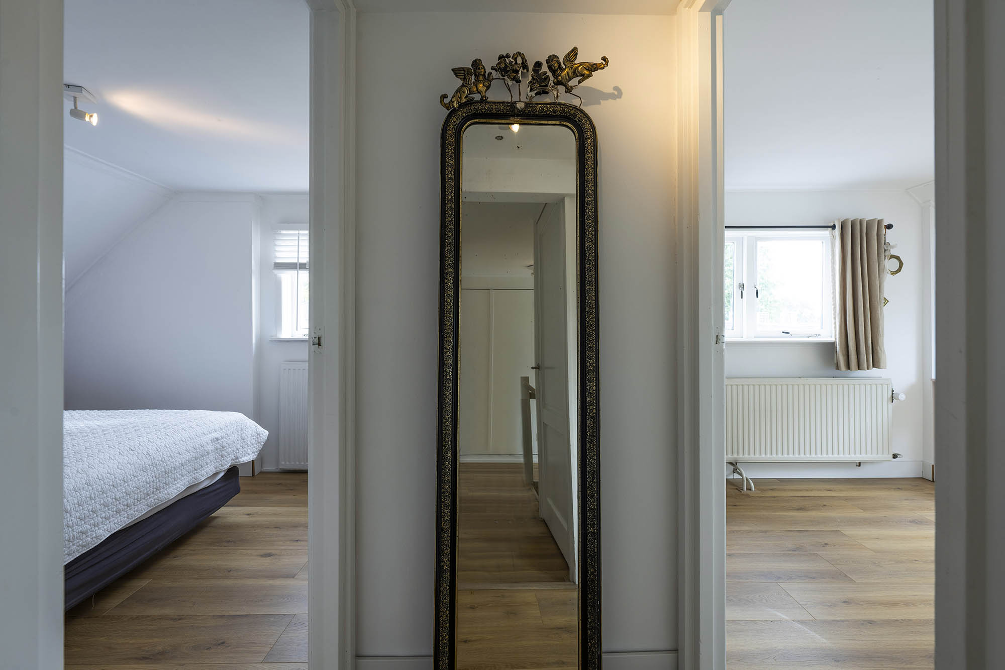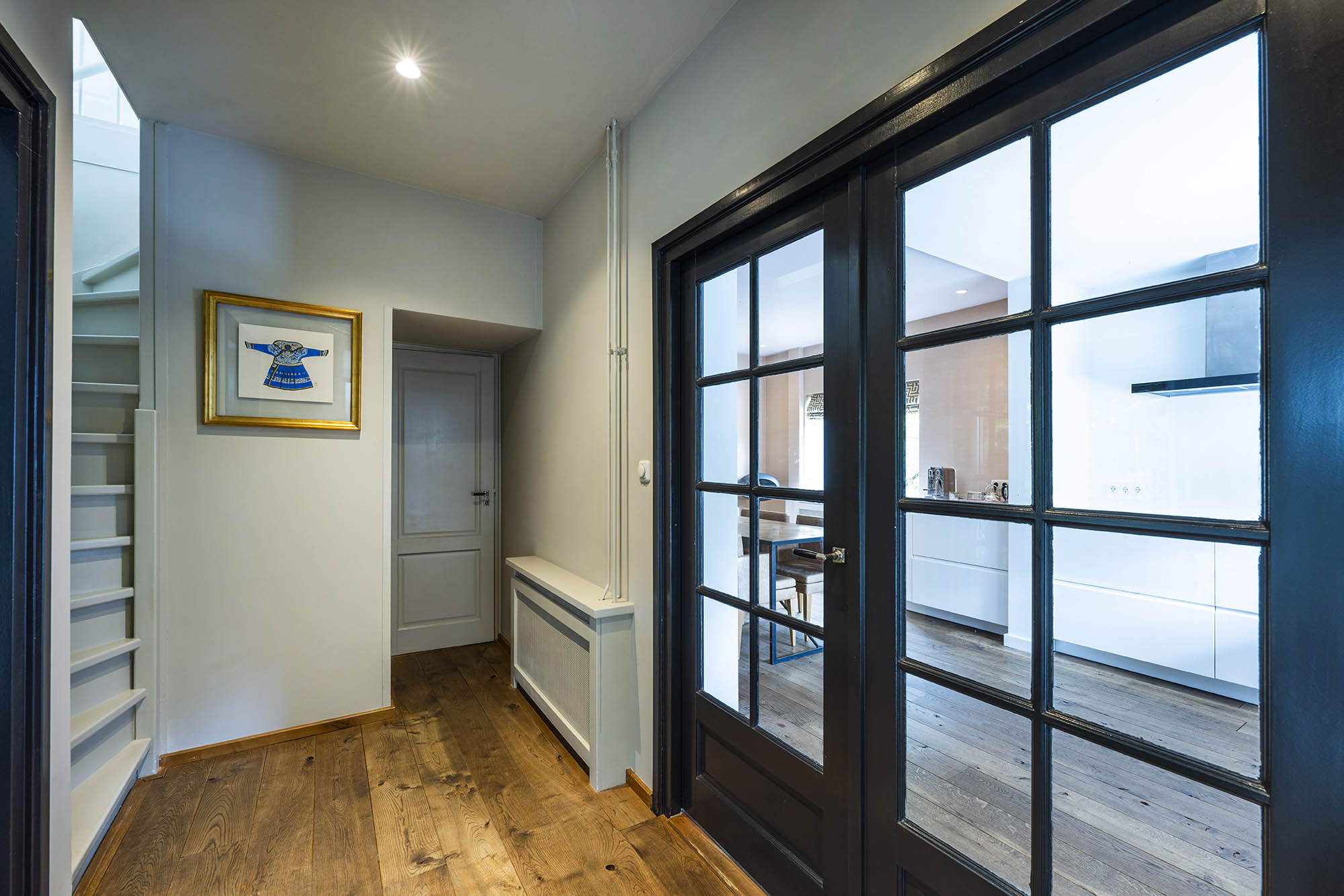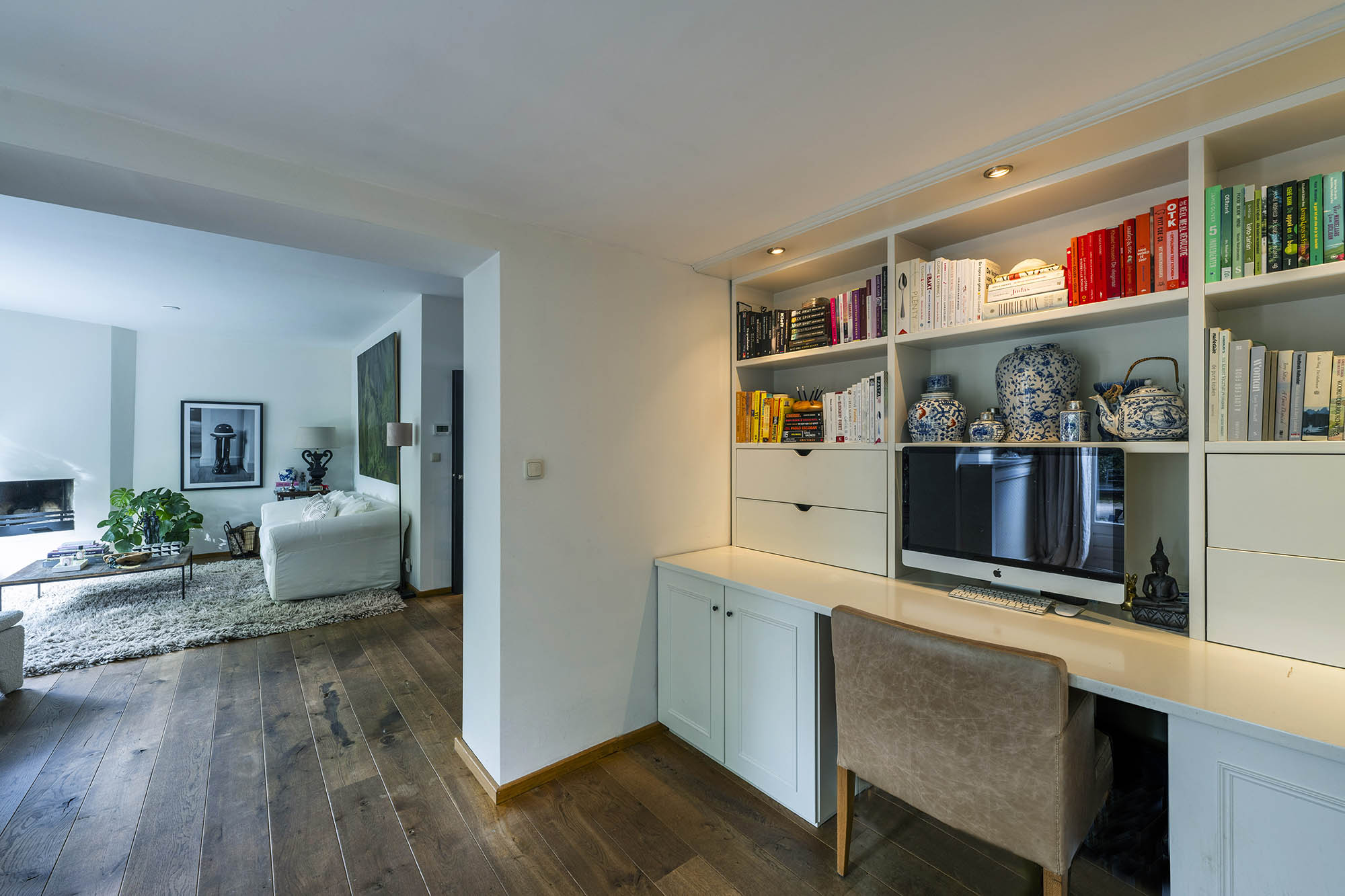 La vivienda familiar en Laren se encuentra discretamente situada detrás de la fachada de una casa de campo con tejado de paja, revelándose solo a través de un modesto sendero de grava. Este entorno apartado ofrece un equilibrio entre privacidad y comodidad, con amplio aparcamiento en la propiedad y acceso inmediato al centro del pueblo. Desde el primer paso al interior, se percibe una sensación de amplitud poco habitual en una ubicación como esta. El salón, que abarca todo el ancho de la casa, se inunda de luz natural gracias a las puertas francesas, generando una conexión armoniosa con el soleado jardín sombreado por plátanos maduros. Una chimenea define el ambiente, mientras que un rincón destinado al trabajo potencia tanto la funcionalidad como la comodidad. La moderna y bien equipada cocina con comedor y la sala de televisión independiente facilitan la vida diaria con total comodidad. En la planta superior, tres dormitorios están cuidadosamente distribuidos, incluyendo una habitación adaptada como lavandería, junto a un baño elegante con bañera, lavabo y aseo. Una escalera fija conduce a la planta superior, donde la suite principal dispone de armarios a medida y baño privado, constituyendo un refugio exclusivo. La flexibilidad es el pilar de esta propiedad: su amplio diseño permite opciones de dormitorio en la planta baja, haciéndola apta para todas las generaciones. La casa cuenta con 157 m² de superficie habitable en una parcela de 310 m², ventilación natural, aislamiento en tejado y suelos, acristalamiento doble parcial y confort con certificación energética clase C. Todas las comodidades del pueblo están a su alcance, mientras que los bosques y el campo abierto están a un corto paseo en bicicleta. Para quienes buscan una residencia versátil y acogedora en el corazón de Laren, este hogar familiar ofrece discreción y lujo sosegado.