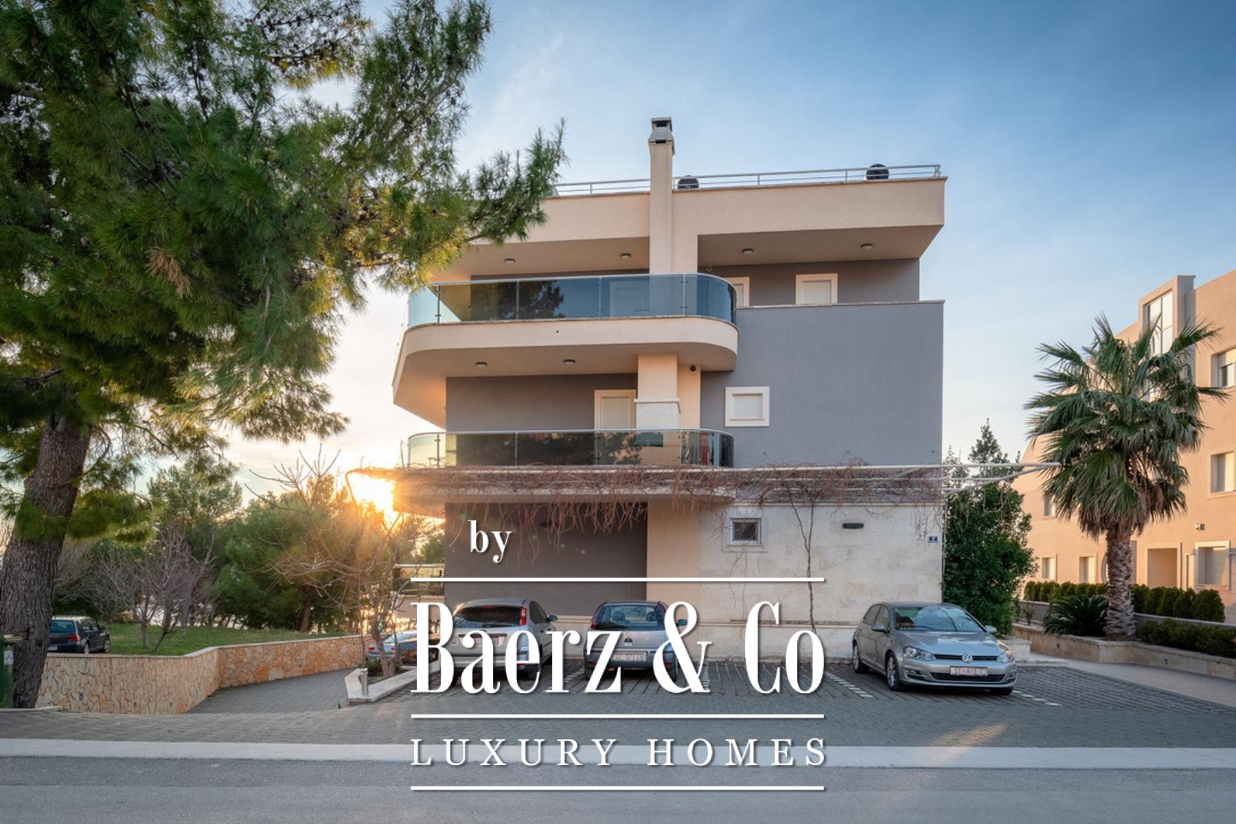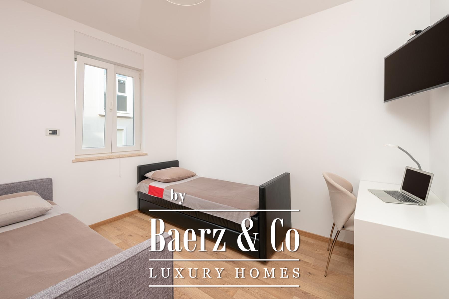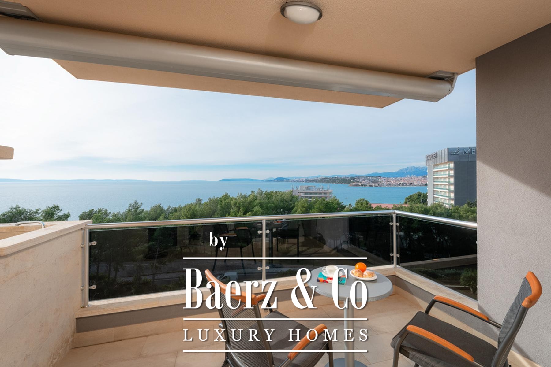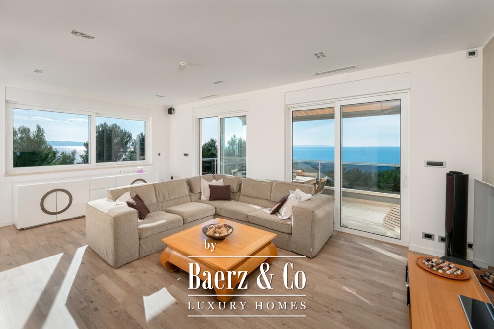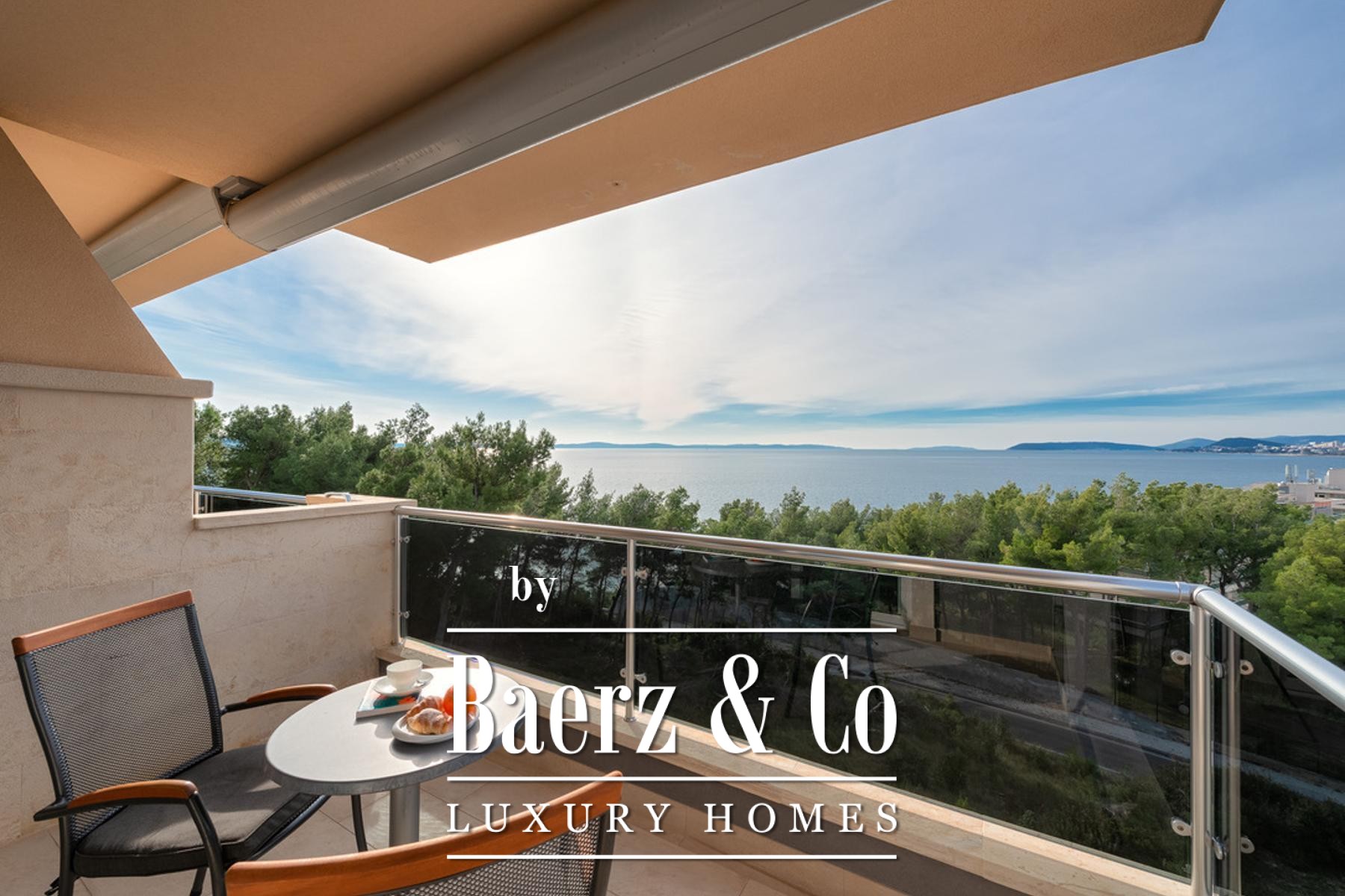 Tres terrazas, con un total de 18,38 m², enmarcan vistas panorámicas al Adriático, protegidas y permanentes. Las zonas de estar se bañan en luz natural, realzadas por amplios ventanales y una orientación óptima. Un espacio de trabajo independiente alberga las instalaciones de lavandería y un vestidor separado optimiza la organización. Todo el apartamento cuenta con un sistema inteligente que integra calefacción por suelo radiante, aire acondicionado, recuperación de aire, detectores de humo y alarma, sistema central de aspiración, paneles solares para agua caliente, persianas y toldos eléctricos, y electrodomésticos de alta gama. Una chimenea tradicional de ladrillo en la terraza invita a disfrutar del aire libre dálmata.