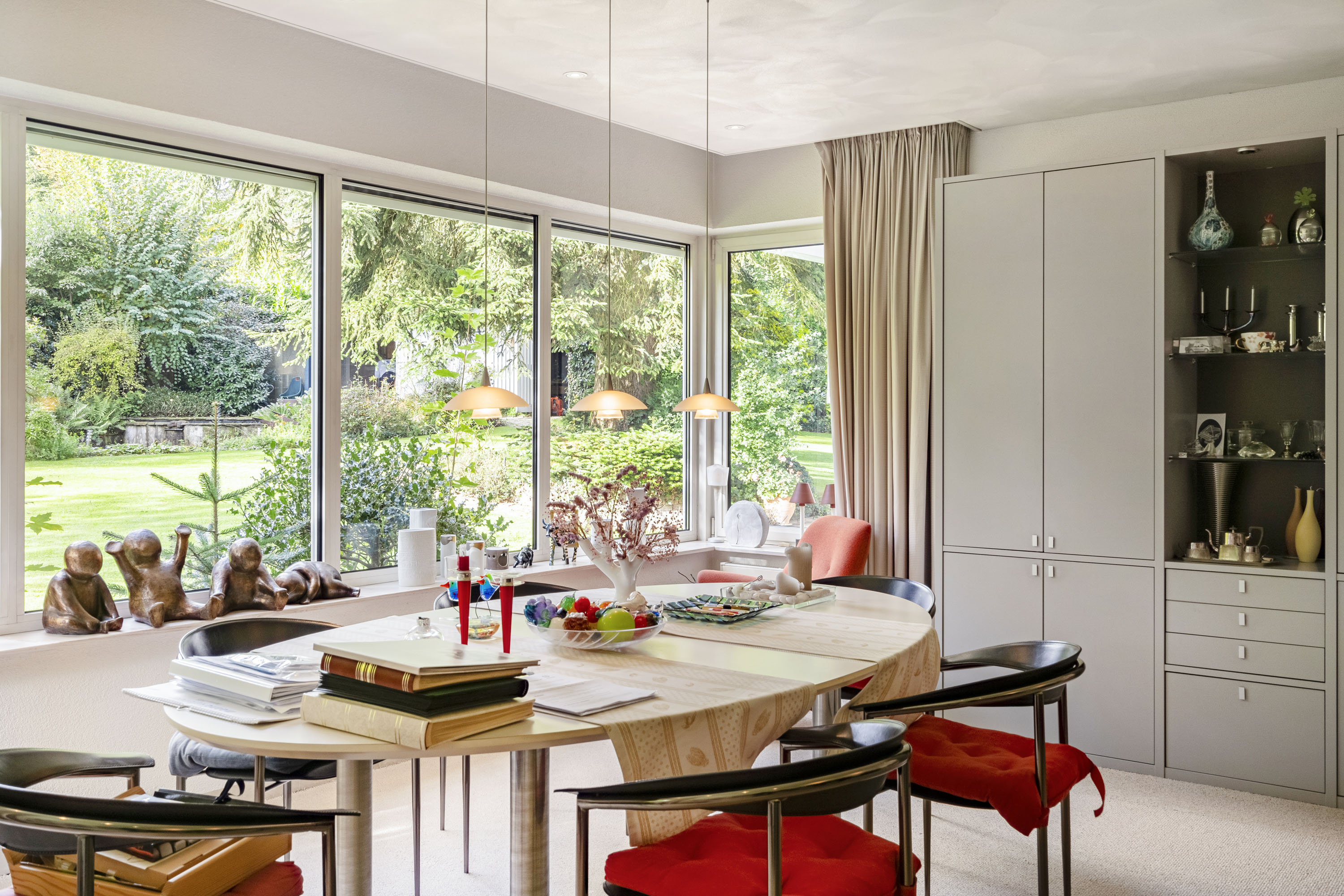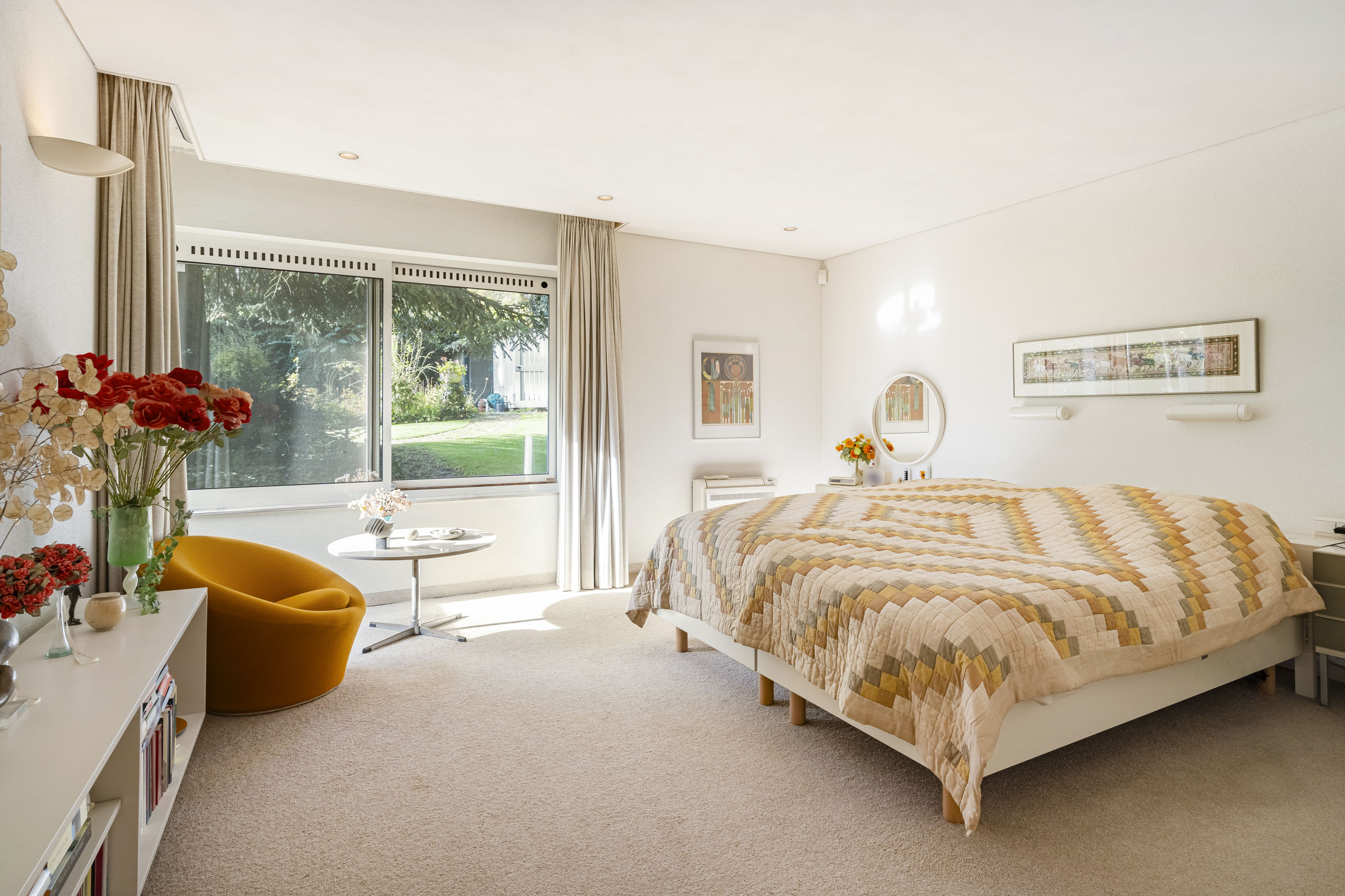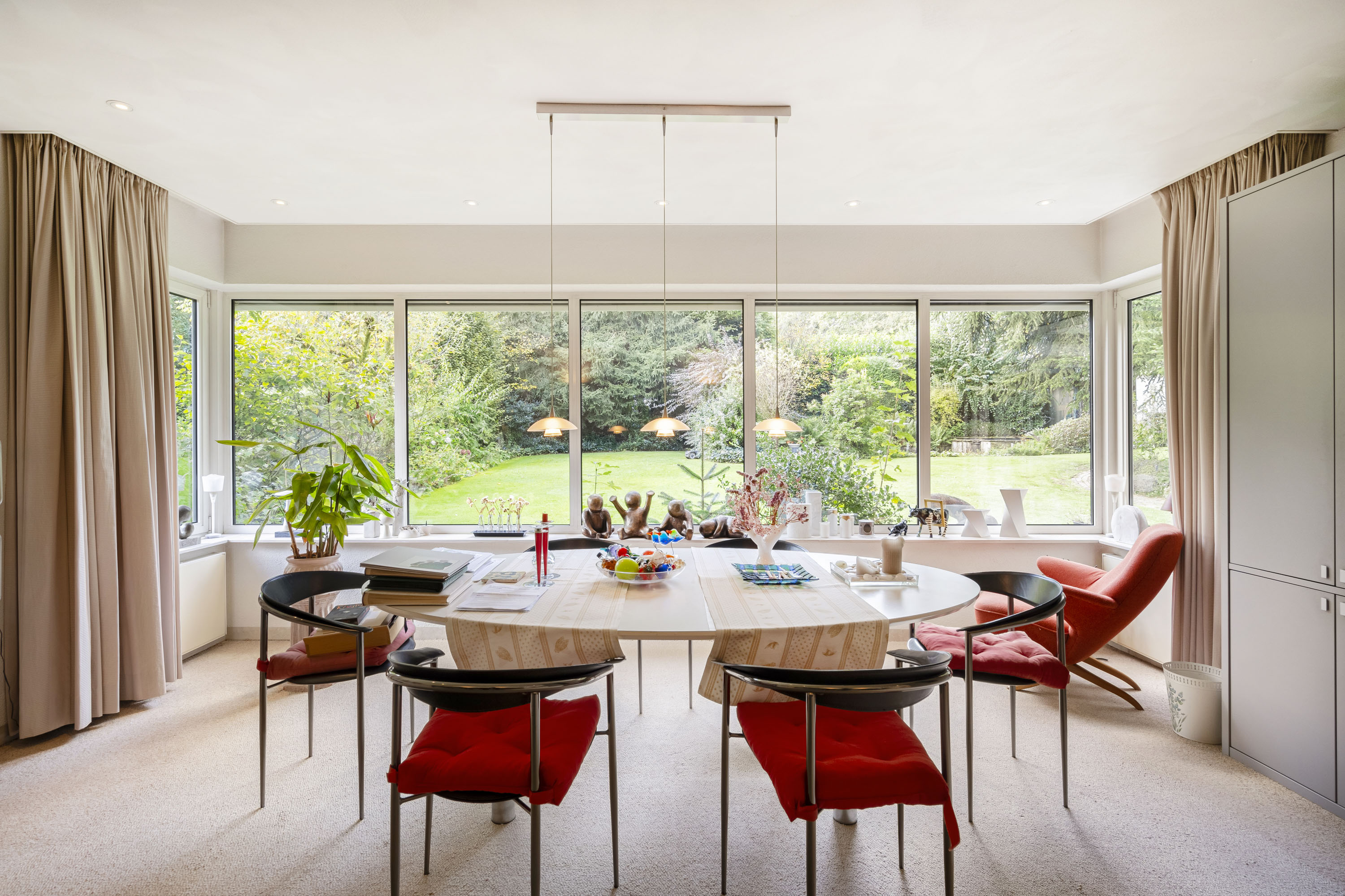 La Villa Velp con piscina cubierta se ubica junto a la reserva natural Posbank, ofreciendo 350 m² de espacio habitable y una privacidad absoluta en un jardín maduro y paisajístico de 1.911 m². Esta villa de cuatro dormitorios fusiona confort y arquitectura, aprovechando la luz natural y un diseño moderno, fluido y elegante. El amplio salón se articula en torno a fachadas acristaladas que se abren al jardín en suave pendiente, creando continuidad entre el interior y el exterior.