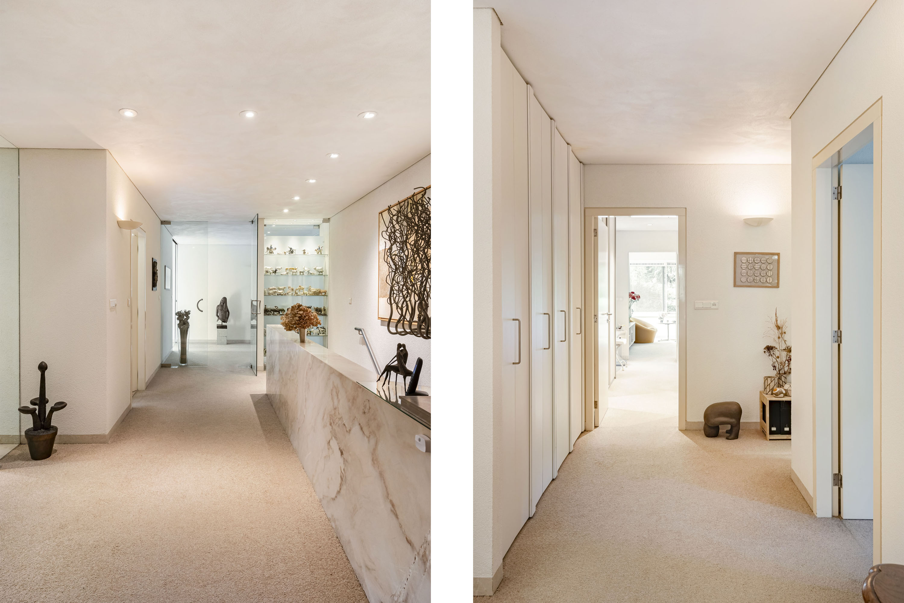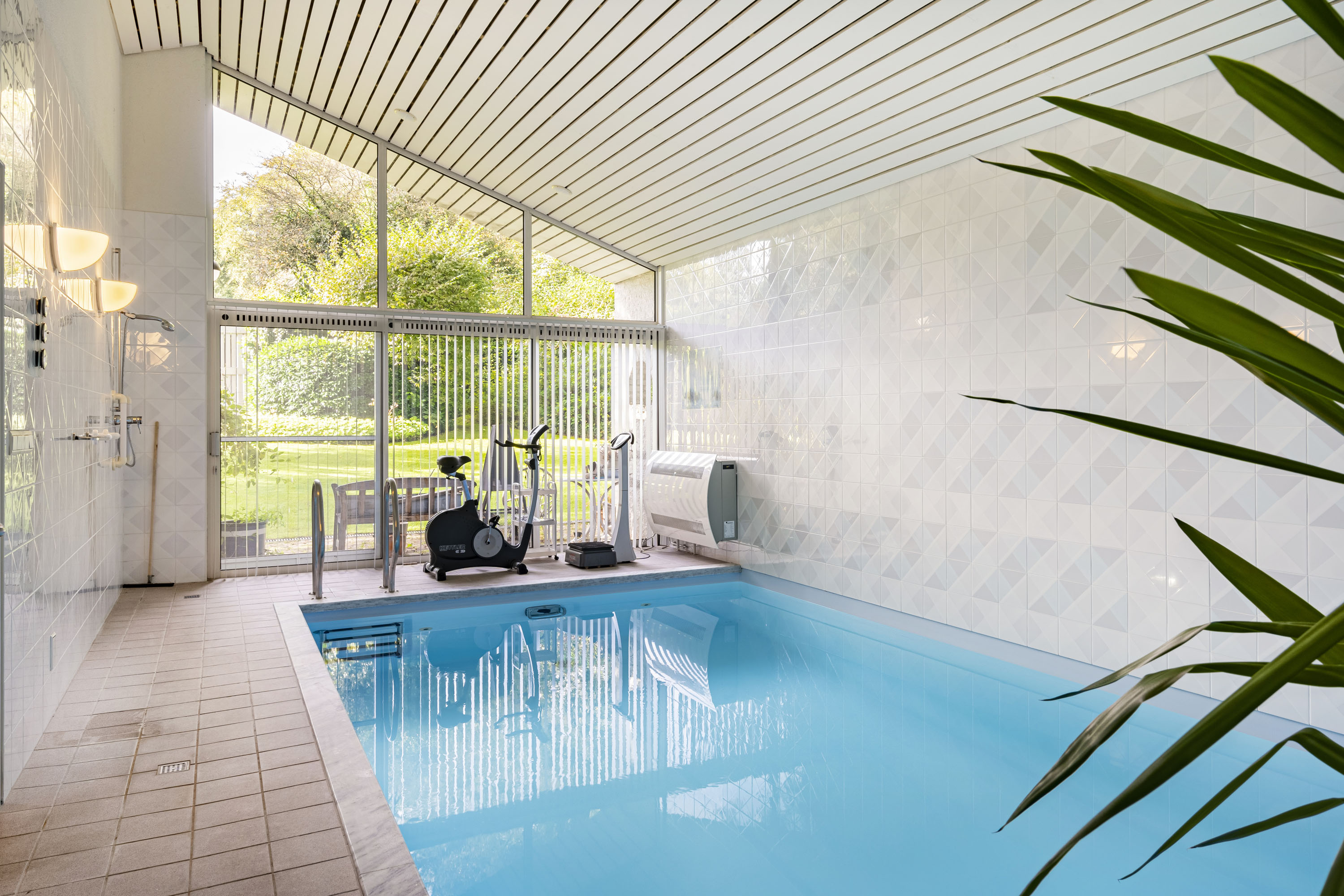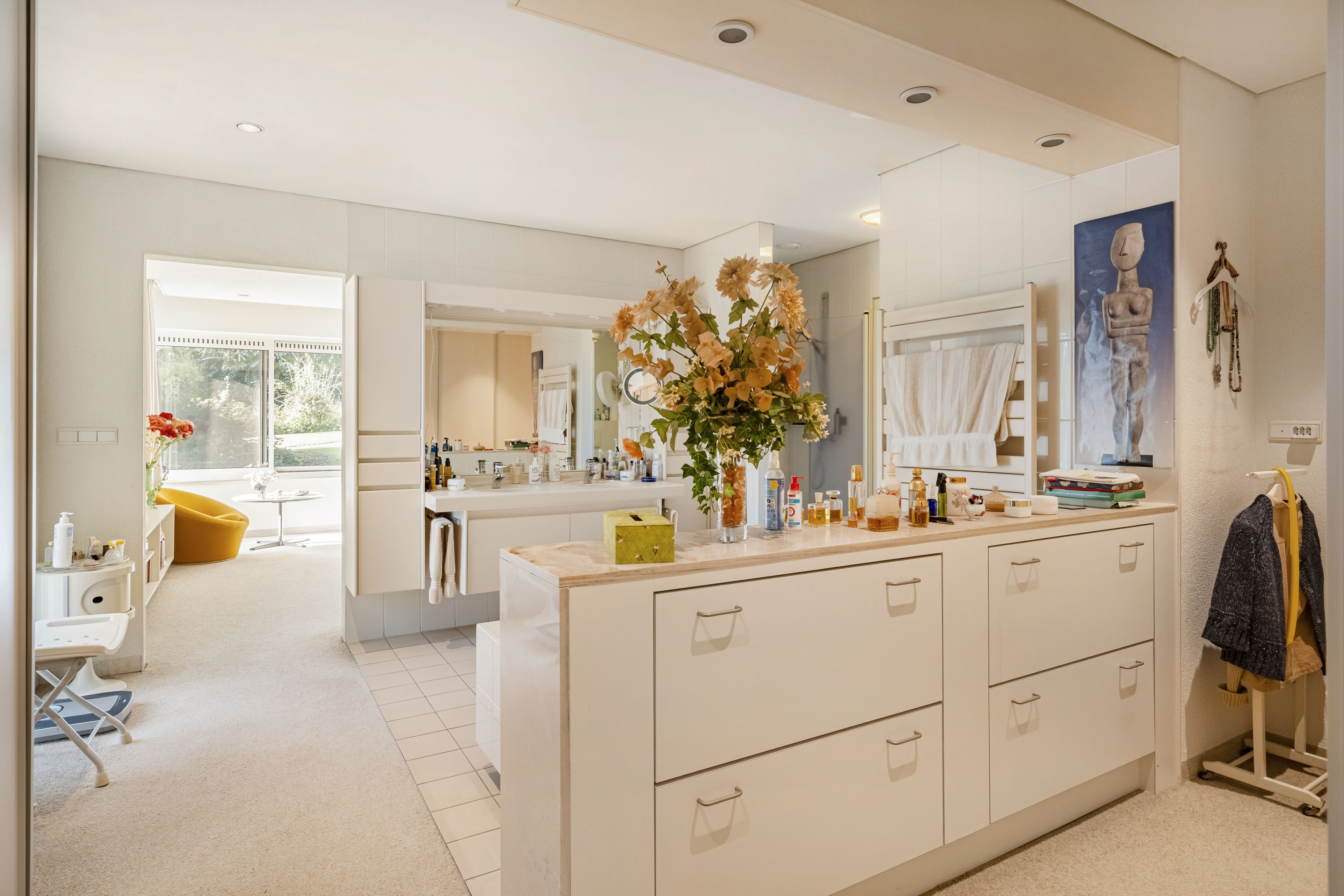 La distribución inteligente incluye un gran salón, comedor orientado a las vistas del jardín, despacho y cocina abierta que se conecta con el lavadero, provisto de un discretísimo montaplatos. Elegantes puertas correderas equilibran apertura y privacidad. La piscina interior, con chorro a contracorriente y puertas correderas al jardín, representa un verdadero centro de bienestar en casa. La suite principal cuenta con aire acondicionado y acceso directo al jardín. Los dos baños disponen de bañera y ducha.