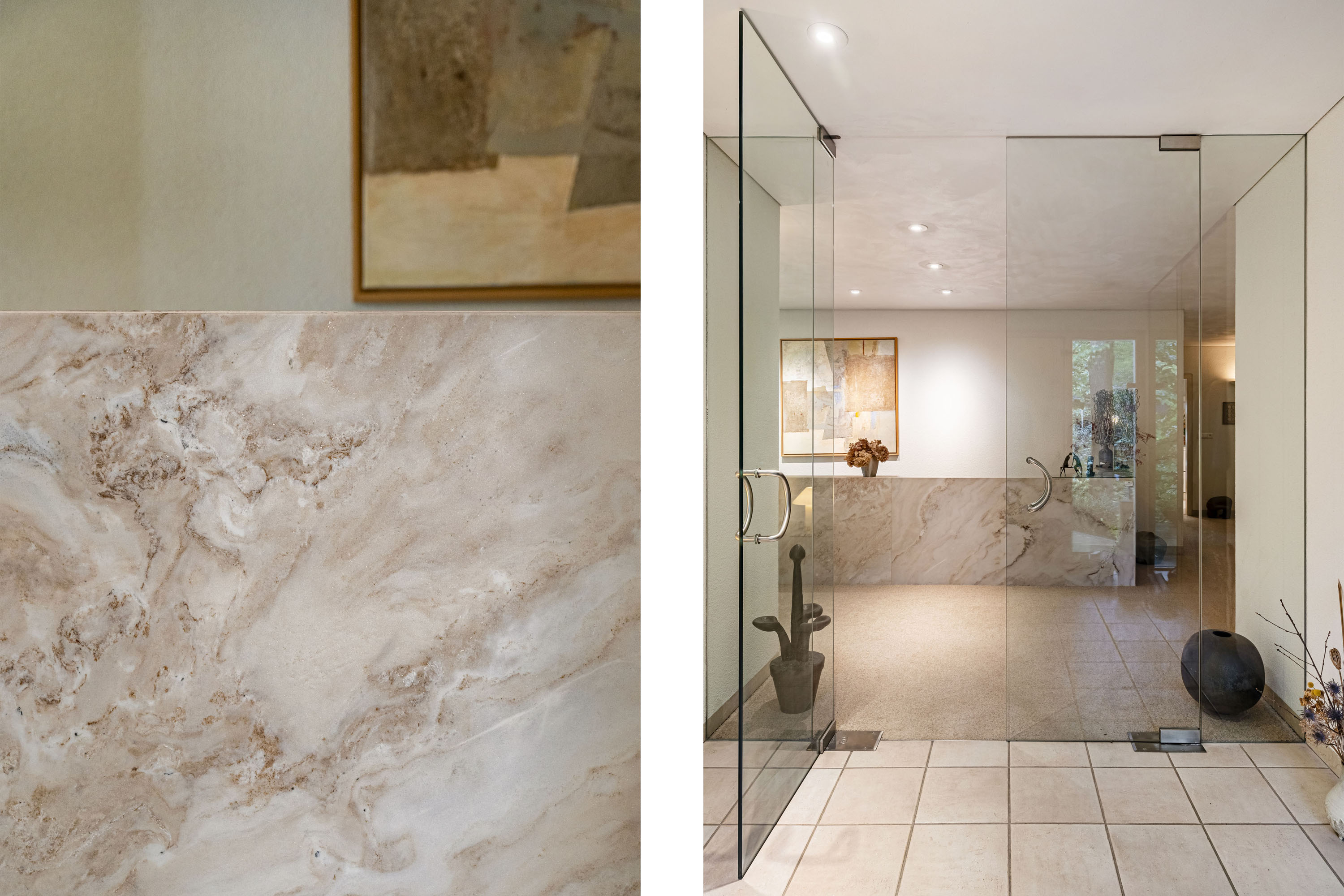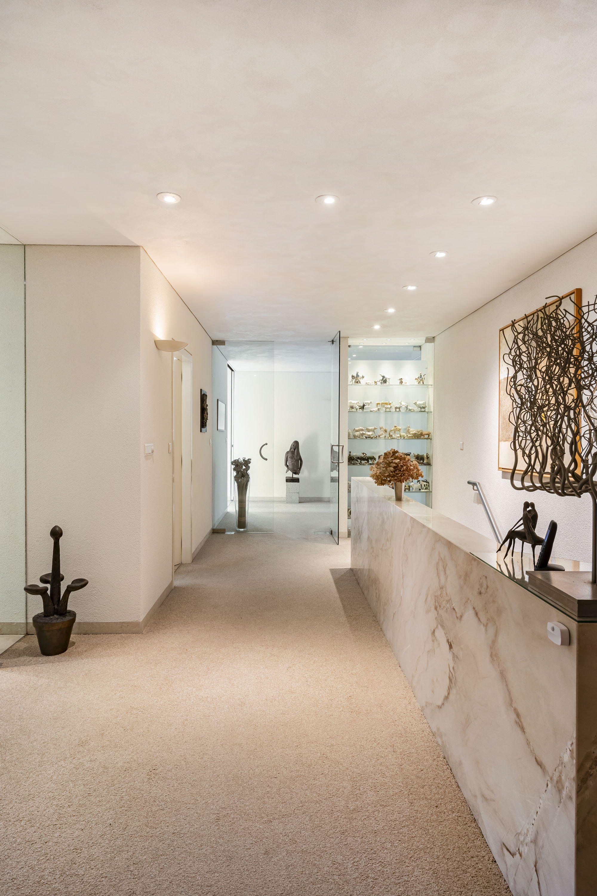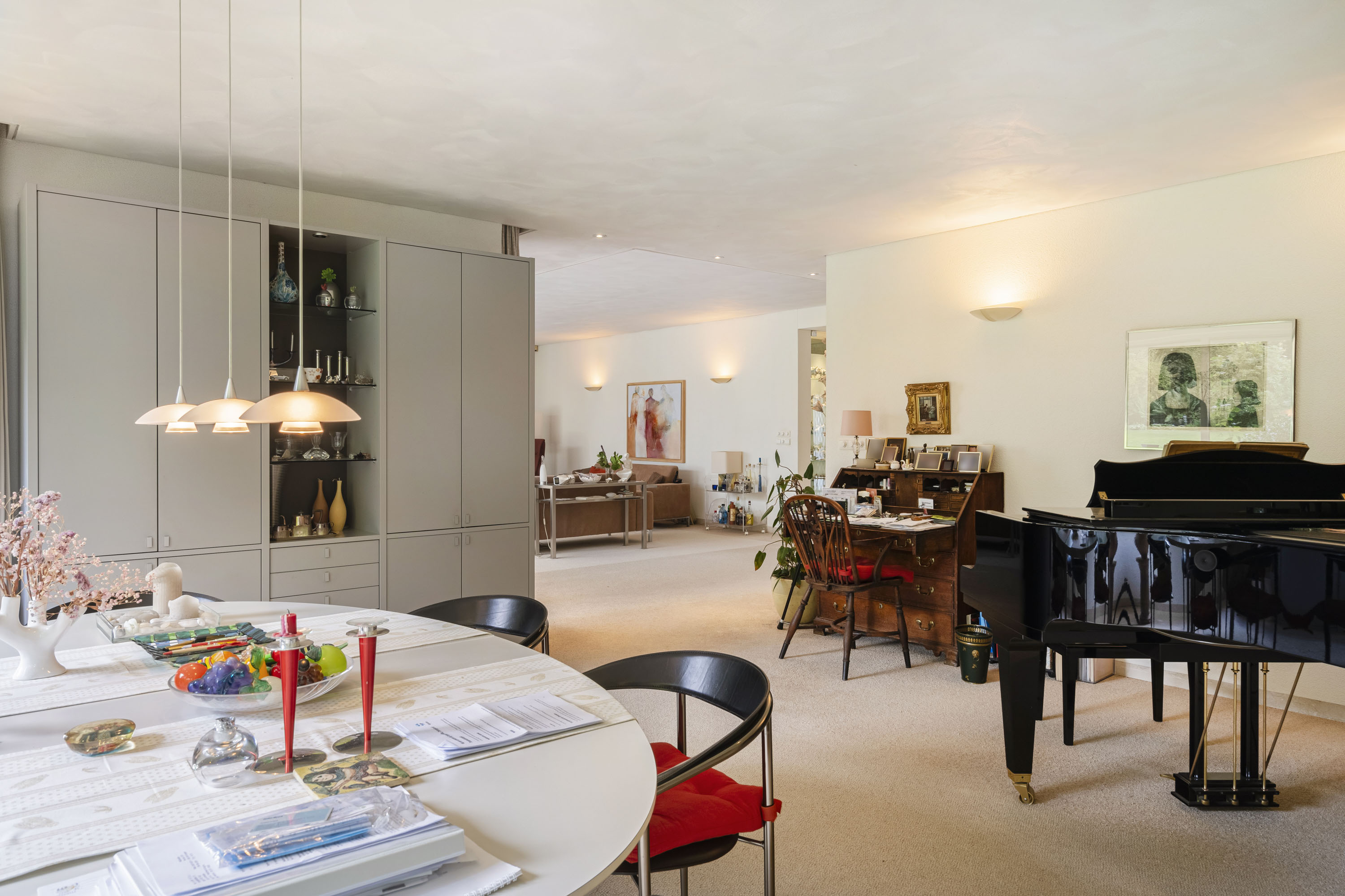 La distribución inteligente incluye un gran salón, comedor orientado a las vistas del jardín, despacho y cocina abierta que se conecta con el lavadero, provisto de un discretísimo montaplatos. Elegantes puertas correderas equilibran apertura y privacidad. La piscina interior, con chorro a contracorriente y puertas correderas al jardín, representa un verdadero centro de bienestar en casa. La suite principal cuenta con aire acondicionado y acceso directo al jardín. Los dos baños disponen de bañera y ducha.