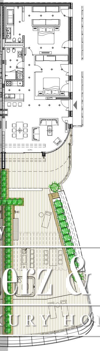 L’appartement Budva offre 286 m² d’espace de vie soigneusement agencé au sein d’un complexe de luxe réputé, à seulement 50 mètres de la mer Adriatique et de sa plage de sable fin. Sa configuration comprend un hall d’entrée accueillant, un spacieux séjour harmonieusement ouvert sur la cuisine et la salle à manger, deux chambres et deux salles de bains. Une vaste terrasse sur le toit encadre des vues imprenables sur la baie de Budva, la mer et les montagnes environnantes, invitant à la contemplation ou à des moments partagés.