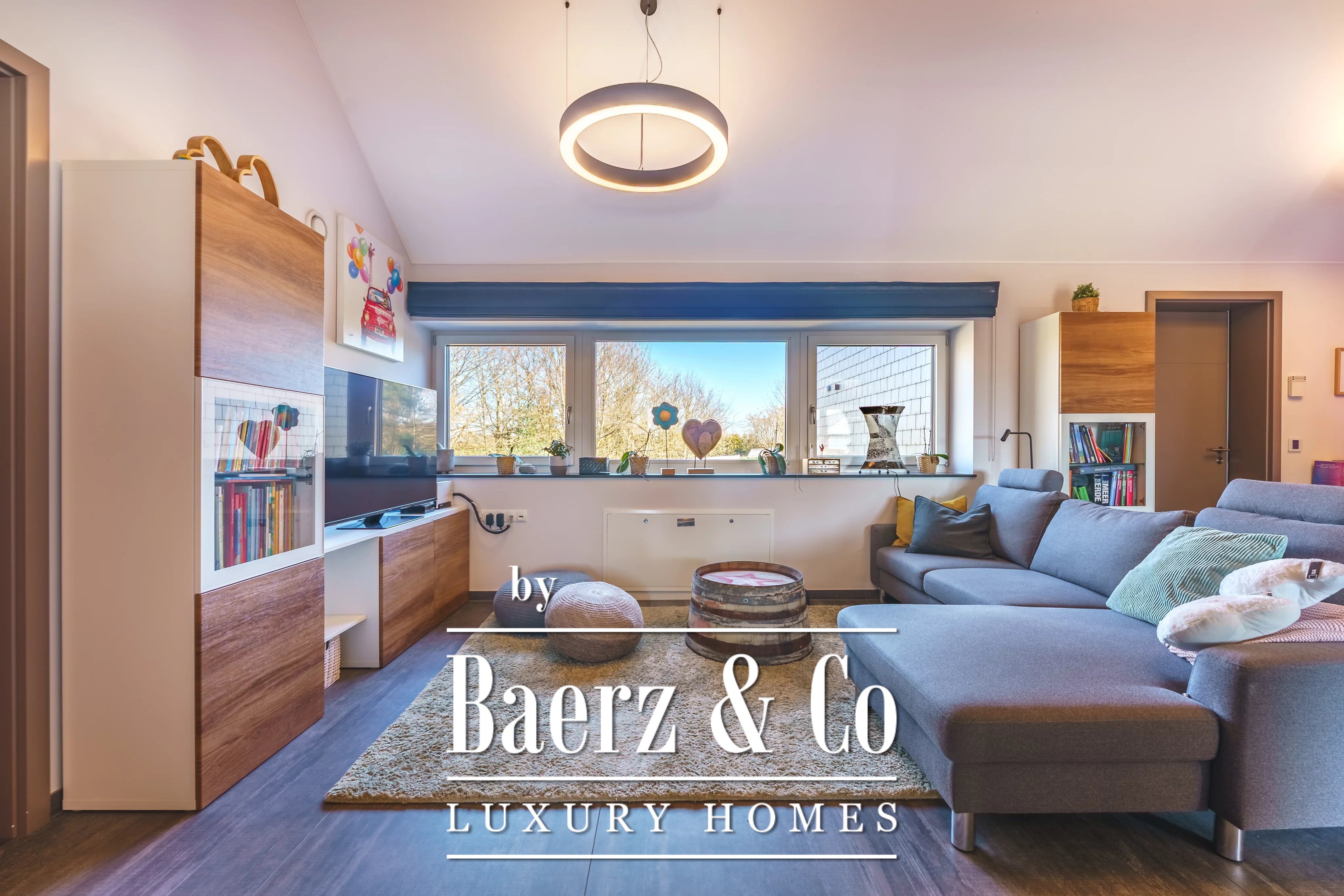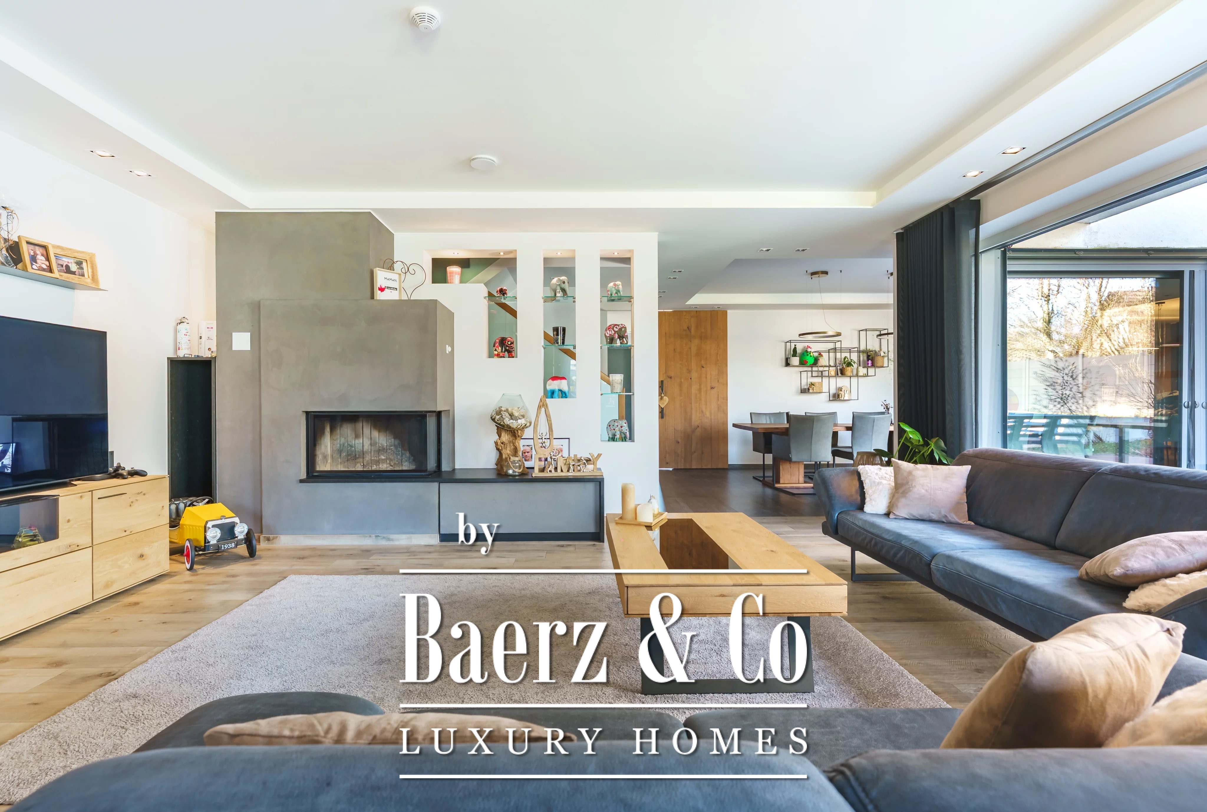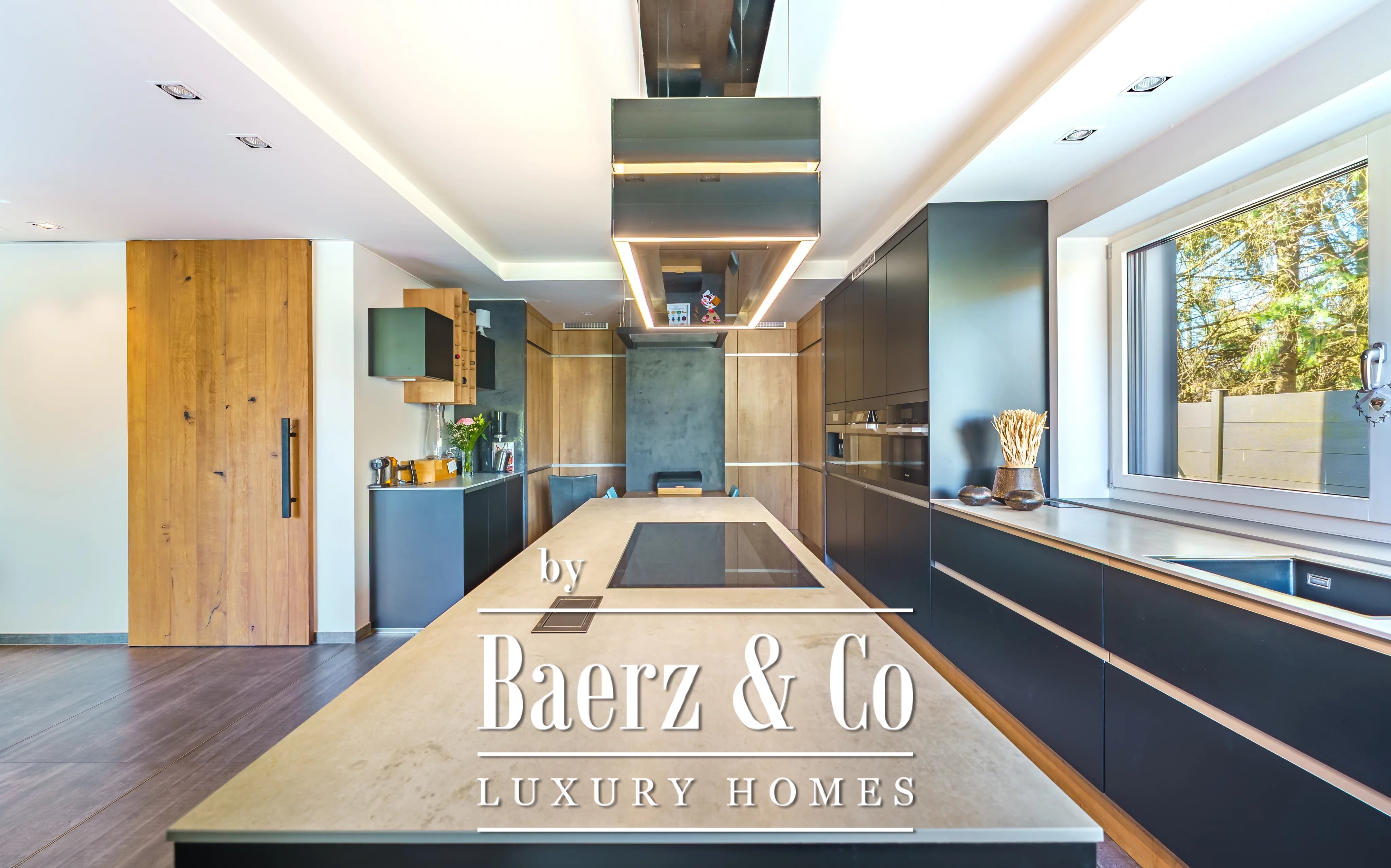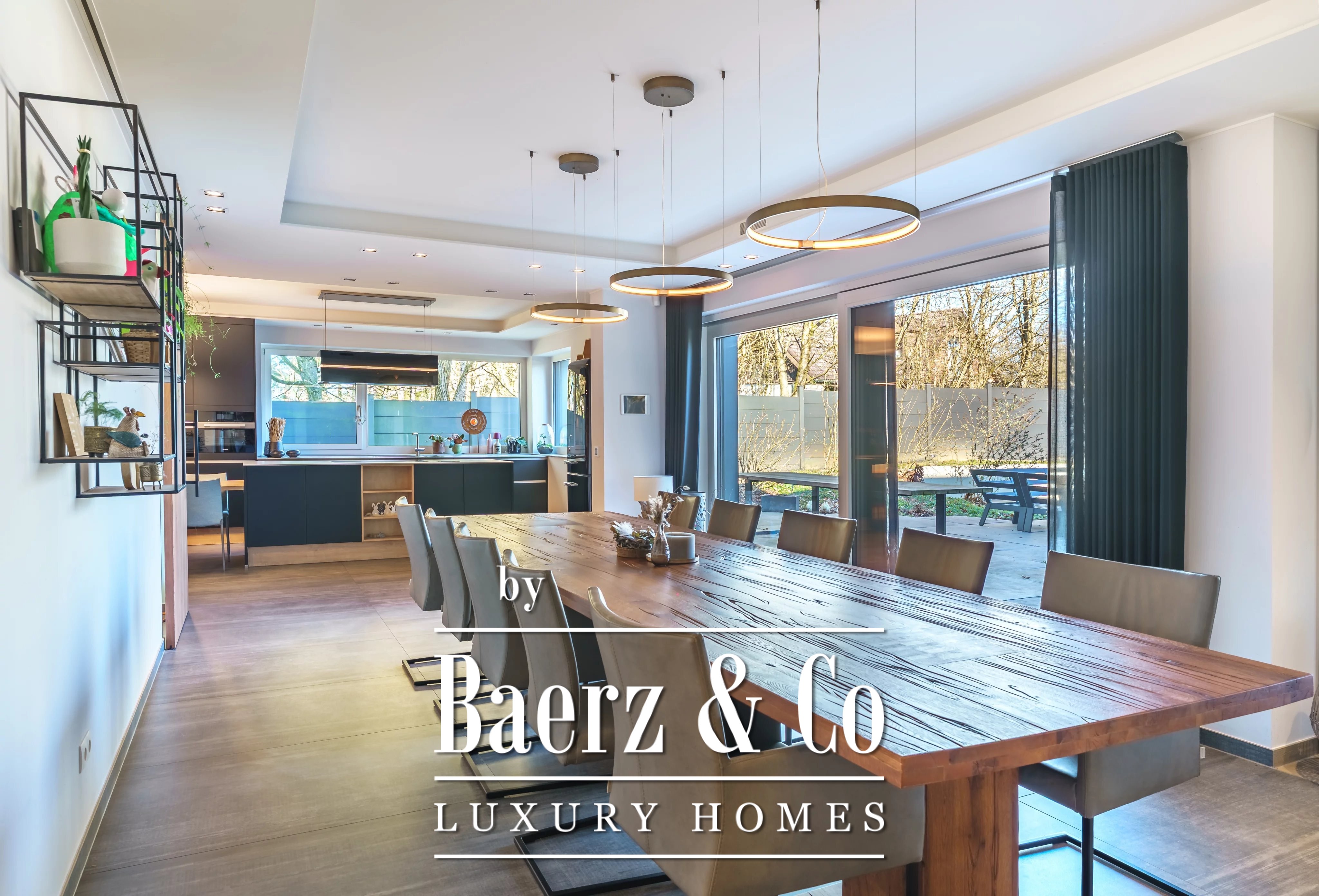 À l’étage, un salon supplémentaire offre un refuge privé pour les moments en famille. Cinq chambres et quatre salles de bains composent la maison, dont une suite parentale avec dressing, salle d’eau privative, et une chambre d’amis avec salle d’eau attenante. La buanderie se distingue par sa discrétion et son efficacité, facilitant le confort au quotidien.