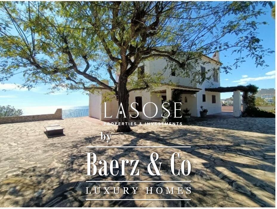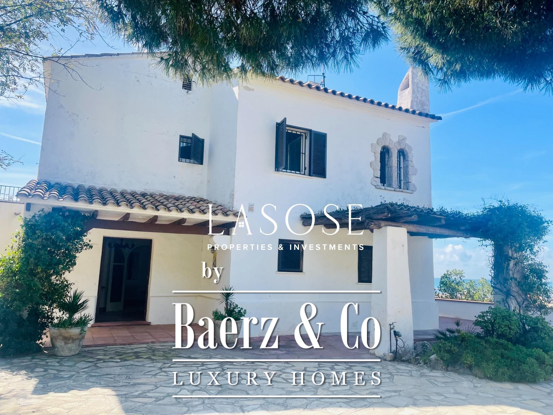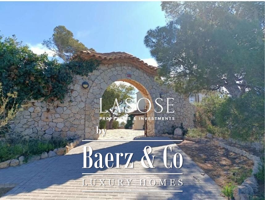 La Villa Sitges s’ancre sur les falaises d’Aiguadolc, offrant un point de vue inégalé sur les criques discrètes et l’immensité de la Méditerranée. Dès l’arrivée, la propriété accueille par une allée privative et un chemin pavé bordé de végétation mature, menant au portail principal et à un vaste jardin de 1 054 m², prêt à être sublimé.