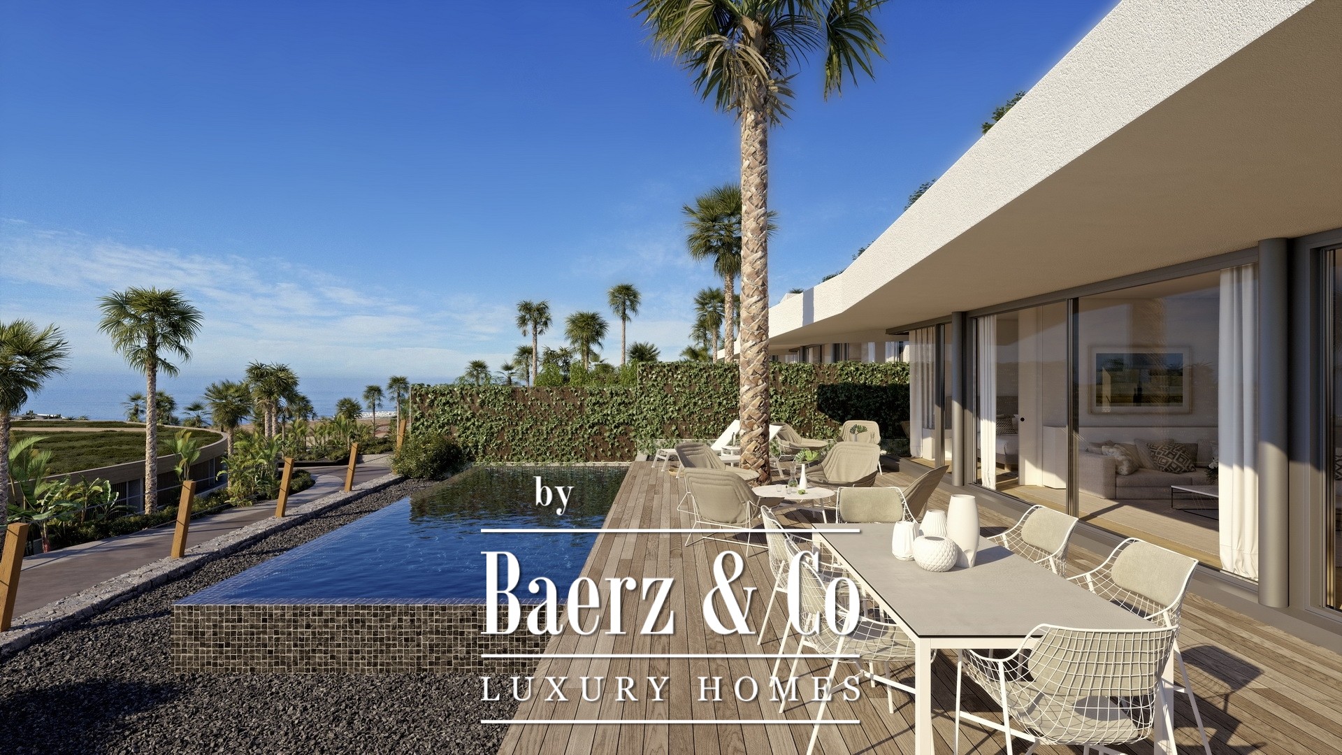 De villa is volledig gemeubileerd, inclusief tuinmeubilair, en de ingebouwde kasten en en-suite slaapkamers bieden maximale privacy en gemak voor uw familie en gasten. Elke woning biedt ook een overdekte of ondergrondse parkeergarage. Het heeft een tuin van 291 m2. De grootte van het terras is 60 m2.