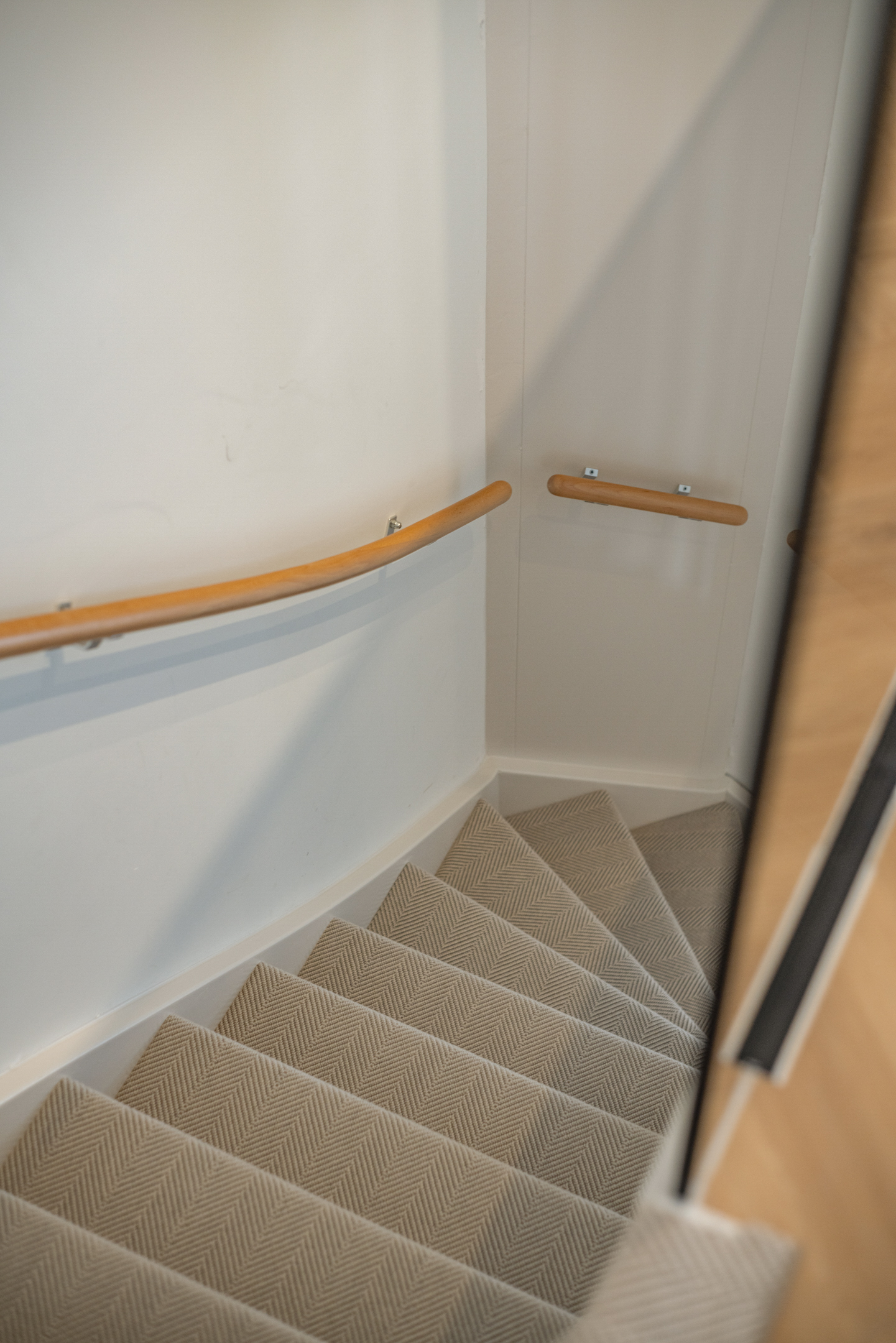 De vloer is ook op de eerste verdieping uitgevoerd in luxe PVC en de trapbekleding is speciaal ontworpen met extra demping voor optimaal comfort.