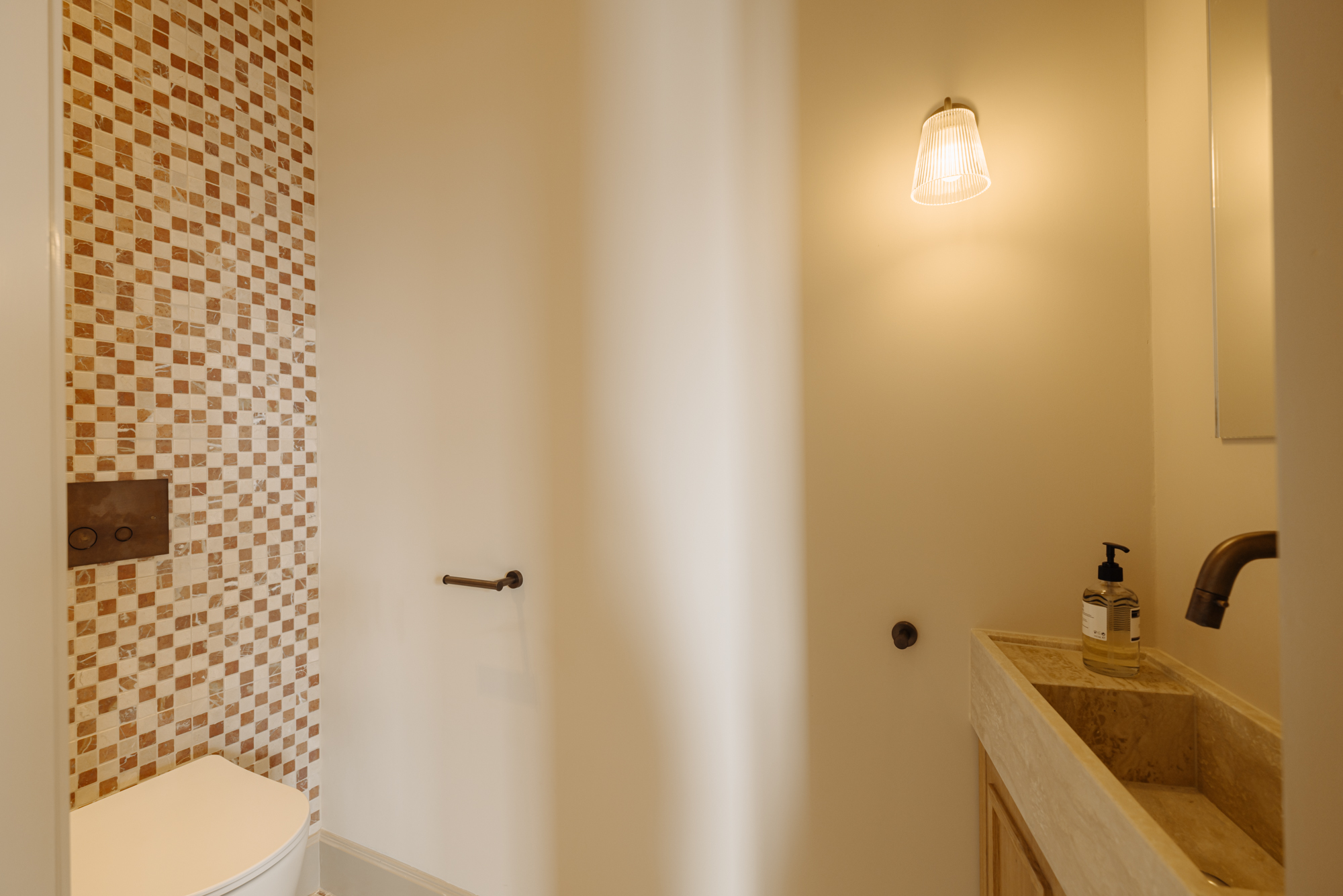 Het appartement is volledig gerenoveerd volgens de hoogste standaarden en voorzien van zeldzame, hoogwaardige materialen zoals natuursteen. De praktische indeling omvat een ruime woonkamer met plafonds van 3,44 meter hoog, een moderne open keuken met geïntegreerde apparatuur en een privé-slaapkamer met en-suite badkamer op de benedenverdieping. Grote ramen laten overvloedig daglicht binnenstromen, waardoor het zorgvuldig ontworpen interieur prachtig tot zijn recht komt en de historische omgeving extra wordt benadrukt. Op de bovenverdieping bevinden zich twee royale slaapkamers, waarvan één met toegang tot het balkon, een tweede luxe badkamer en een aparte wasruimte. Een separaat toilet op beide verdiepingen zorgt voor extra gemak. Het zuidwestelijk gelegen terras en balkon bieden een sereen uitzicht op de iconische bezienswaardigheden van de stad en creëren een harmonieuze verbinding tussen binnen- en buitenleven.