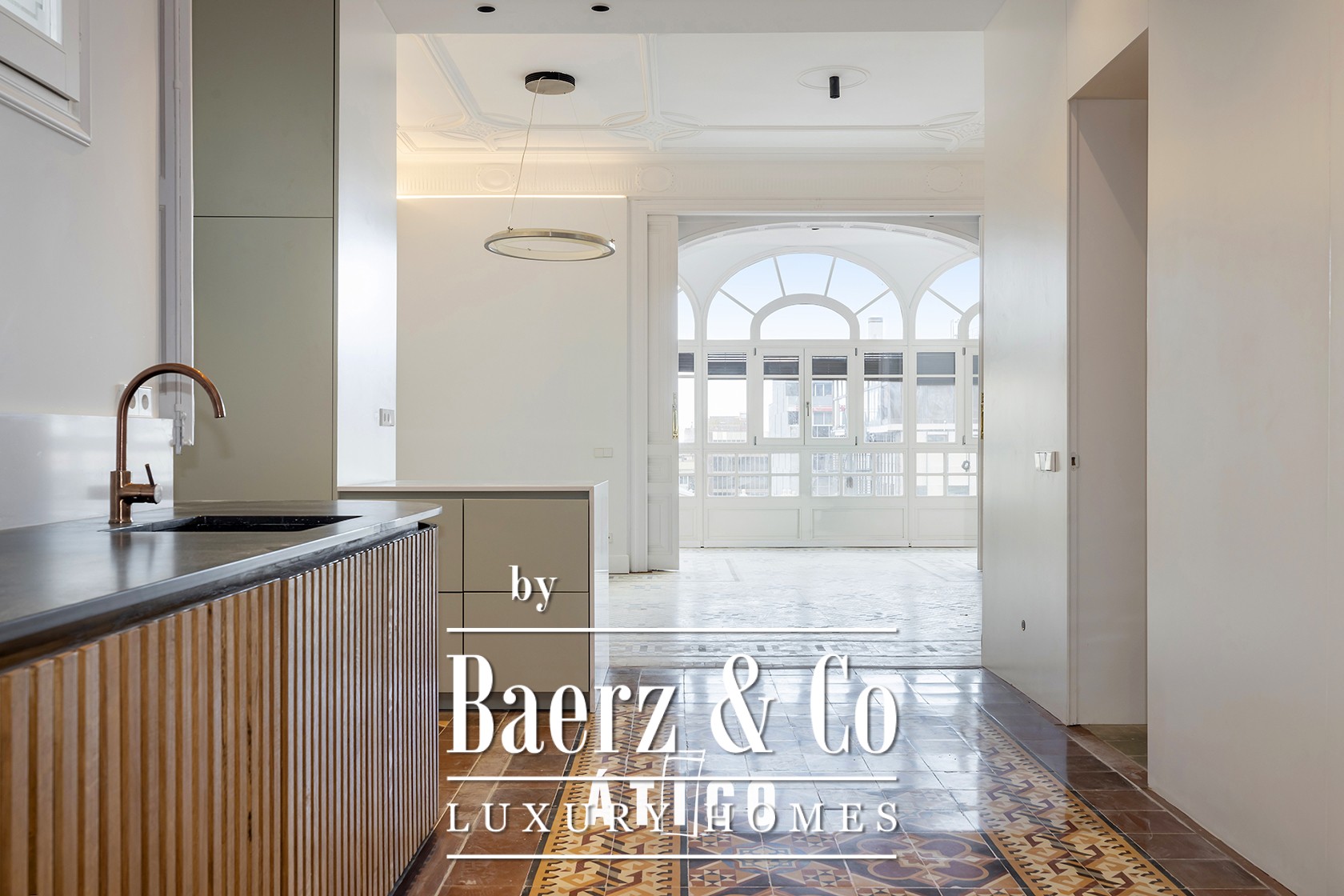 The apartment has been completely renovated, respecting its original character with details such as restored hydraulic floors and 3.5-meter-high ceiling moldings, which provide a feeling of spaciousness and elegance. Some areas have Noia flooring, which gives it an exclusive touch. The restored gallery and windows ensure an excellent entry of natural light throughout the day, making every space in the home warm and welcoming.
