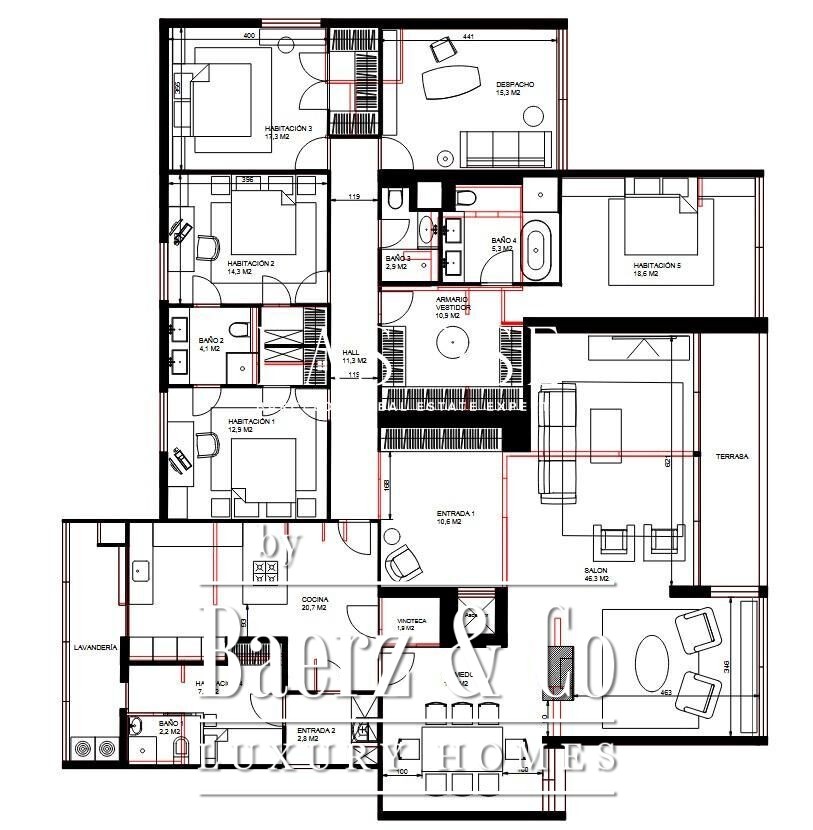 This exclusive property is located on the third floor with elevator, in the coveted area of Plaça dels Jardí de Tòquio (Pedralbes), combining signature design, spaciousness and natural light in every corner.. . In the process of comprehensive reform with an exclusive Japandi style project (fusion of Japanese minimalism and Scandinavian warmth), it will be delivered at the end of June 2025, with high quality finishes and attention to detail in every room.. . With 280m² built, this elegant home offers an optimal and functional distribution, ideal for large families or those looking for space and comfort without sacrificing design. All rooms are exterior, and the property has a three winds orientation, which guarantees sunlight and cross ventilation throughout the day.. Distribution and outstanding spaces:. . Main living room of 46 m² with direct exit to a private terrace, ideal to enjoy the green and pleasant views of the surroundings.. . Separate dining room of 16 m² and kitchen of 20 m², perfectly integrated as a day area.. . 6 exterior bedrooms, including a master suite with dressing room of 10.9 m².. . 4 complete bathrooms, all with first class materials.. . Office of 15 m² ideal