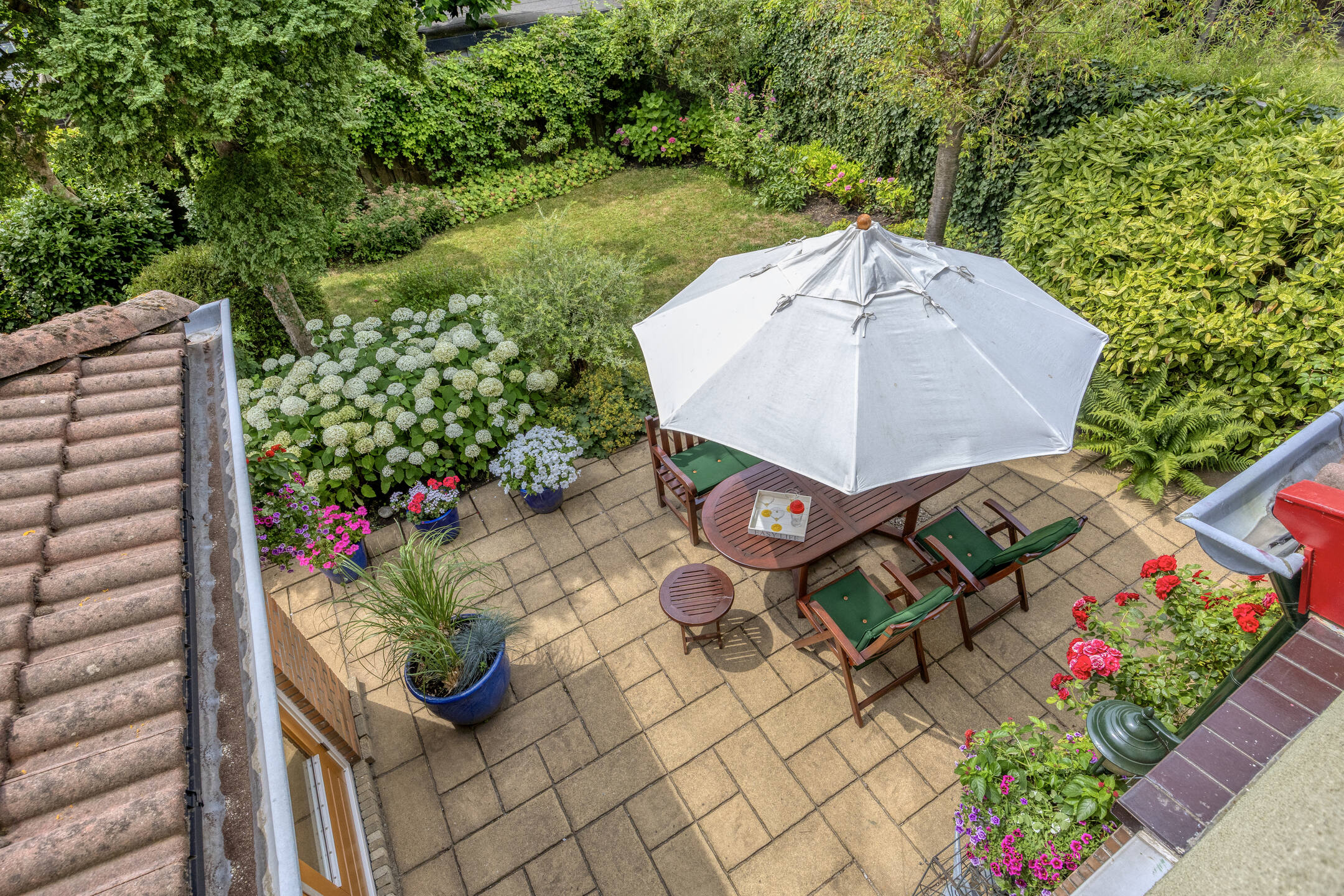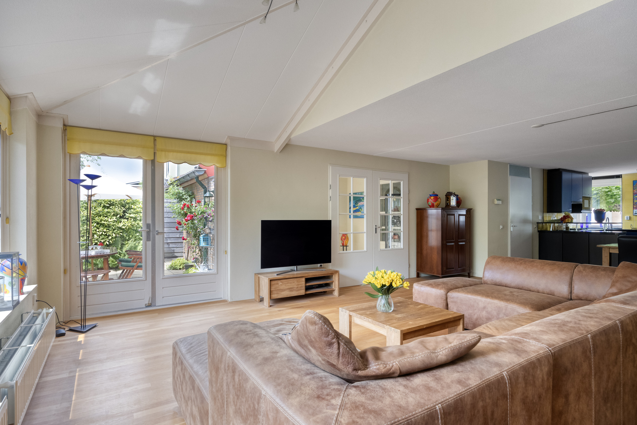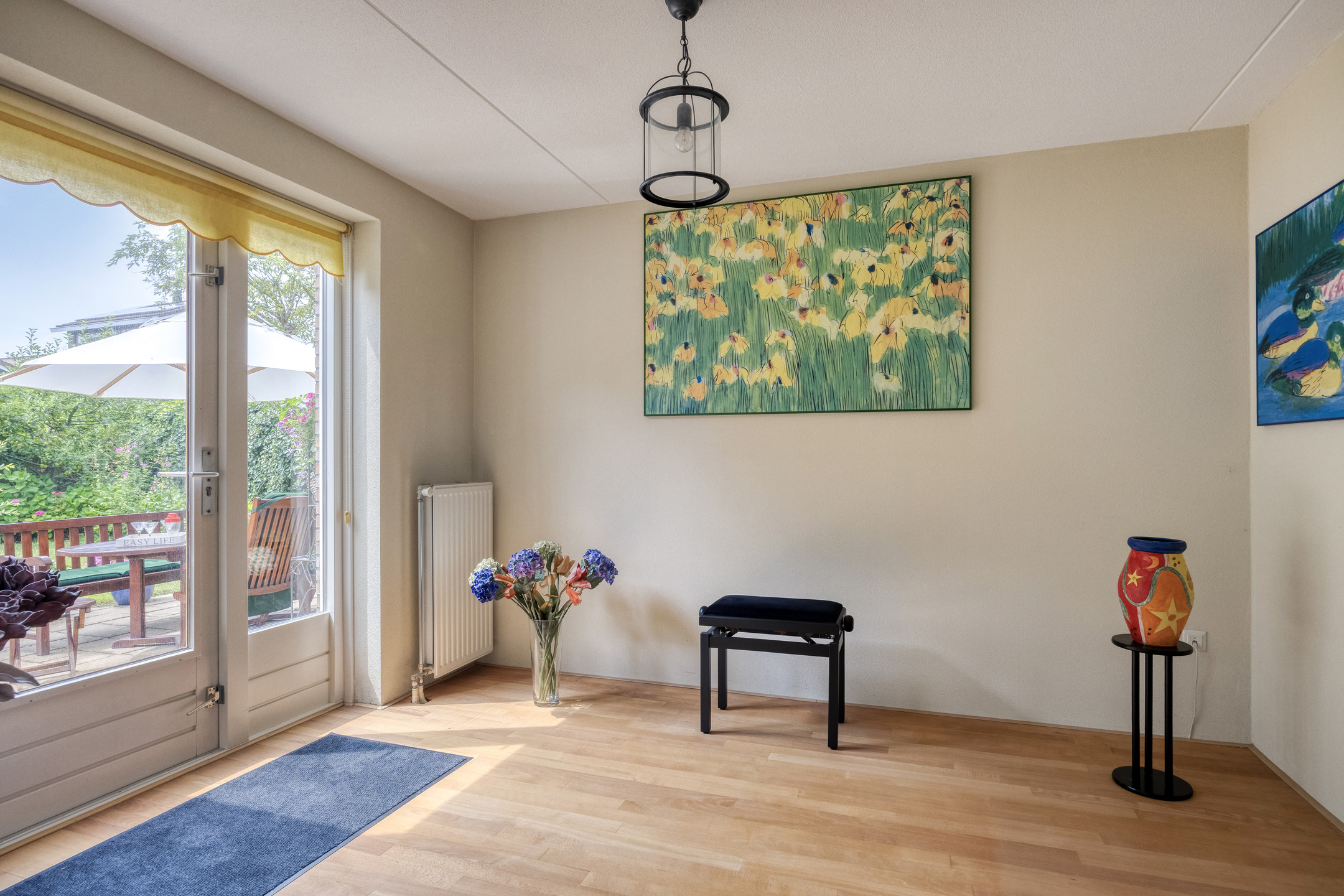 De tuingerichte woonkamer is licht en ruim en biedt toegang tot een extra kamer op de begane grond.