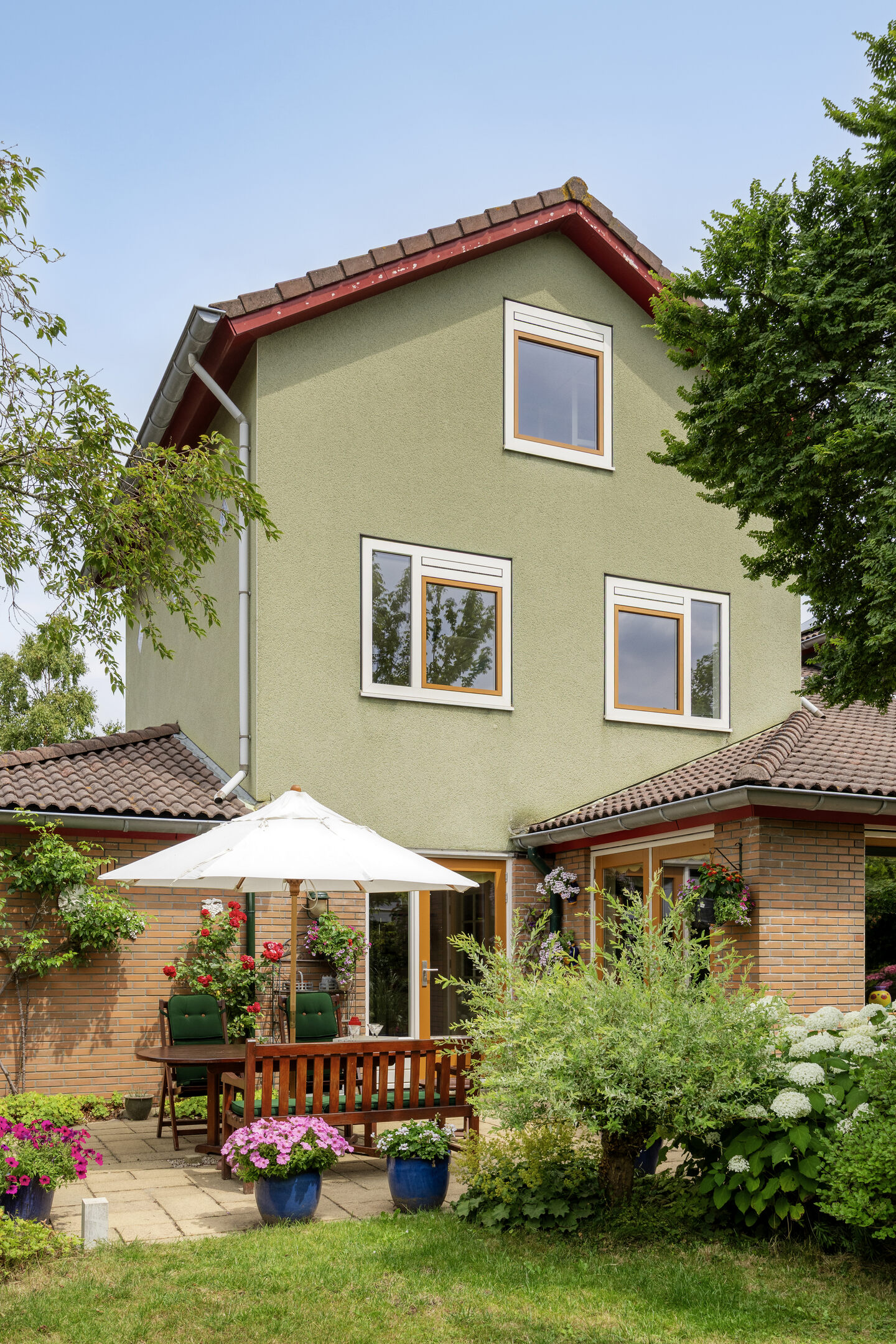- 1e en 2e verdieping zijn aan de achterzijde voorzien van kunststof kozijnen;
