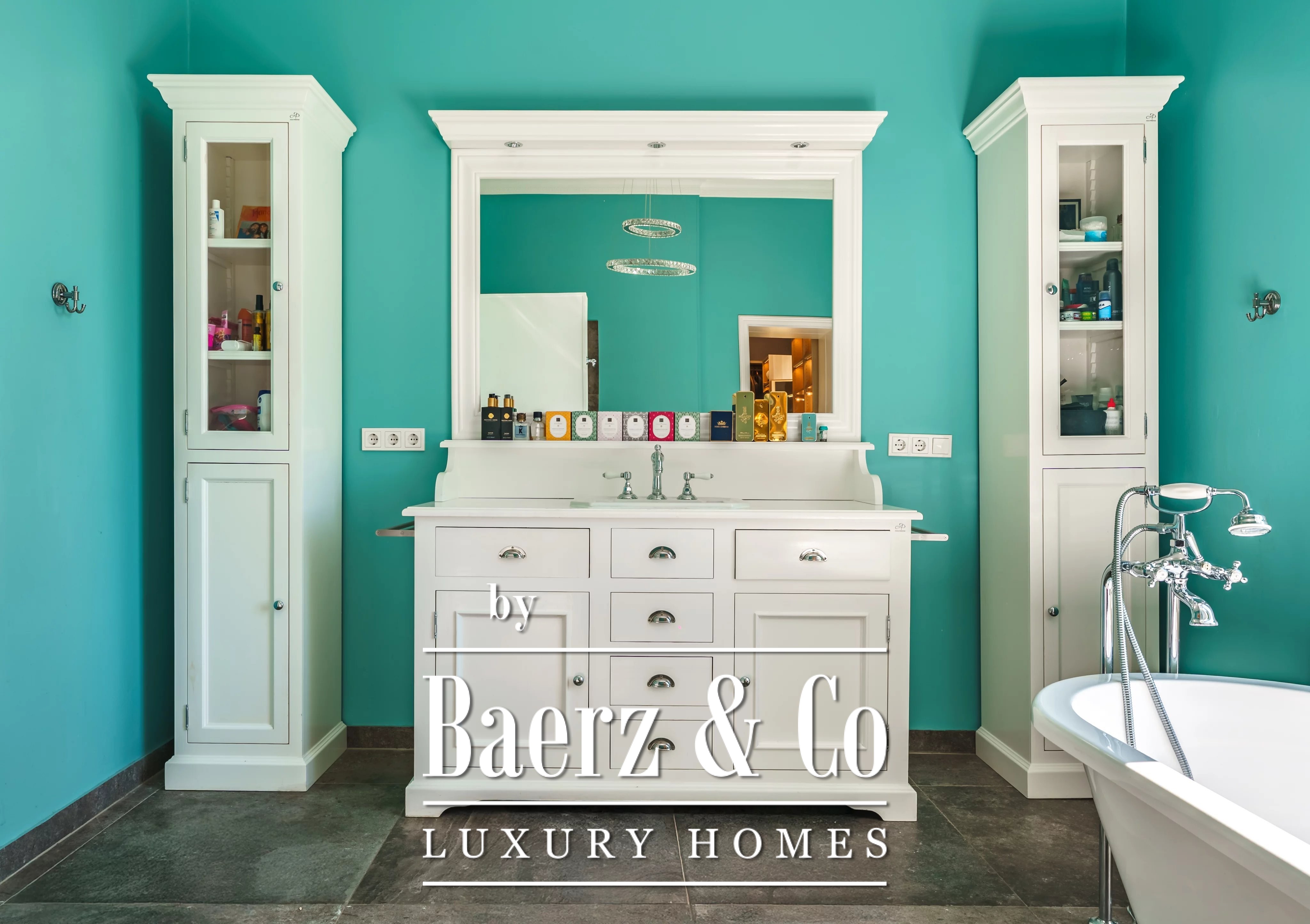 Op de eerste verdieping vind je een master suite met kleedkamer en aangrenzende badkamer. Een tweede slaapkamer met aangrenzende badkamer completeert de eerste verdieping.