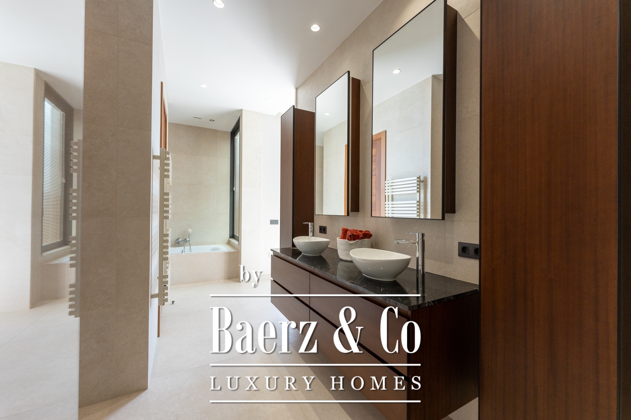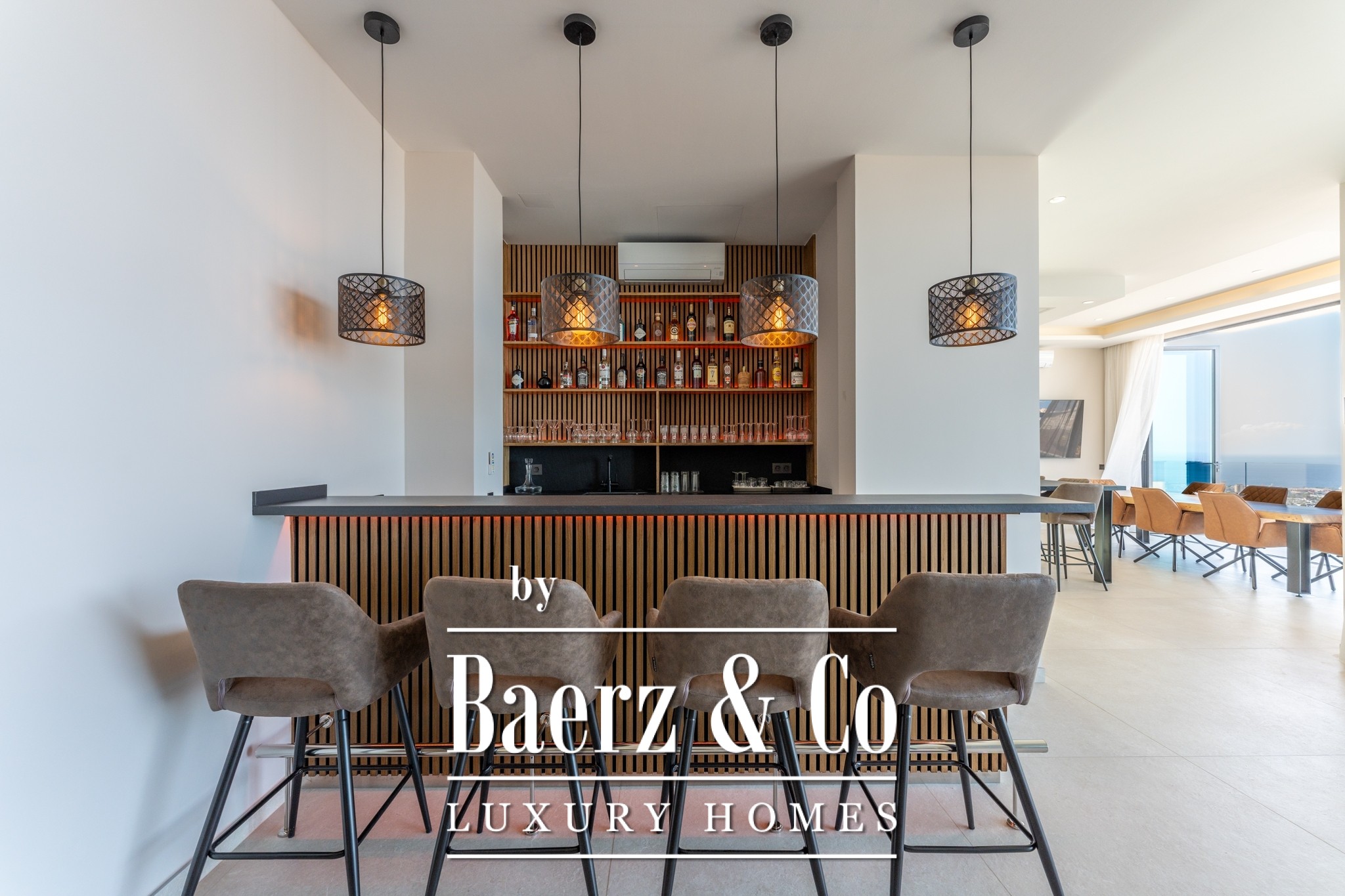 Gebouwd met de beste kwaliteit en mooie doordachte ruimtes is deze elegante villa een unieke oasis van luxe en privacy. Het beslaat een perceel van 605 m² met een bebouwde oppervlakte van 631 m² verdeeld over drie verdiepingen, die met elkaar verbonden zijn door een lift. De hoogte van het plafond van 3,20 meter en grote glazen wanden zorgen voor veel lichtinval en bieden een weids uitzicht op zee en de kustlijn.