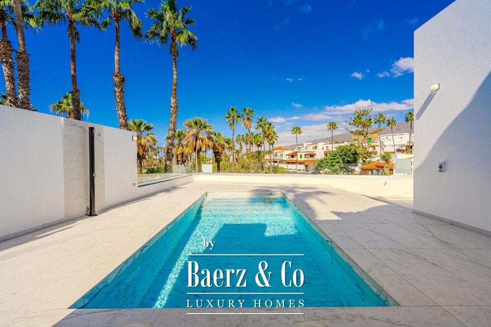 Op een ideale locatie in het zuiden van Tenerife bieden wij u deze prachtige gloednieuwe villa aan, op minder dan 1 km van de zee, de boulevard, stranden en restaurants.