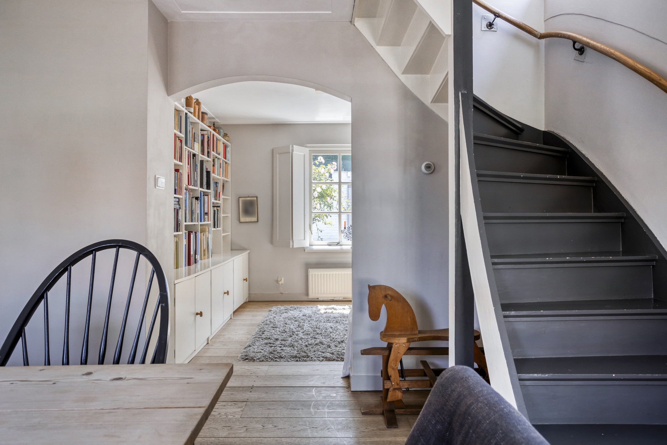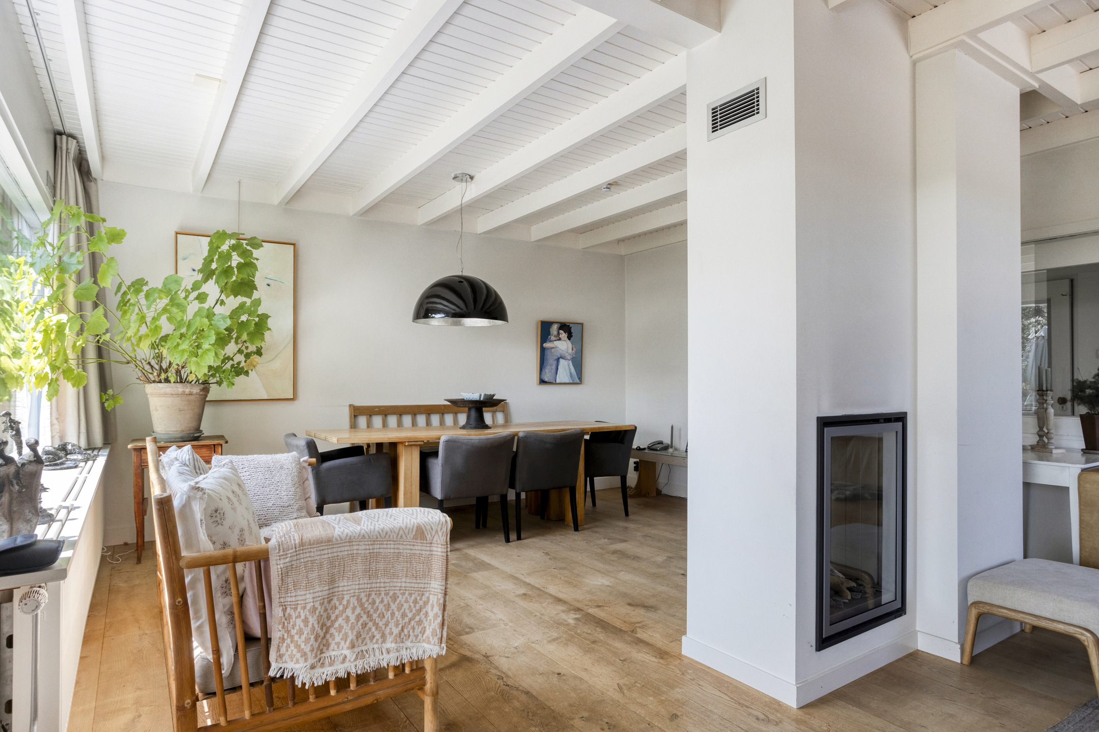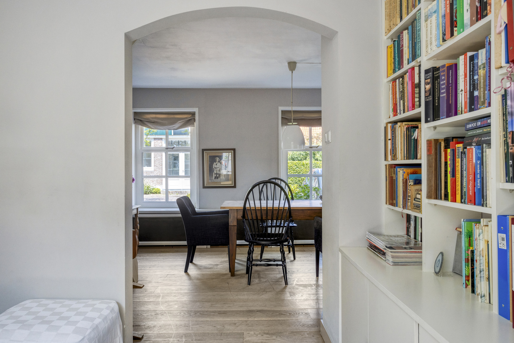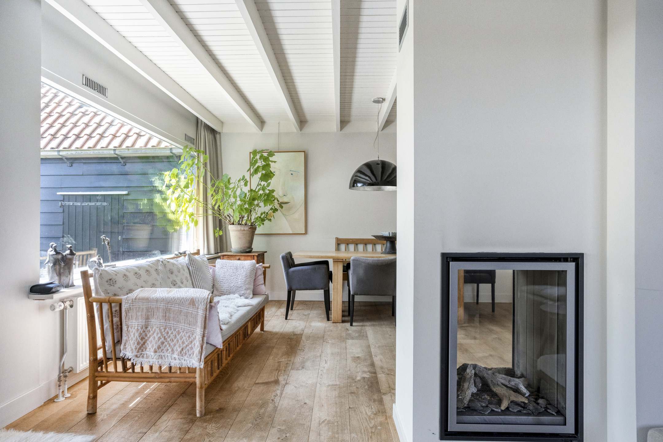 In het achterhuis bevindt zich een indrukwekkende tuingerichte woonkamer, met een sfeervolle gashaard en een grote schuifpui naar de tuin met overkapping. De schuifpui is voorzien van een rolluik, wat extra comfort en privacy biedt. De woonkamer voelt ruim en open aan, met prachtig zicht op de achtertuin. Aansluitend is er een bijkeuken, ideaal voor wasmachine, berging of extra opslag. Tevens is de tussenhal bij de trap perfect te gebruiken als kantoor of werkruimte.