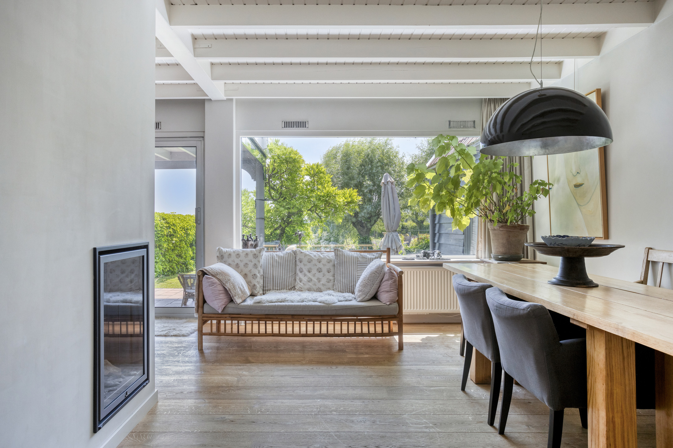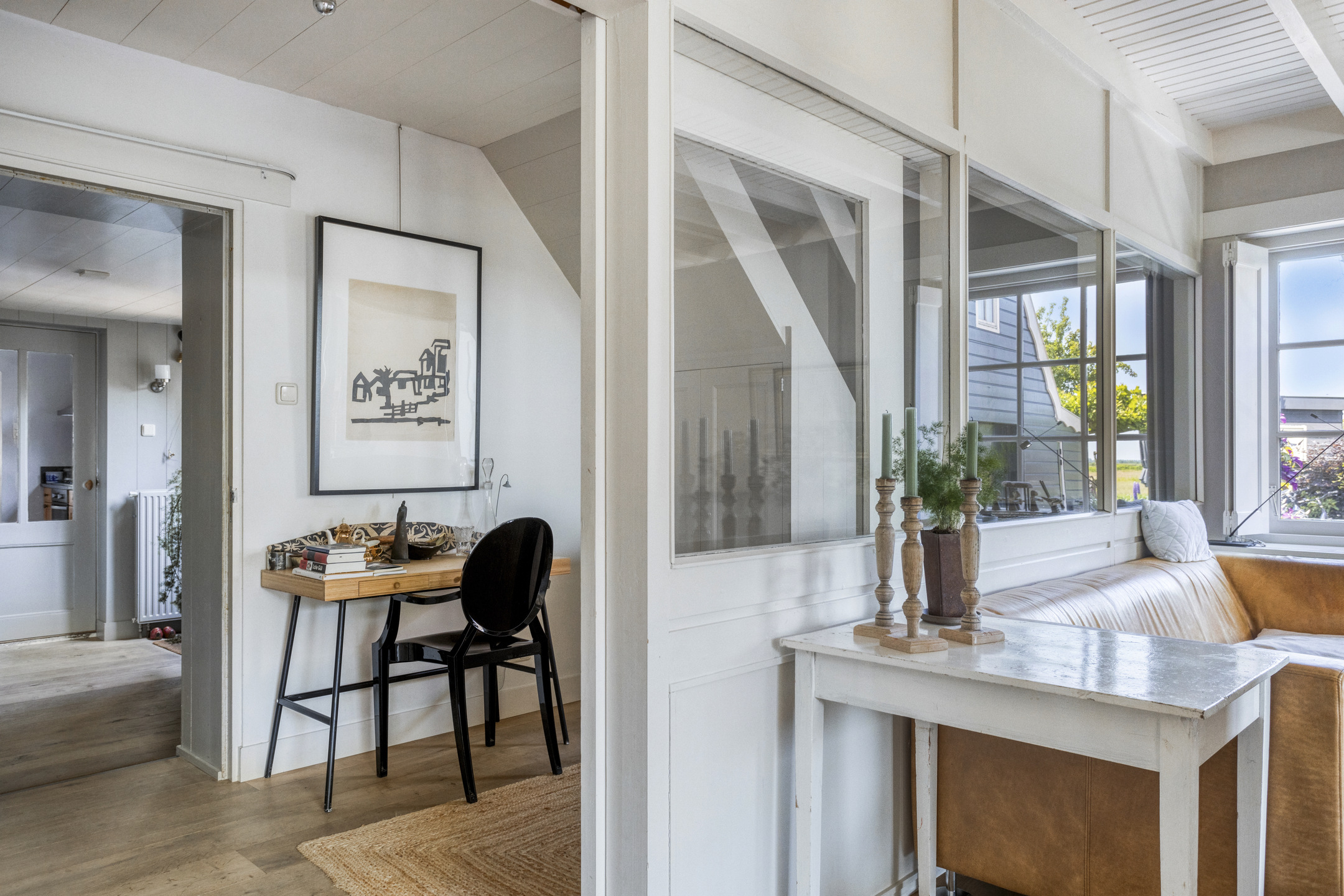 Gelegen in het idyllische dorp Driehuizen, midden in het natuurgebied De Eilandspolder, staat deze sfeervolle vrijstaande woning die bestaat uit een charmant voorhuis uit 1957 en een royaal achterhuis uit 1977, dat in 2004 compleet onder handen is genomen. De gevelbeplating van de woning is van hoogwaardig Red Cedar en Meranti hout en binnen treft u een luxe eikenhouten vloer, karakteristieke handgemaakte deuren en volop lichtinval dankzij de grote raampartijen, die grotendeels voorzien zijn van klassieke luiken.
