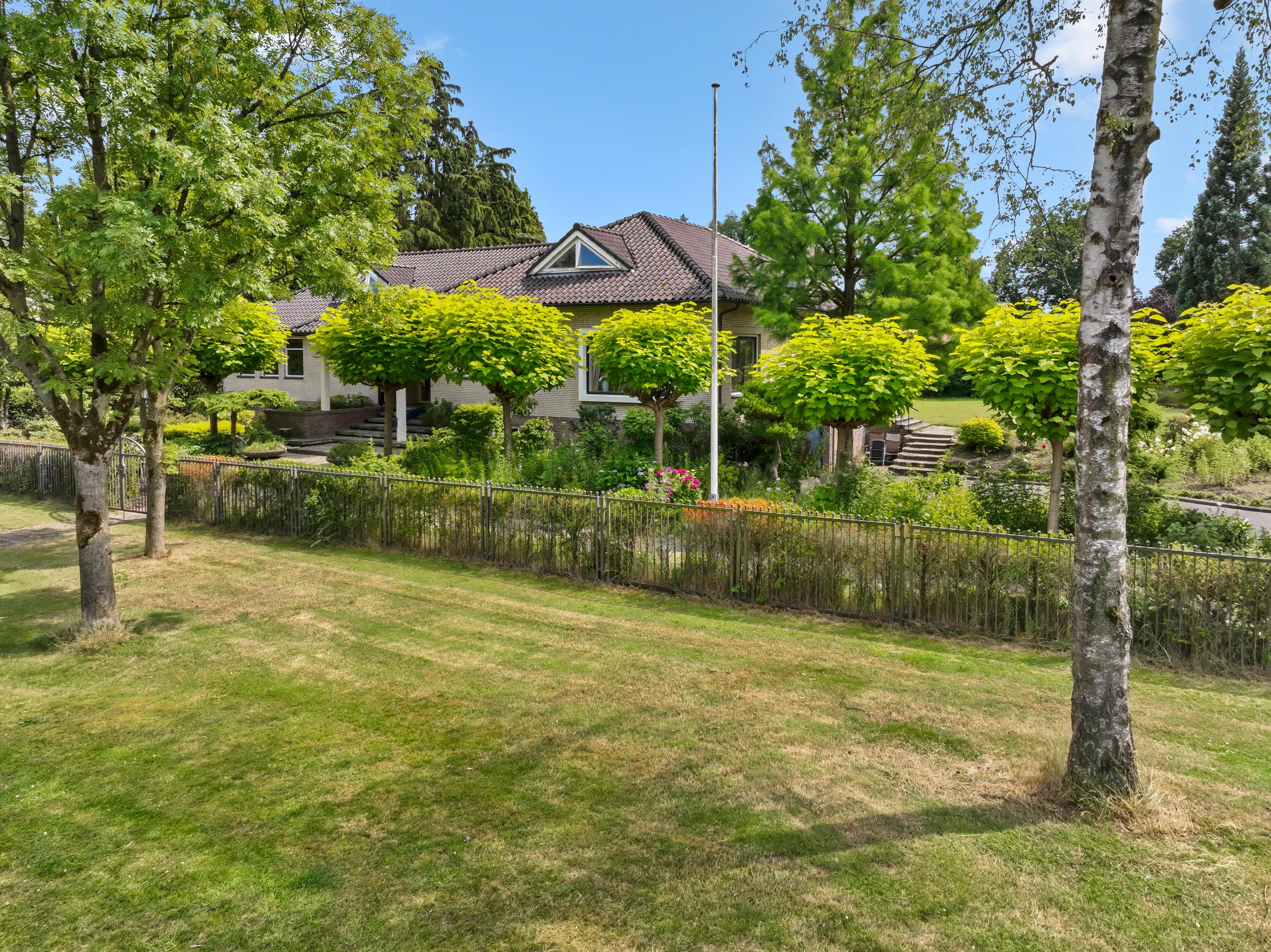 De villa ligt op een royaal perceel, aan de rand van de villawijk en buitengebied met veel privacy en geflankeerd door andere ruime kavels. Een stijlvol hek met elektrische sierpoort vormt de chique entree. De botanische tuin – ontworpen door Harry Menkenhorst – biedt elk seizoen een uniek decor met exotische planten, een vijverpartij en bronzen fontein. Er is ruimte voor een zwembad zonder concessies aan zicht of rust. Het overdekte terras maakt het buitenleven compleet.